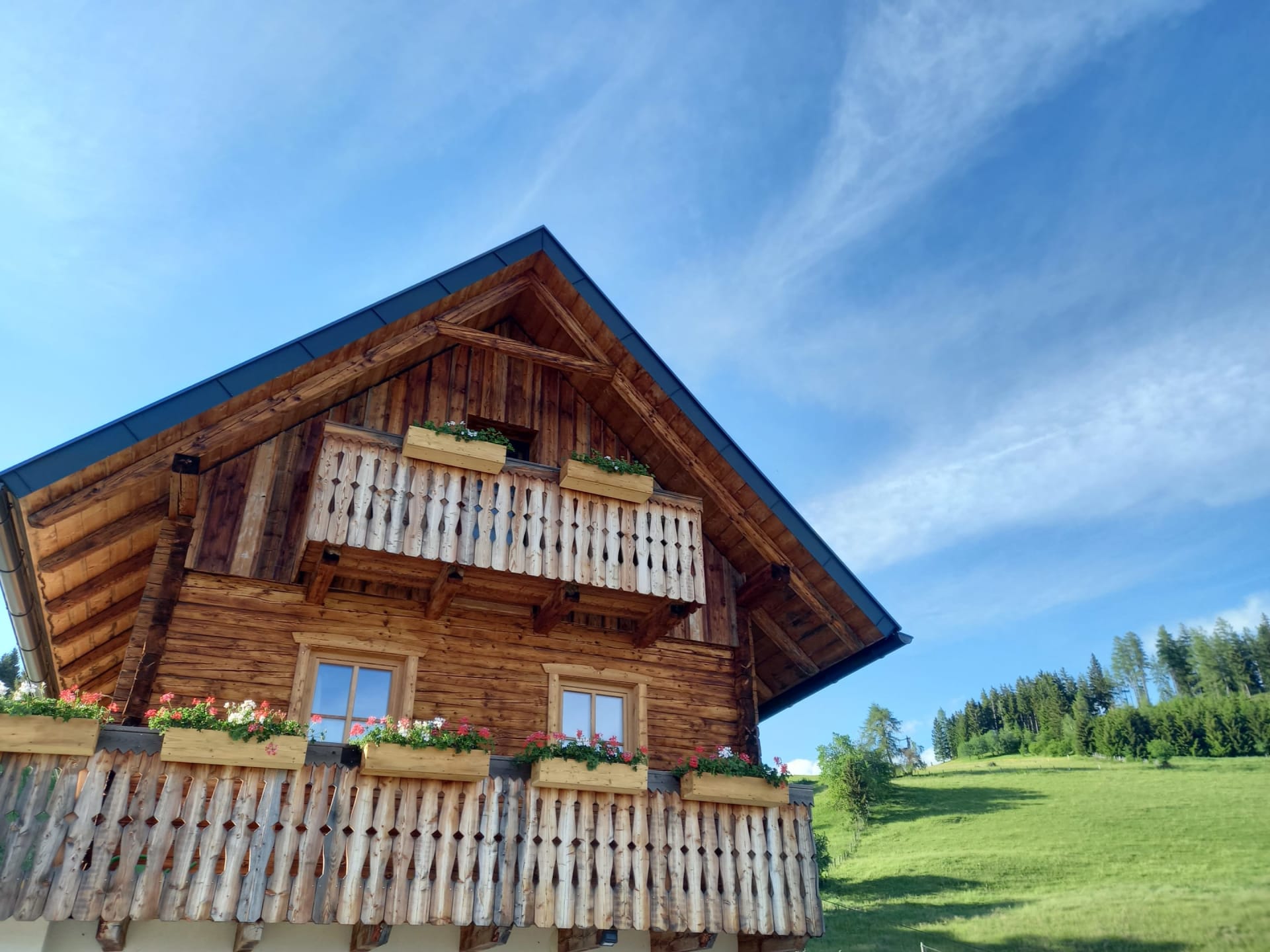 Durch die bewusste Auswahl von heimischen Materialien wie Altholz, Lehm, Hanf und Naturstein haben wir die Natur nach innen geholt. Die großzügige Ausstattung unserer Almhütte bietet auf zwei Etagen viel Platz zum Wohlfühlen.