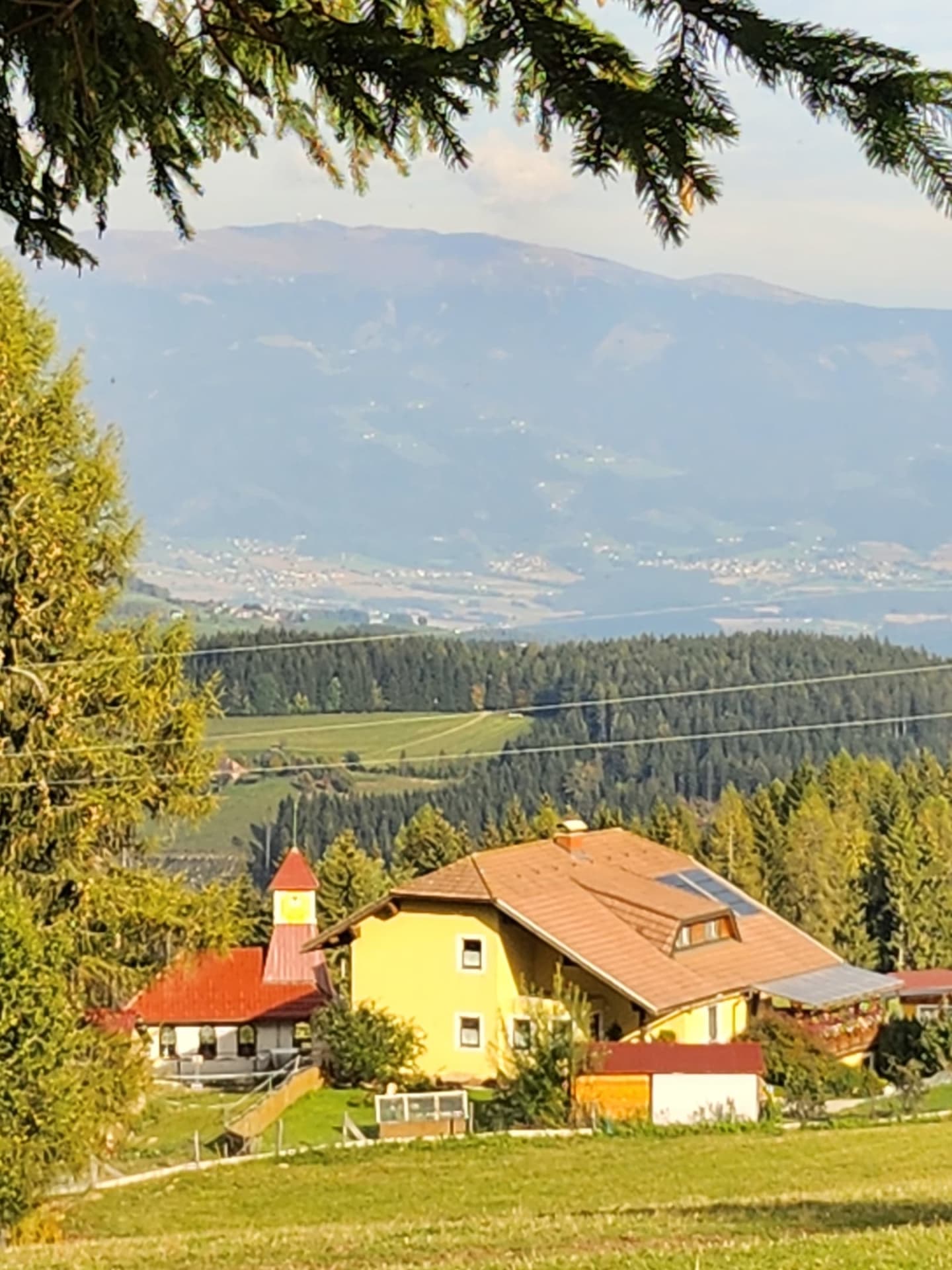 Die urige Almhütte liegt ca. 150m oberhalb des BIO- Hofes am Waldesrand. Die sensationelle nebelfreie Aussicht auf die Koralpe und ins Lavanttal erfreut die Gäste ganz besonders.