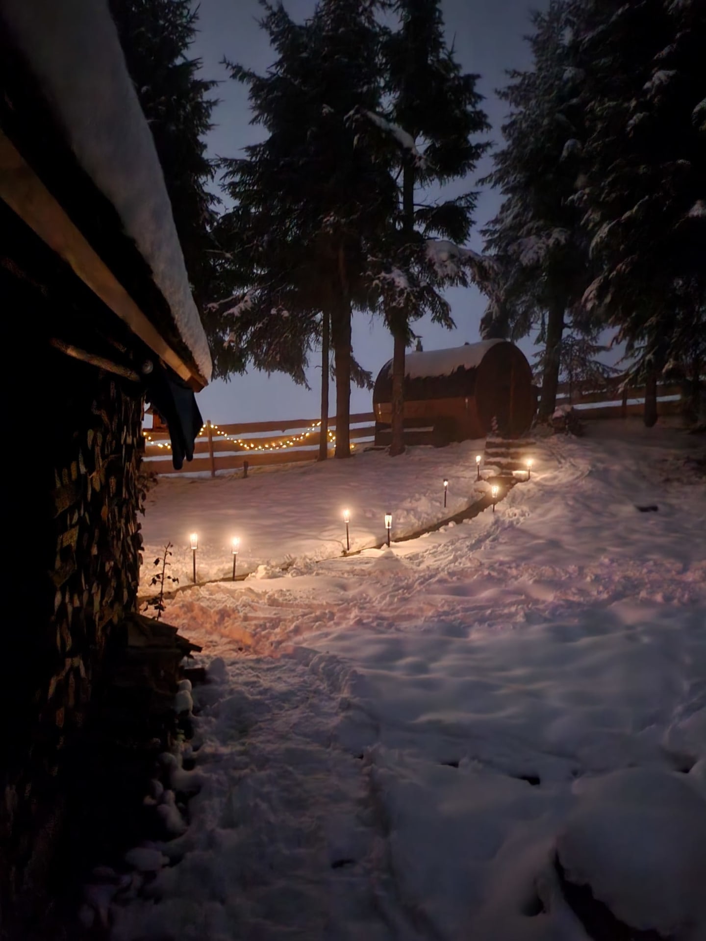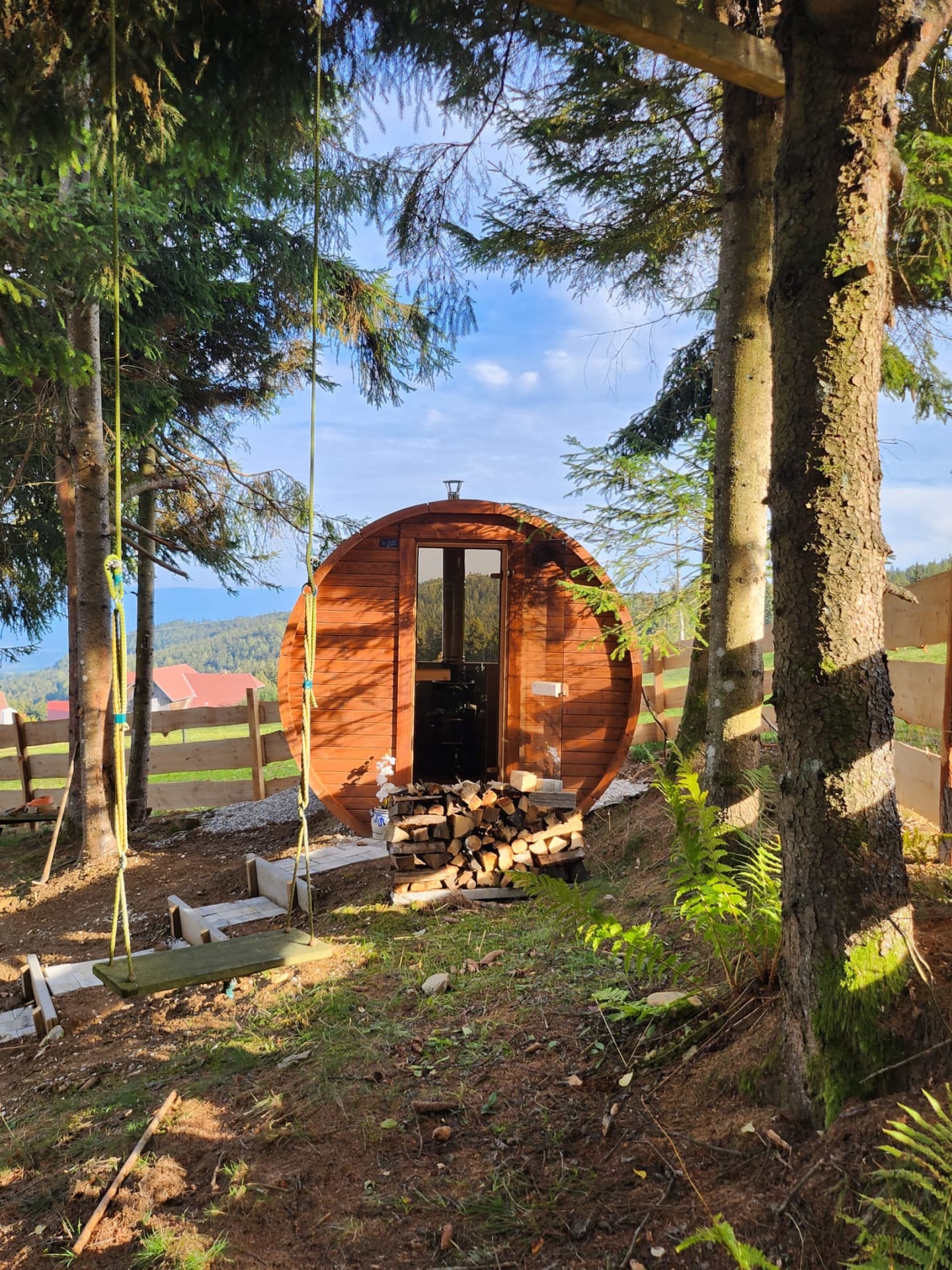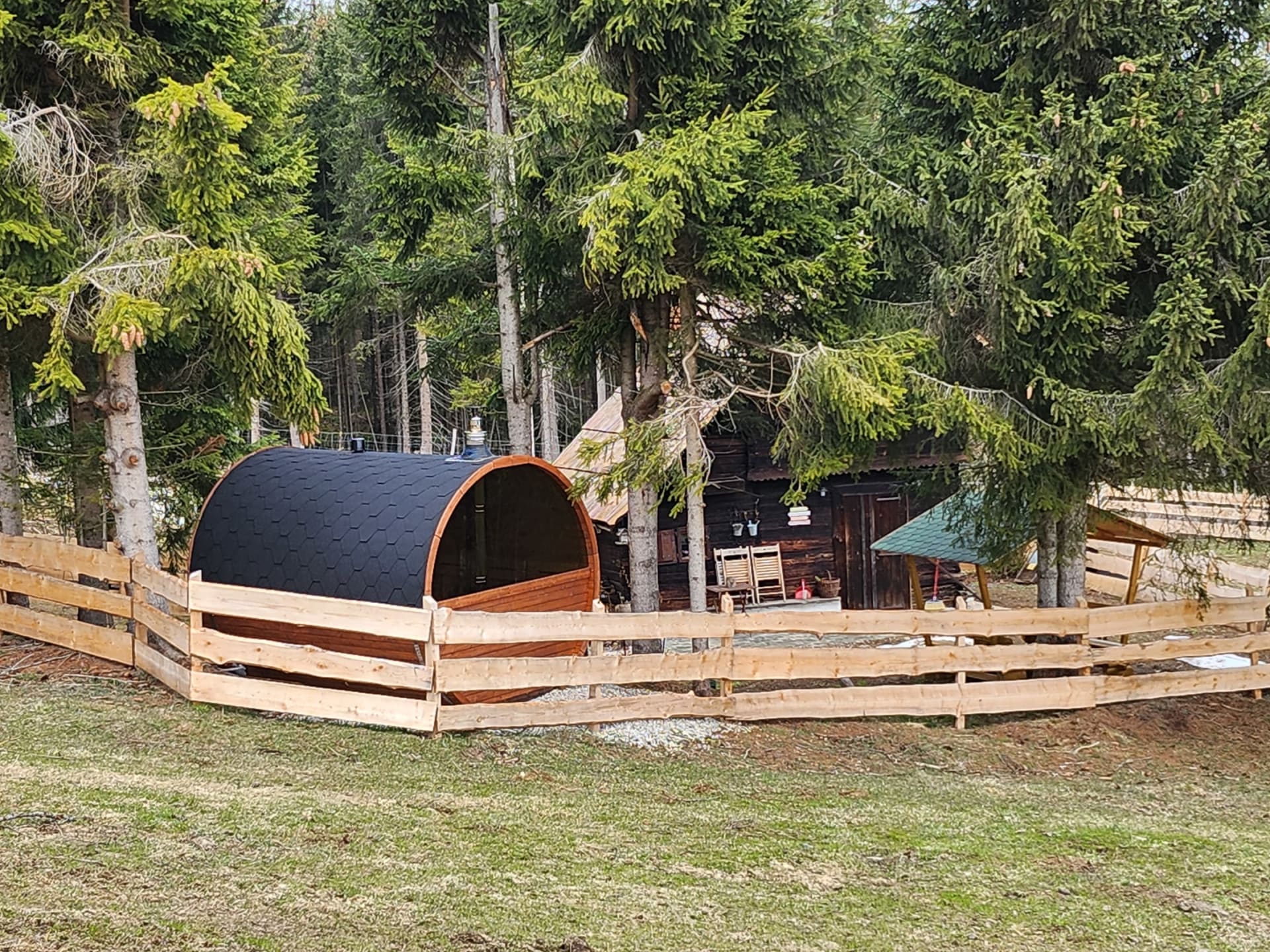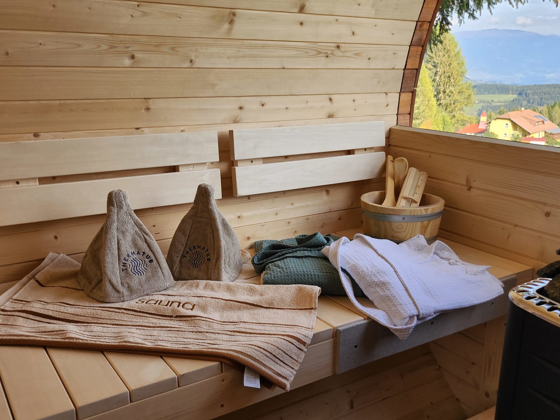 Nach dem anstrengenden Sportprogramm sorgt die urige Fasssauna mit Holzbefeuerung für die Erholung der Muskeln. Oder verbringen Sie mit einem Tee oder Kakao gemütliche Stunden vor dem Kamin in der Hütte.