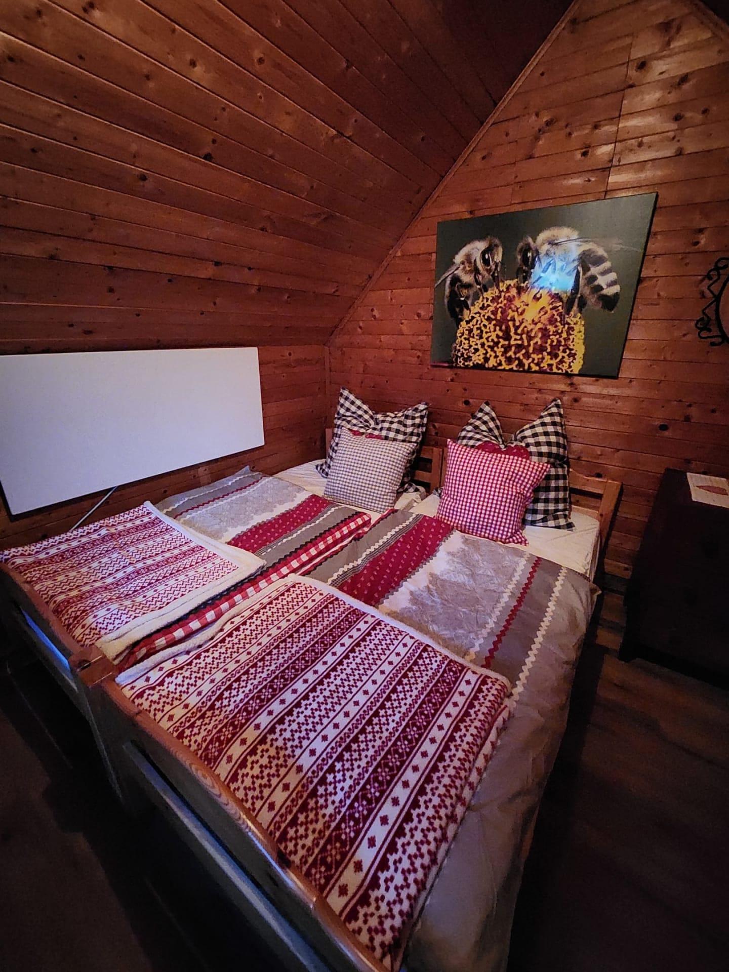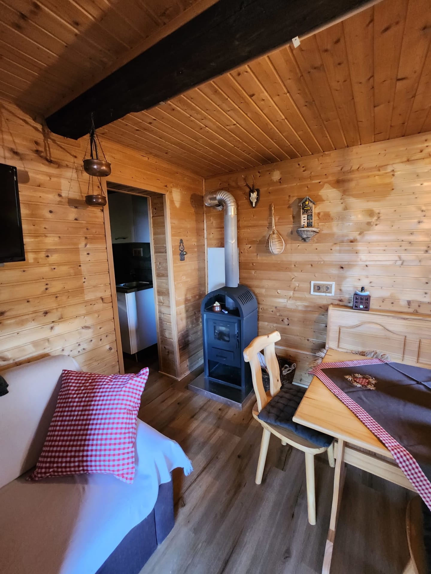 Die urige Almhütte liegt ca. 150m oberhalb des BIO- Hofes am Waldesrand. Die sensationelle nebelfreie Aussicht auf die Koralpe und ins Lavanttal erfreut die Gäste ganz besonders. Entspannen Sie nach einer langen Wanderung oder Mountainbike Tour in der Außensauna (20€ Aufpreis pro Aufenthalt) mit exklusiver Aussicht. Am Abend gönnen sie sich ein paar ruhige Stunden mit einem Gläschen Honigwein vor dem Kamin.
