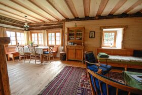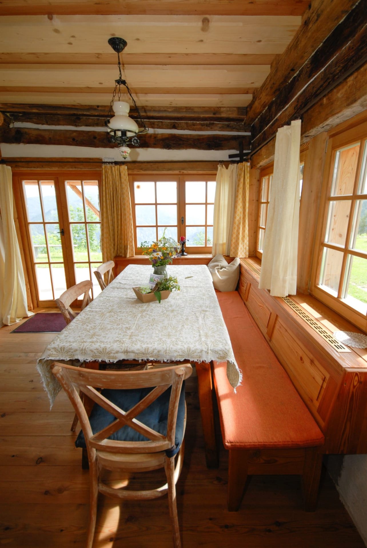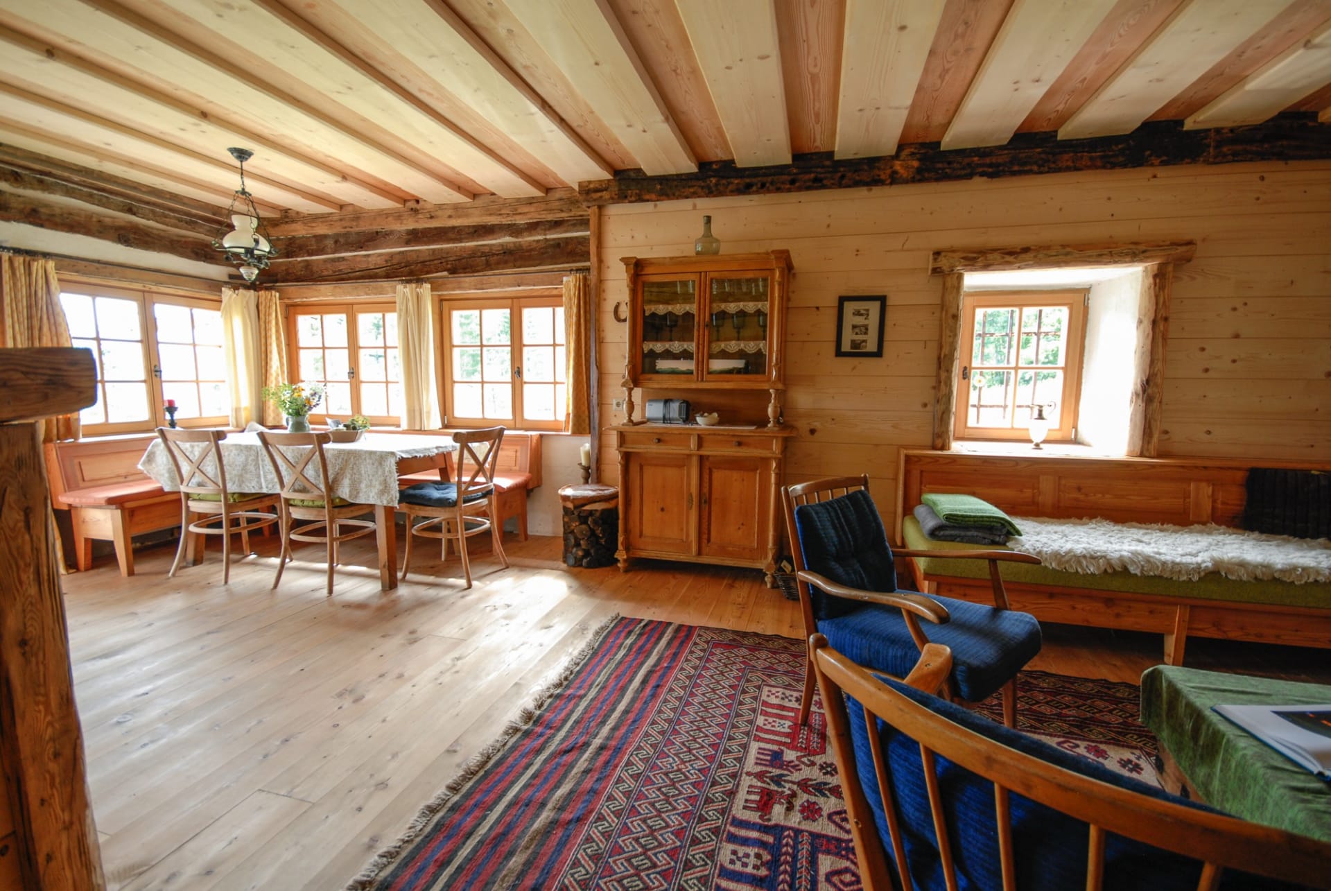 Neu renoviertes ehemaliges Bergbauernhaus. Liebevoll und stilvoll eingerichtet. Große Wohnküche mit Gasherd, Abwasch, Geschirrspüler, Bar. Große Sitzecke, Couch, offener Kamin. Im Erdgeschoß des Haupthauses 2 Doppelzimmer, einmal mit Zusatzbett. Bad mit Badewanne. WC extra. Im Obergeschoß 2 Doppelzimmer und Zusatzbetten, ein großer Wohnraum mit Doppelbett und kleiner Küche, Badezimmer mit Badewanne. Im Nebengebäude ein schönes Schlafzimmer für 4 Personen und eigenem Badezimmer, Küche mit Holzherd und große Liegecouch. Solarstrom. Zentralheizung. Überdachter Sitzplatz mit Grillmöglichkeit. Privater Wellnessbereich mit Whirlpool und Holzofensauna.