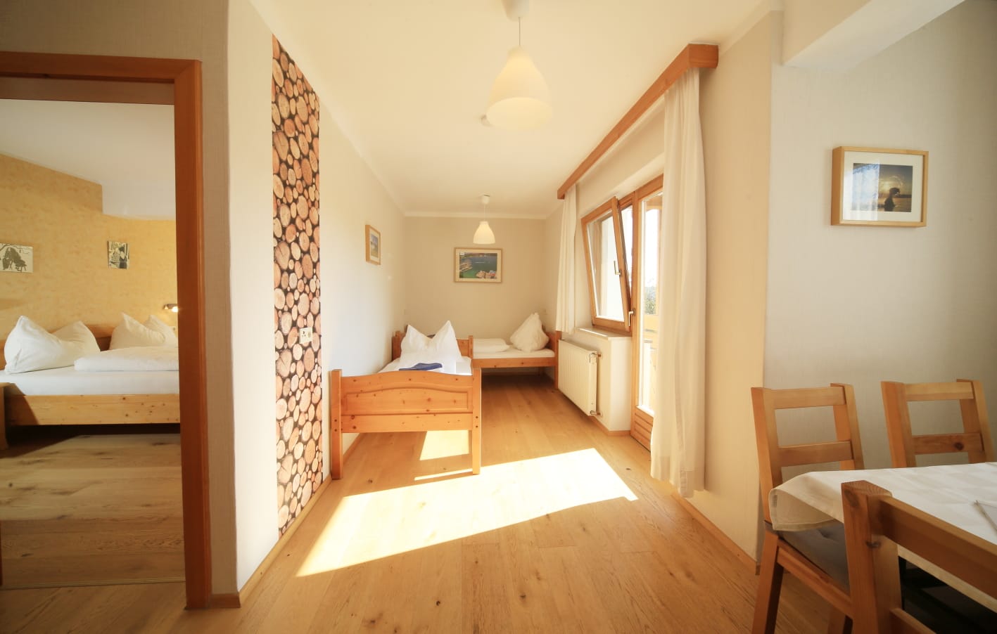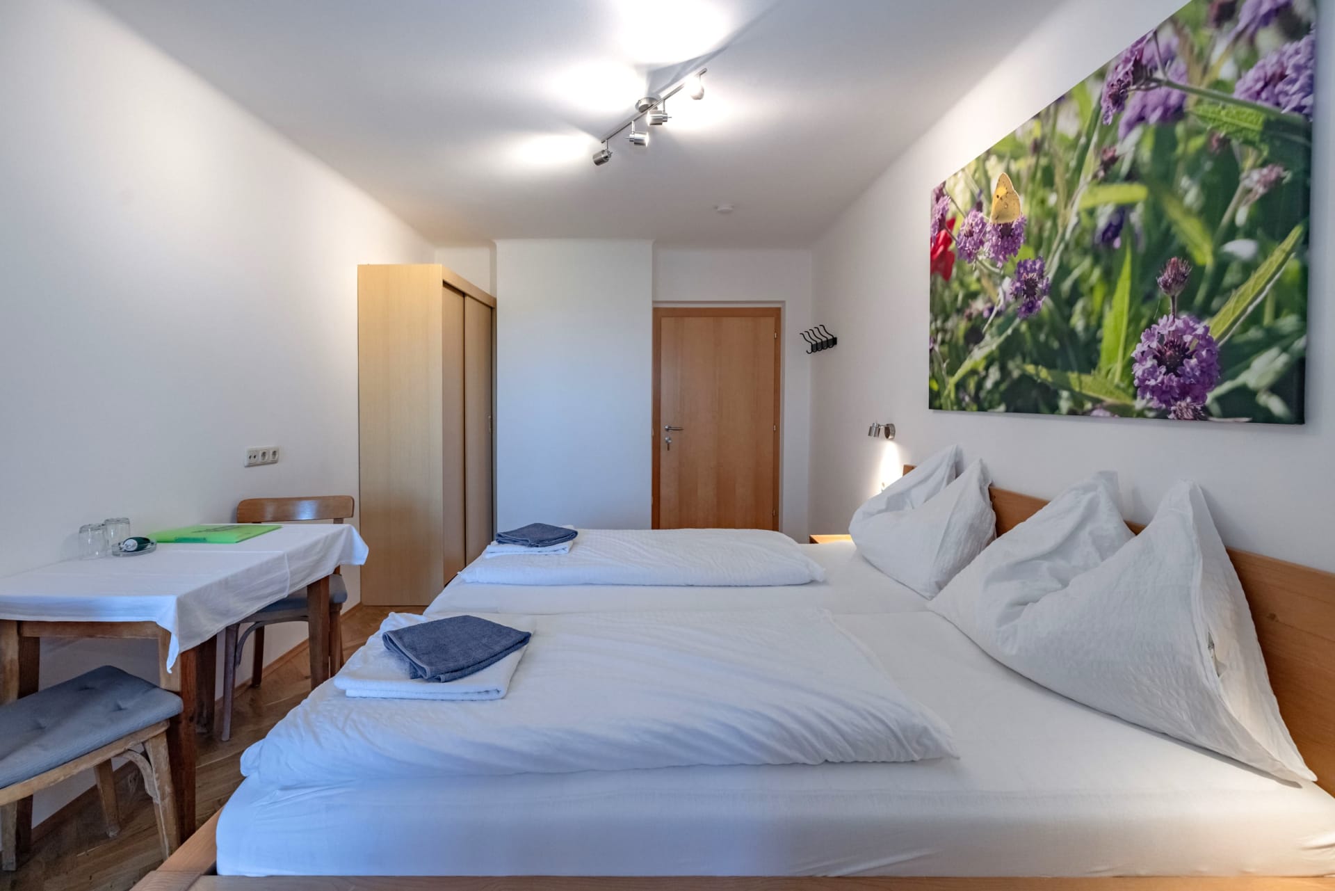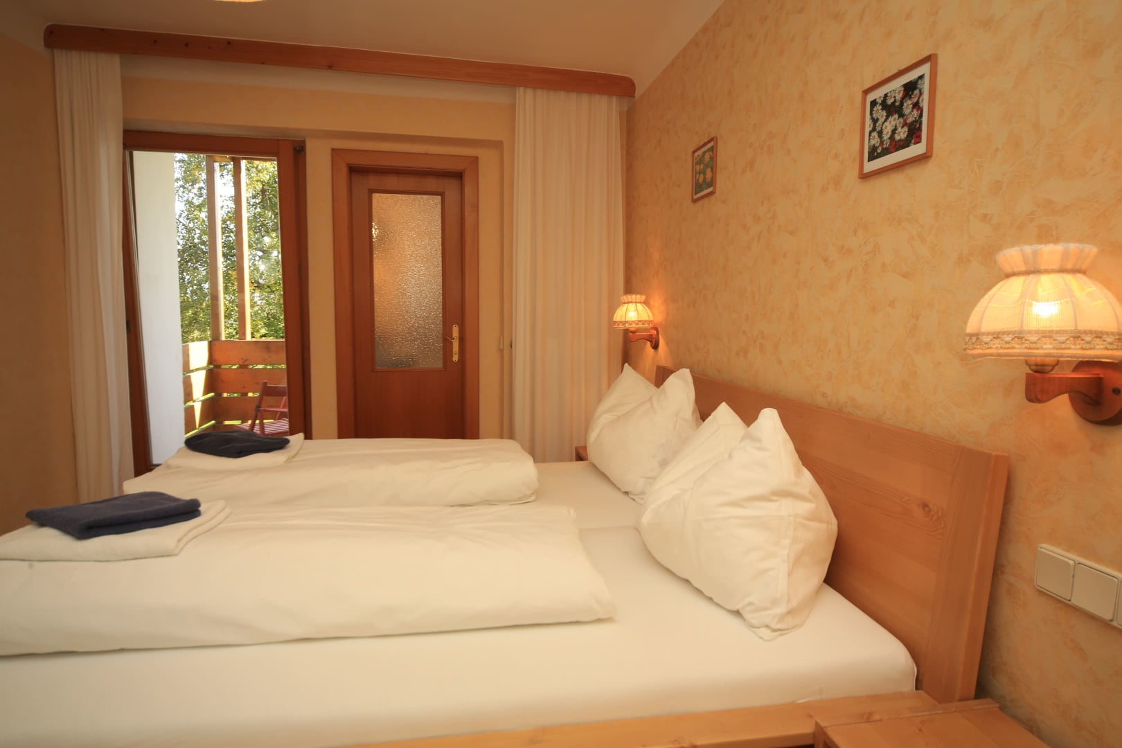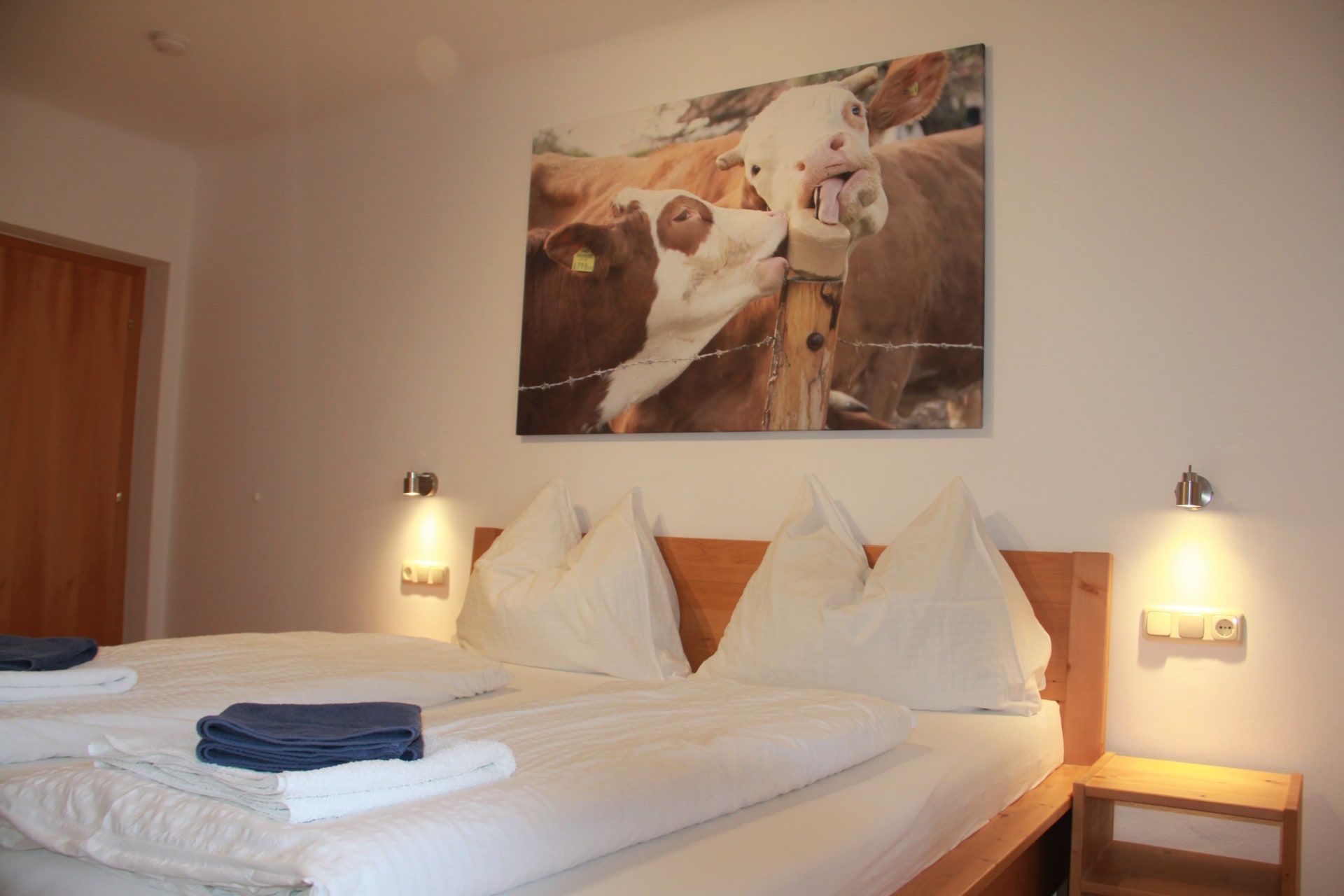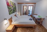Gemütlich eingerichtete Doppelzimmer mit DU/WC und Balkon, großteils ausgerichtet Richtung Osten mit Blick auf unseren Obstgarten und unsere Wiesen. Genießen Sie den Sonnenaufgang und beobachten Sie vom Balkon aus die Kühe auf der Weide.