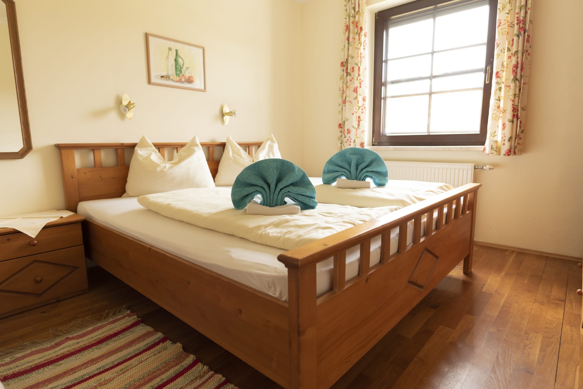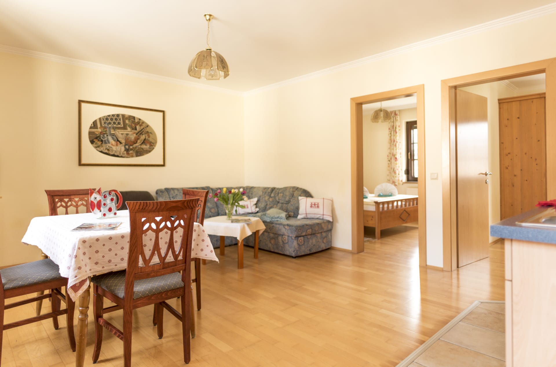 Diese Ferienwohnung hat 2 Schlafzimmer, Wohnküche mit Sat-TV, Dusche und WC. Die Küche ist mit allen gängigen Elektrogeräten ausgestattet. Wir bieten täglich frisches Semmelservice.
