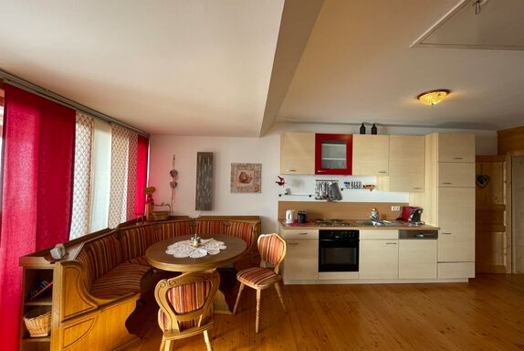 Das neu renovierte Apartment Julia verwöhnt Sie mit einer voll ausgestatteten Wohnküche mit E-Herd, Geschirrspüler, Kühlschrank und einer Kaffeemaschine. Im Apartment befindet sich eine gemütliche Essecke mit Blick auf den Kaminofen, ein großer Wohnbereich mit Couch (ausziehbarer Schlafplatz für zwei Personen), ein Sat-TV, ein Schlafzimmer mit Doppelbett aus Zirbenholz, ein Badezimmer mit Dusche und ein separates WC. Der wohnungseigene Balkon verwöhnt Sie mit Sitzgelegenheiten und mit einer traumhaften Aussicht über die Bergwelt und die Täler.