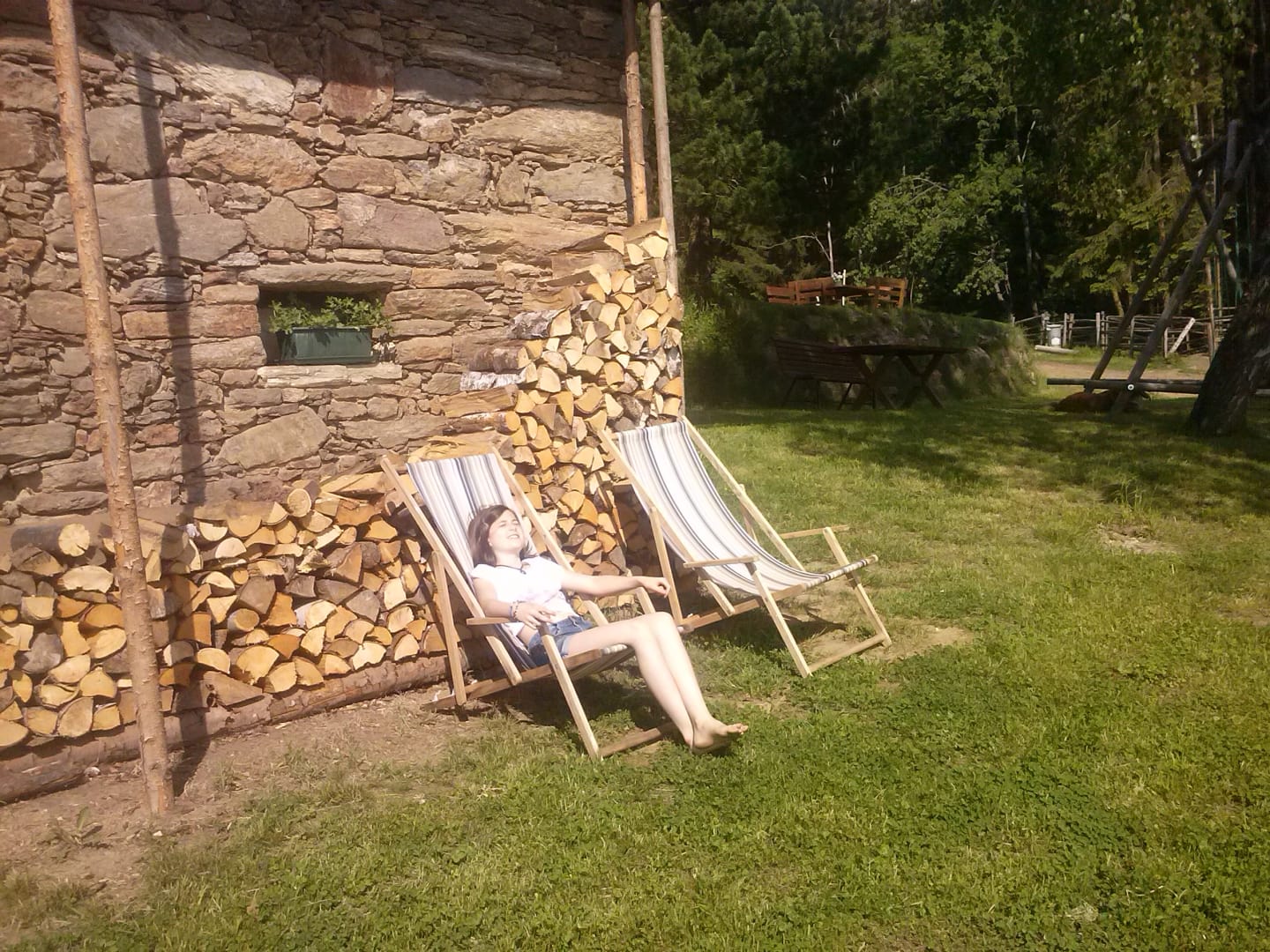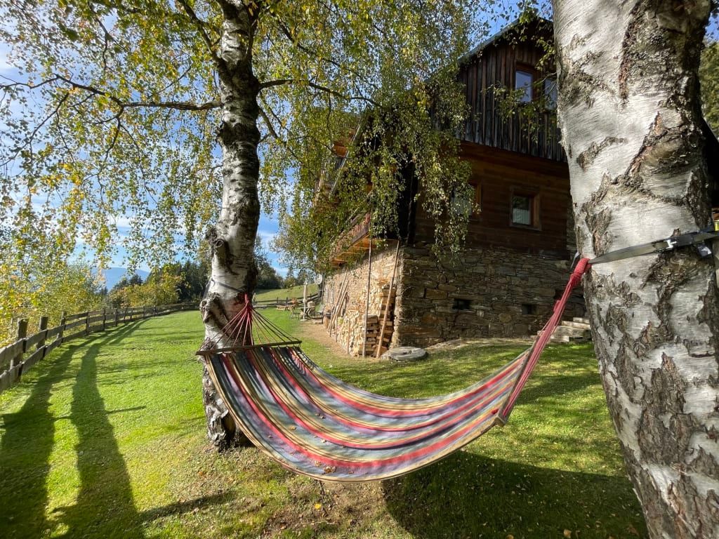 Um das Bergpanorama bereits beim Frühstück hautnah erleben zu können, gibt es einen wohnungseigenen Balkon mit Sitzgelegenheiten. Vor dem Haus befinden sich Sitzgelegenheiten, Griller, Liegestühle, Hängematten und für die Kinder ein Spielplatz.