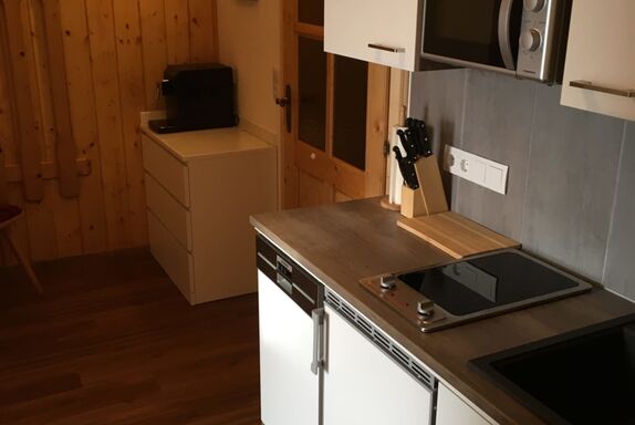 Appartement 2  mit 1 Doppelzimmer + 1 Zustellbett (Zimmer hat  1 Boxspringbett 180x200/ DU/WC/WLAN /Digial-Sat-TV/Balkon) und einer Küche (E-2 Plattenherd, Mikrowelle, Kühlschrank m. Gefrierfach, Geschirrspüler, Kaffeevollautomat für ganze Bohnen) mit einer gemütlichen Sitzecke (Selbstversorger)