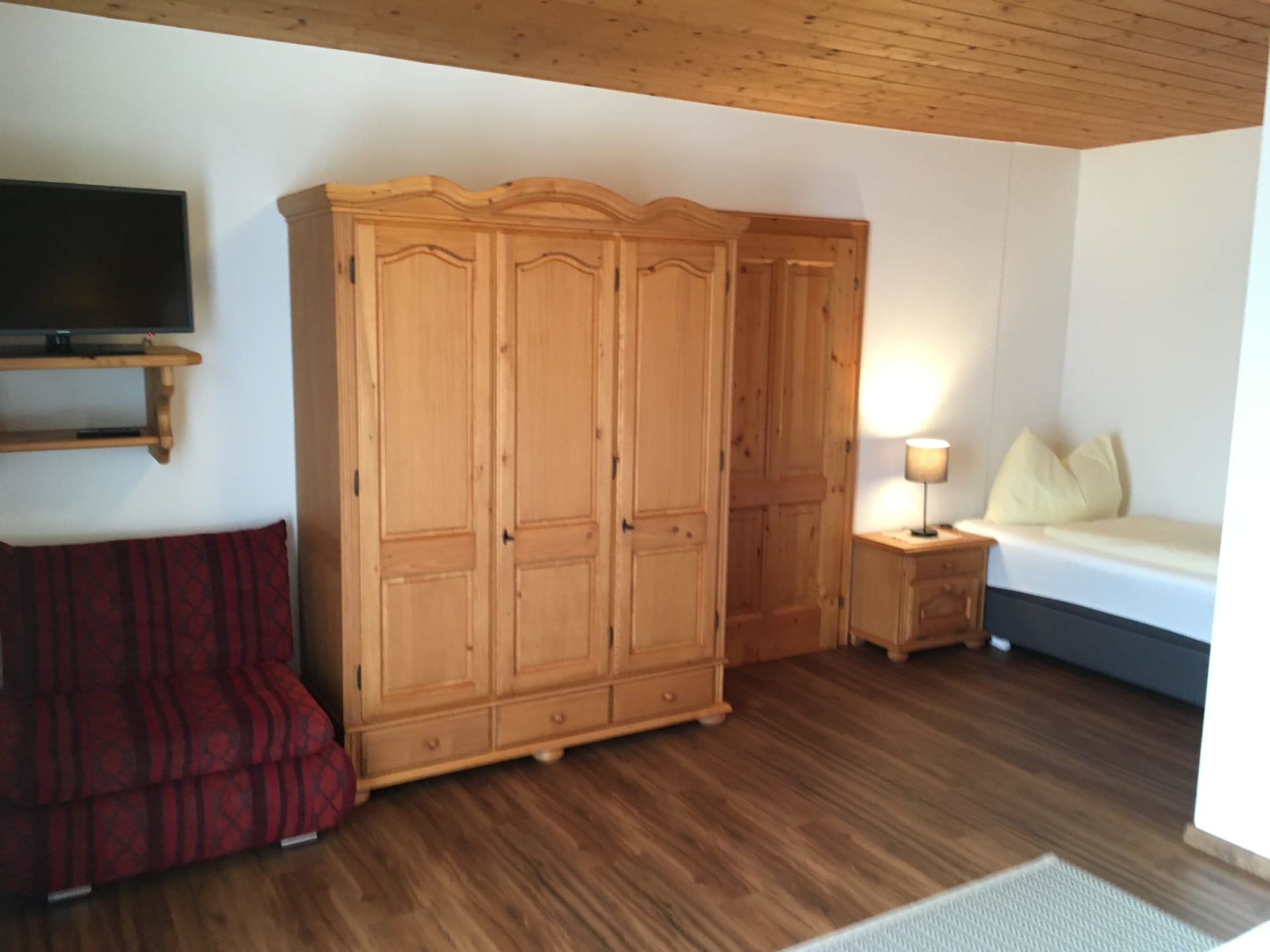 Appartement 2 mit 1 Doppelzimmer mit 1 Zustellbett (das Zimmer verfügt über 1 Boxspringbett 180x200, DU/WC, WLAN, Digital-Sat-TV, Balkon) und einer großen Küche (2 Plattenherd, Mikrowelle, Kühlschrank mit Gefrierfach, Geschirrspüler, Kaffeevollautomat für ganze Bohnen) mit einer gemütlichen Sitzecke (Selbstversorger)