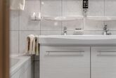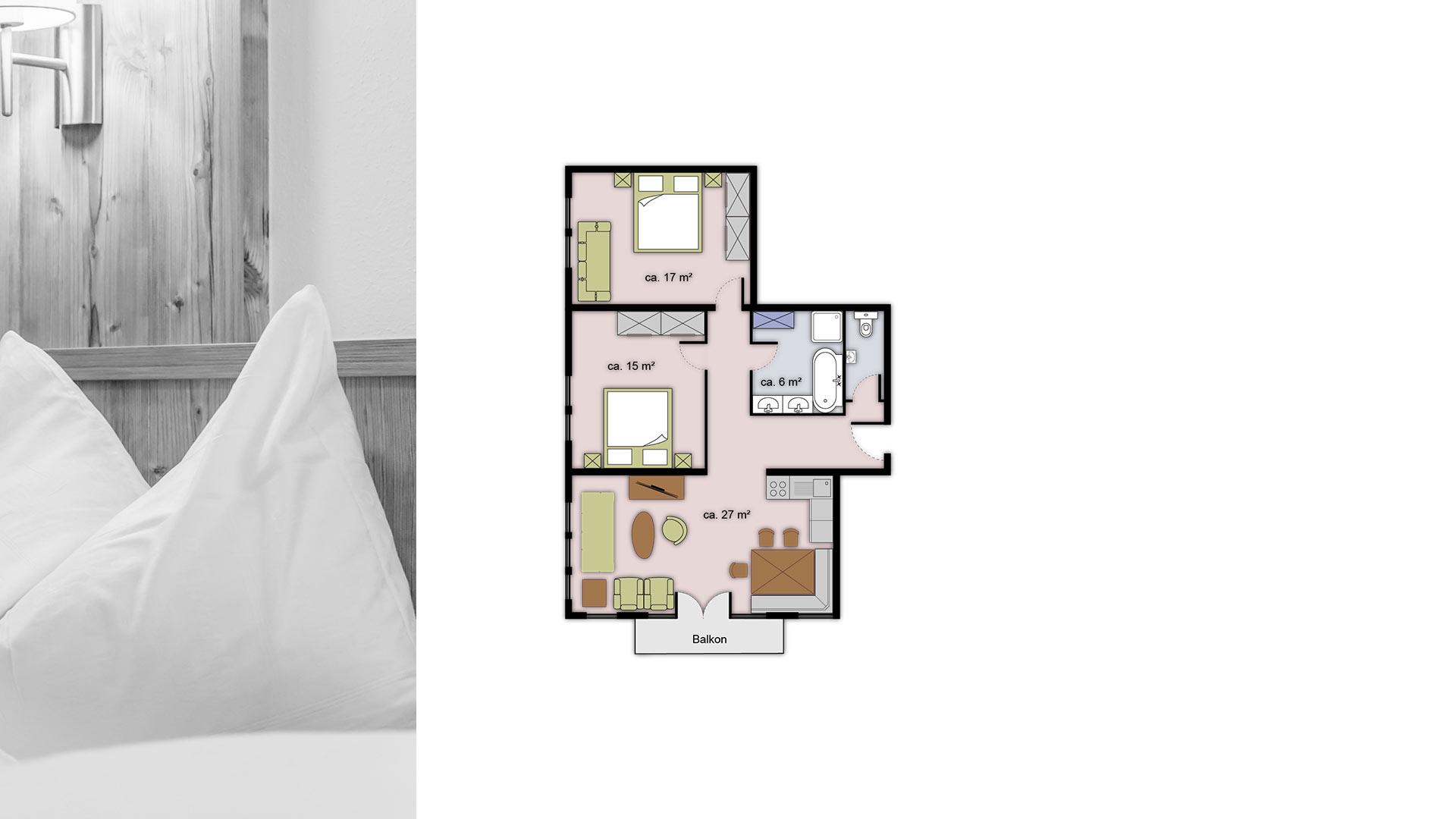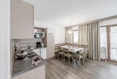 3-Zimmer-Wohnung, Parterre, ca. 65 m². Vorraum. Wohn-/Schlafraum mit Sitzecke/ Doppelbettcouch, Essecke, große Küchen-zeile (4 Ceranfelder, Backofen, Mikrowelle, Geschirrspüler, Wasserkocher, Kaffeemaschine). Doppelzimmer. Zweites Schlafzimmer mit Doppelbett und 2 Couchbetten. WIFI.