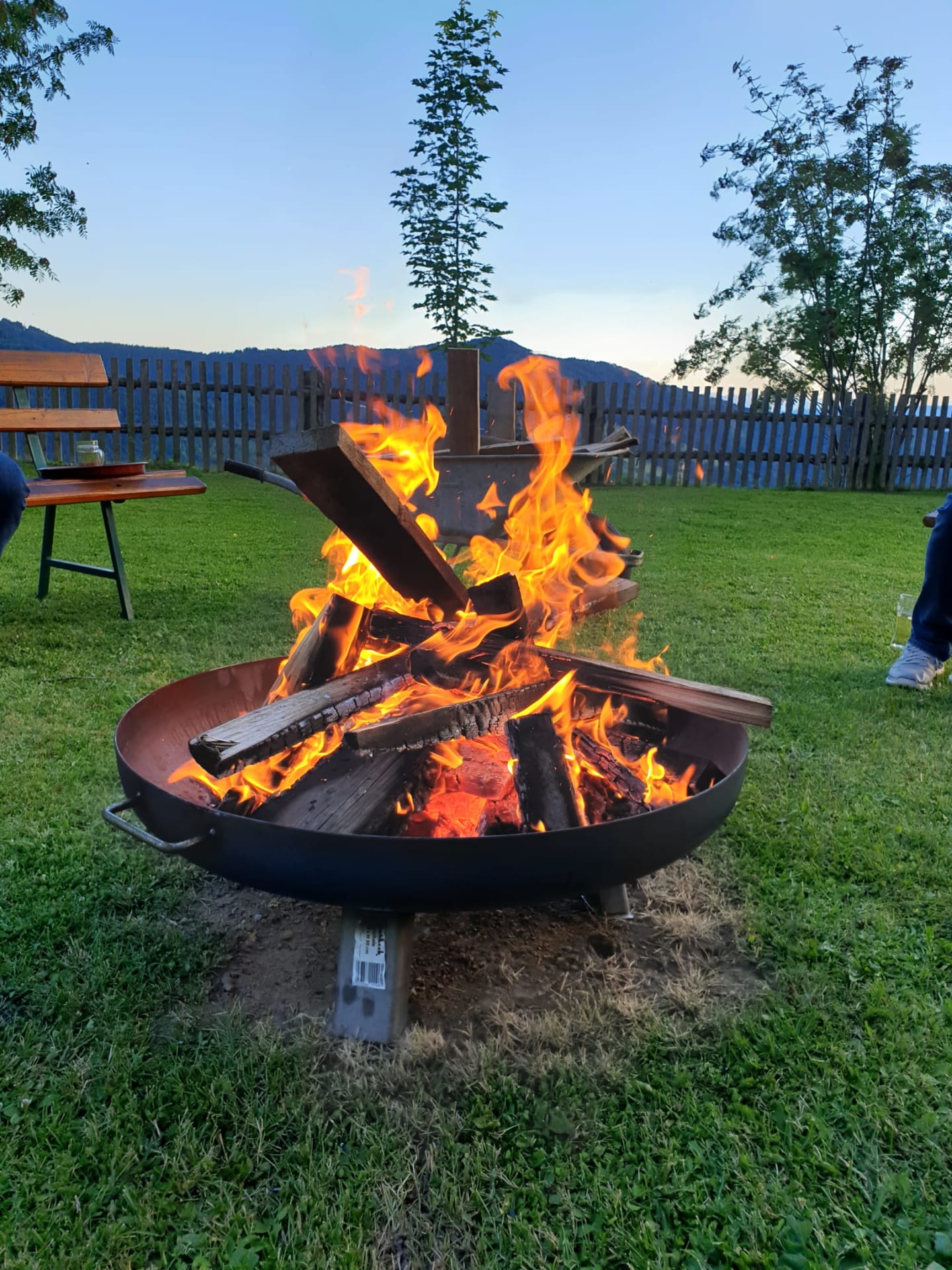 Das Highlight am Silvesterabend ist das lustige Flutlichrodeln auf unserer Hauswiese. Direkt an der Rodelpiste gibt es zum Aufwärmen Glühmost und Tee am Stockofenfeuer. Das neue Jahr begrüßen wir mit einem gemeinsamen Feuerwerk und anschließendem Mitternachstbuffet im Gastraum.
