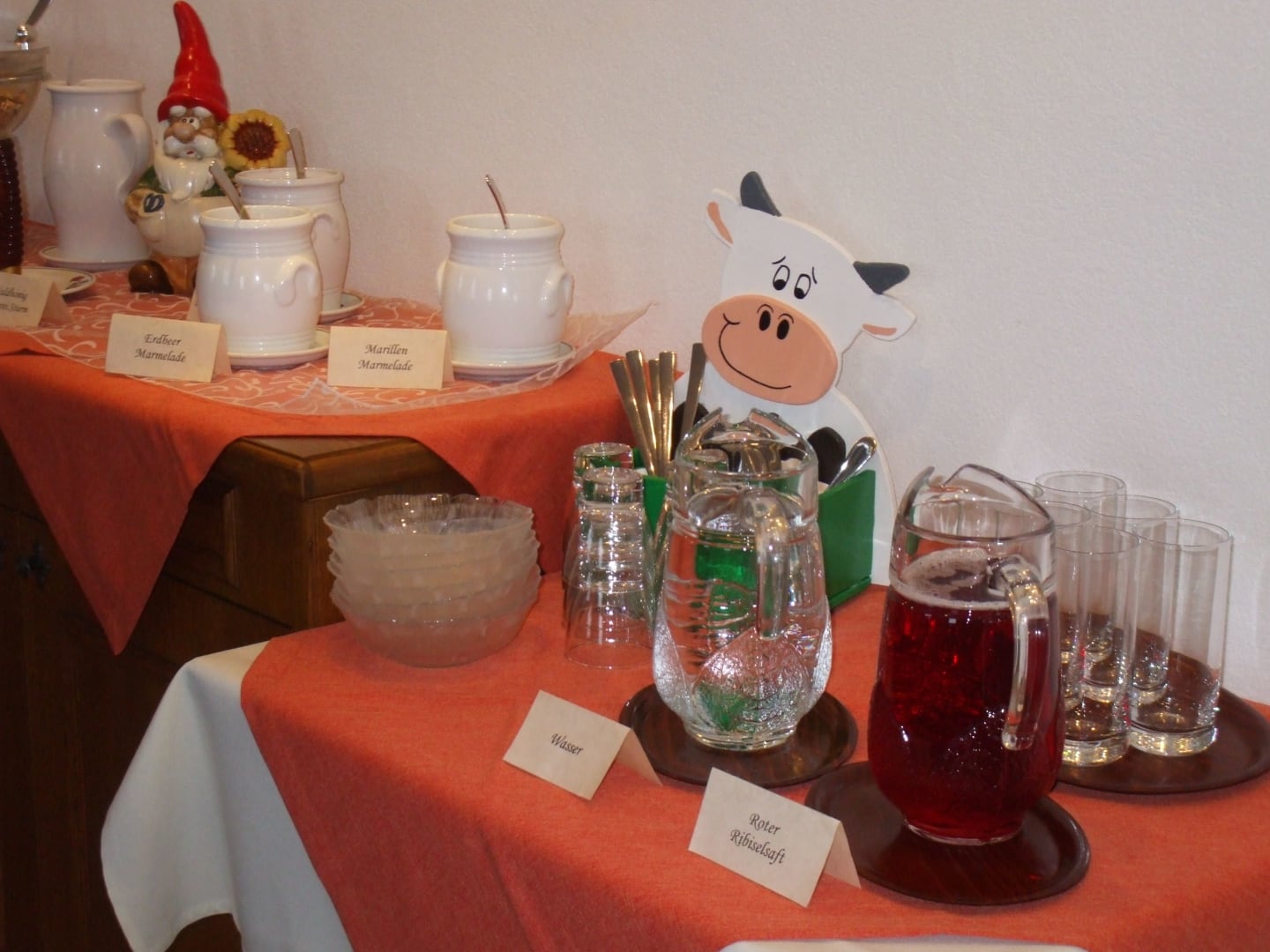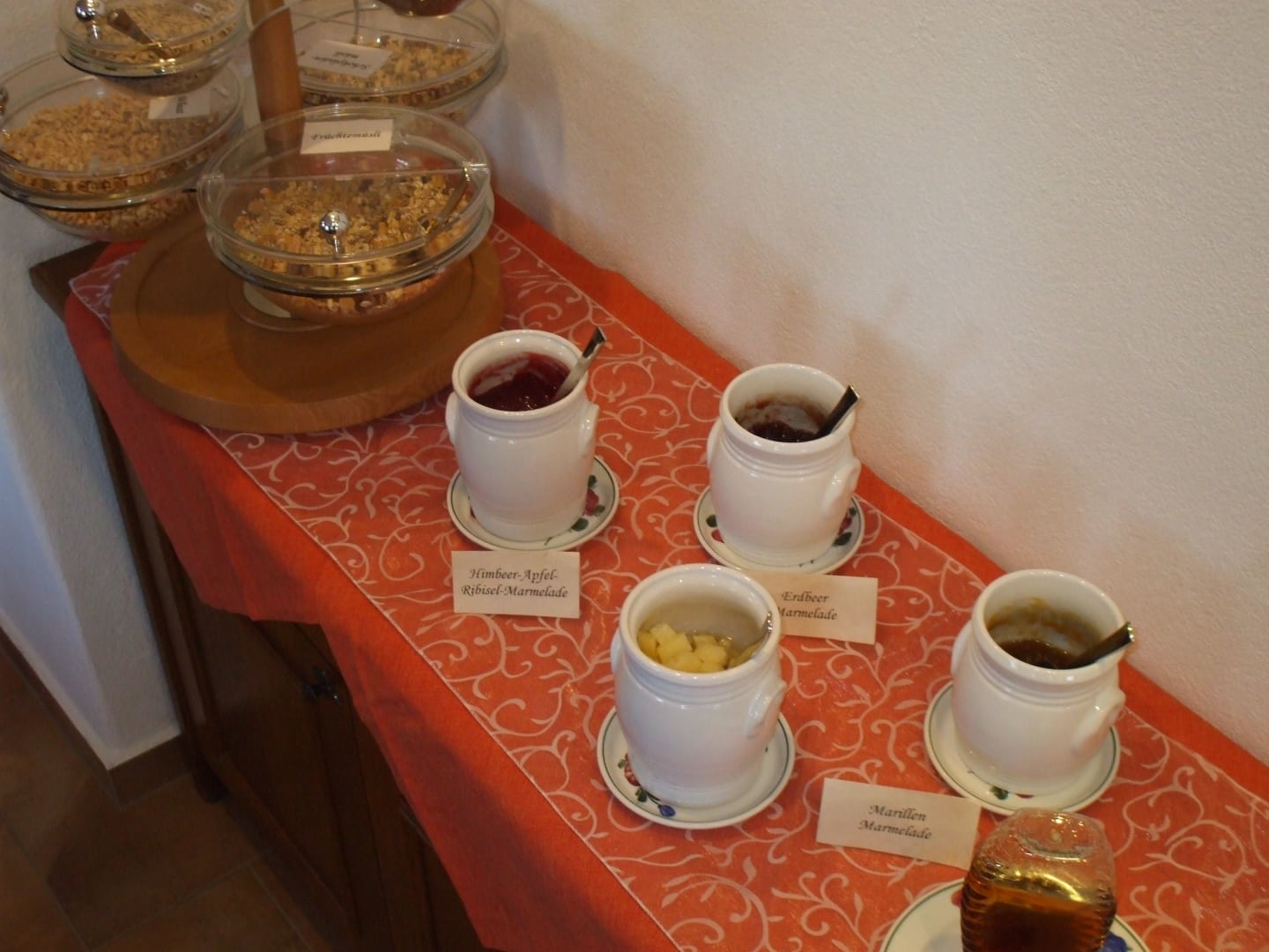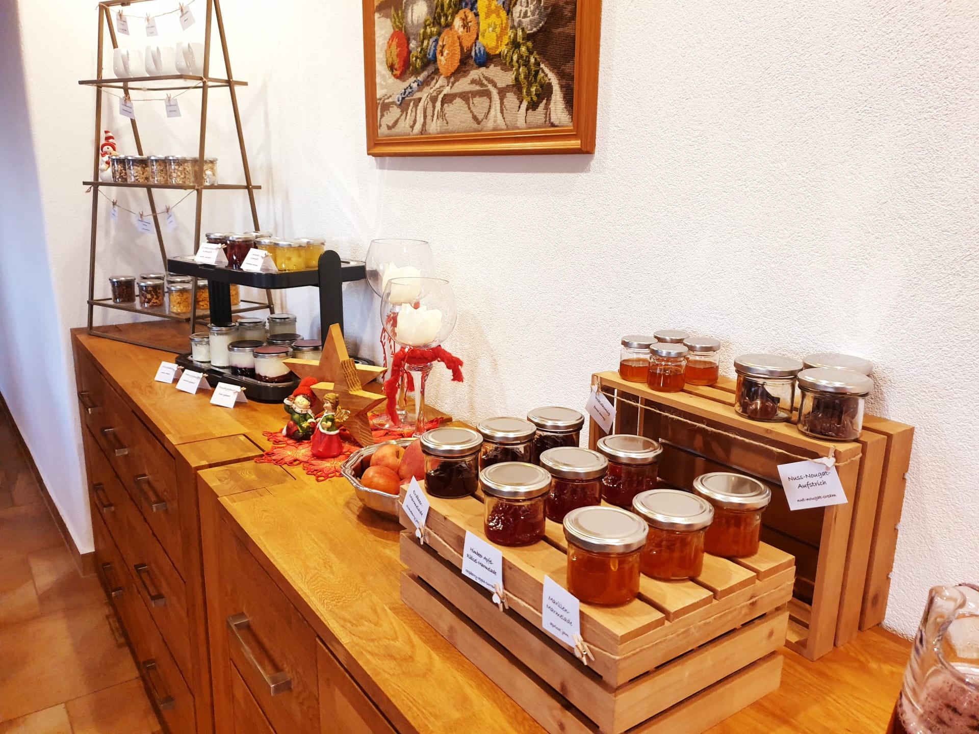 Beginne deinen Urlaubstag genussvoll beim leckeren Frühstücksbuffet mit Müsli, frischen Frühstückseiern, selbstgemachten Marmeladen, Schinken,... oder nutze den praktischen Brötchen- oder Frühstückskorbservice.