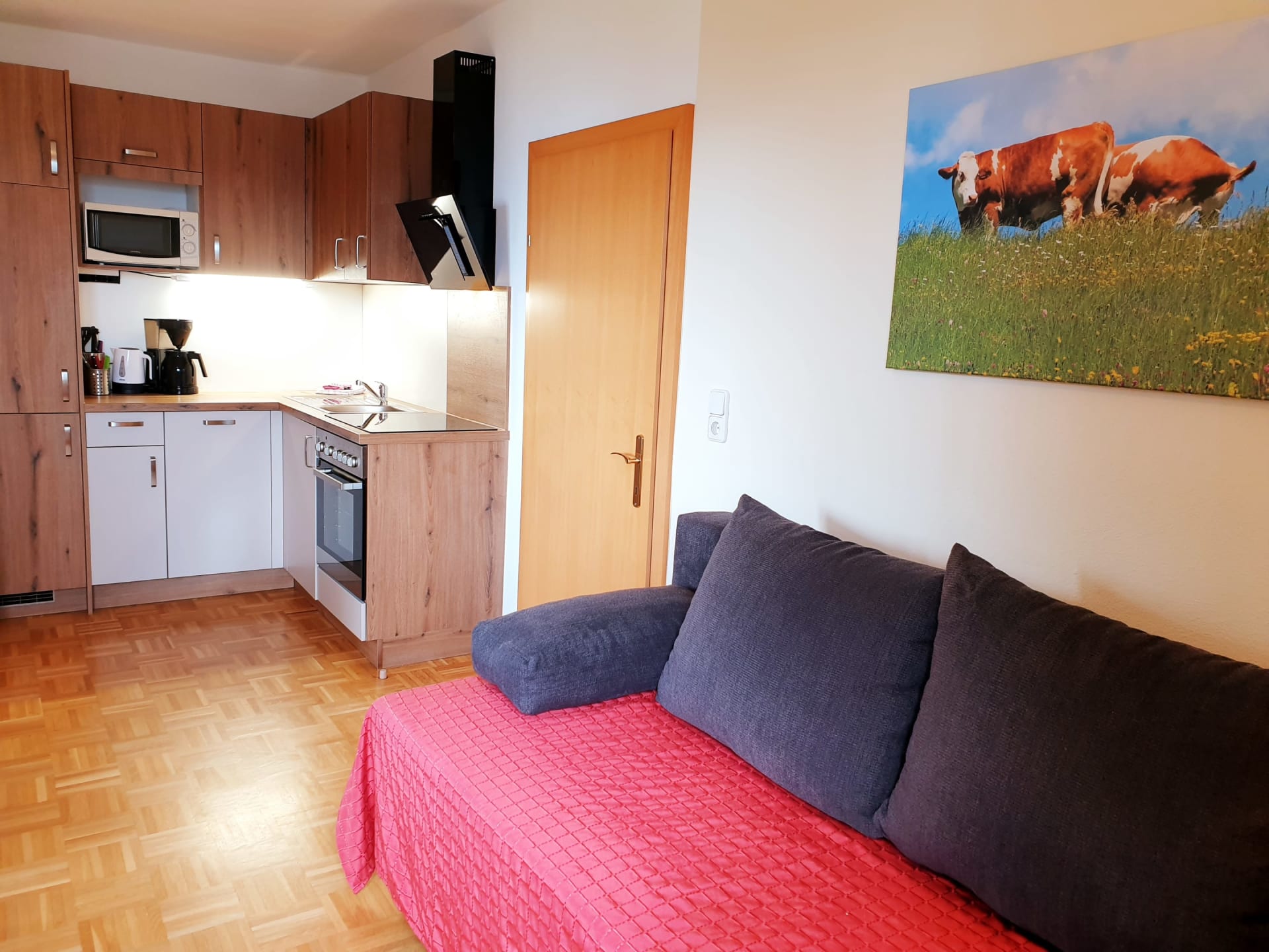 • großer Wohnraum mit NEUER Küche, Essecke, Schlafsofa für 2 Personen (160x200)