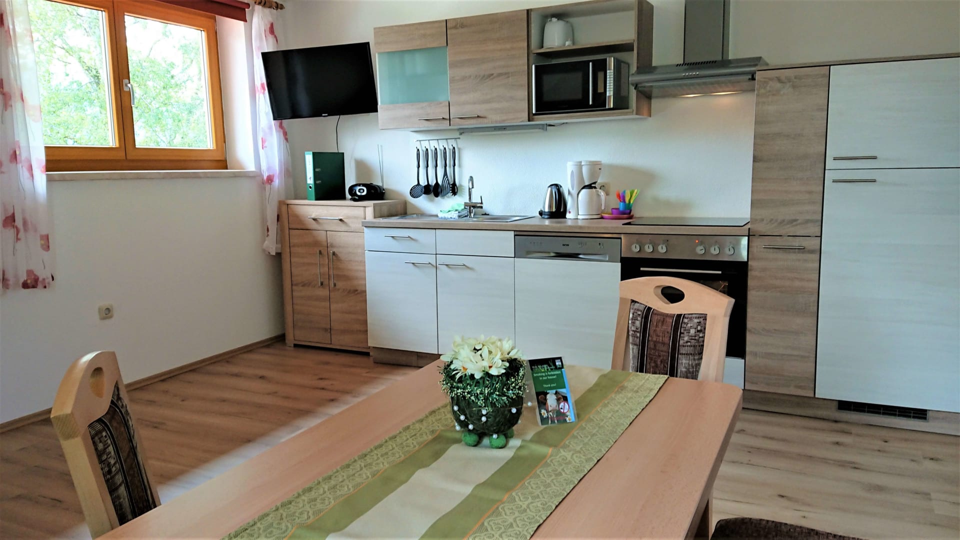 • gemütlicher Wohnraum mit NEUER Küche, Essecke, Ausziehsofa für 2 Personen (160x200), Sat-TV, Spülmaschine,...
