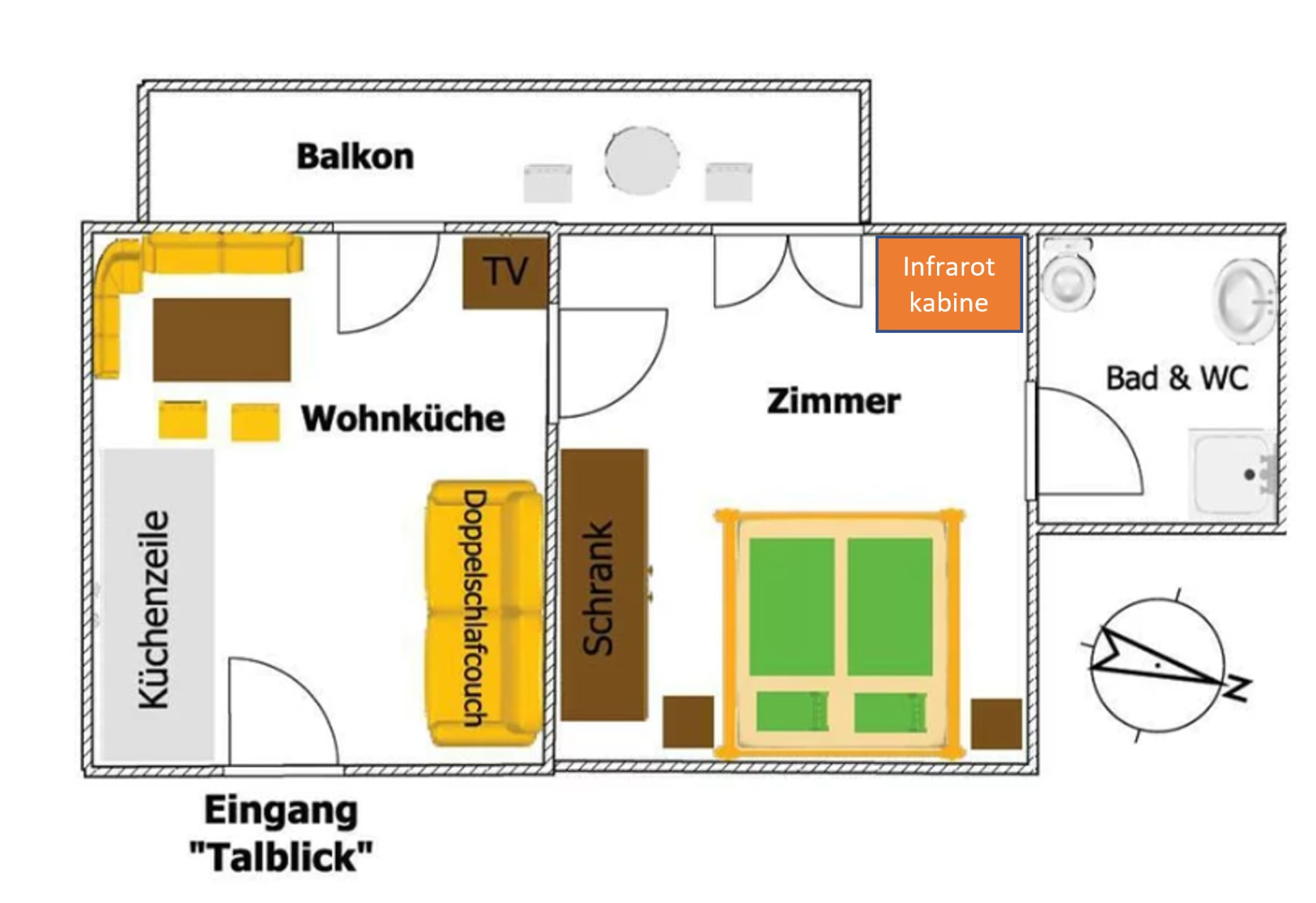 • 1 Doppelzimmer mit Infrarotkabine