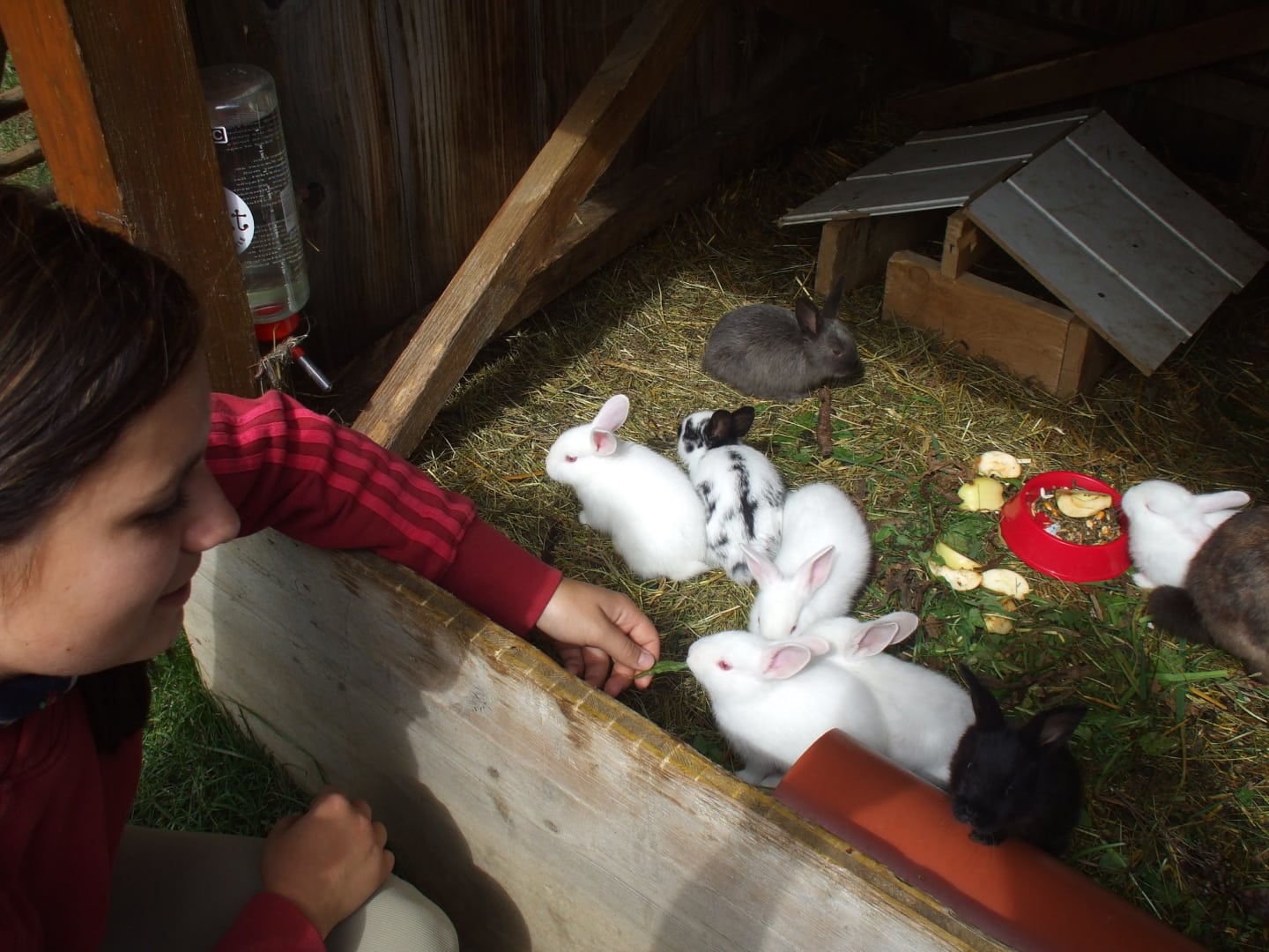 • die Streicheltiere im Stall besuchen, liebhaben und füttern