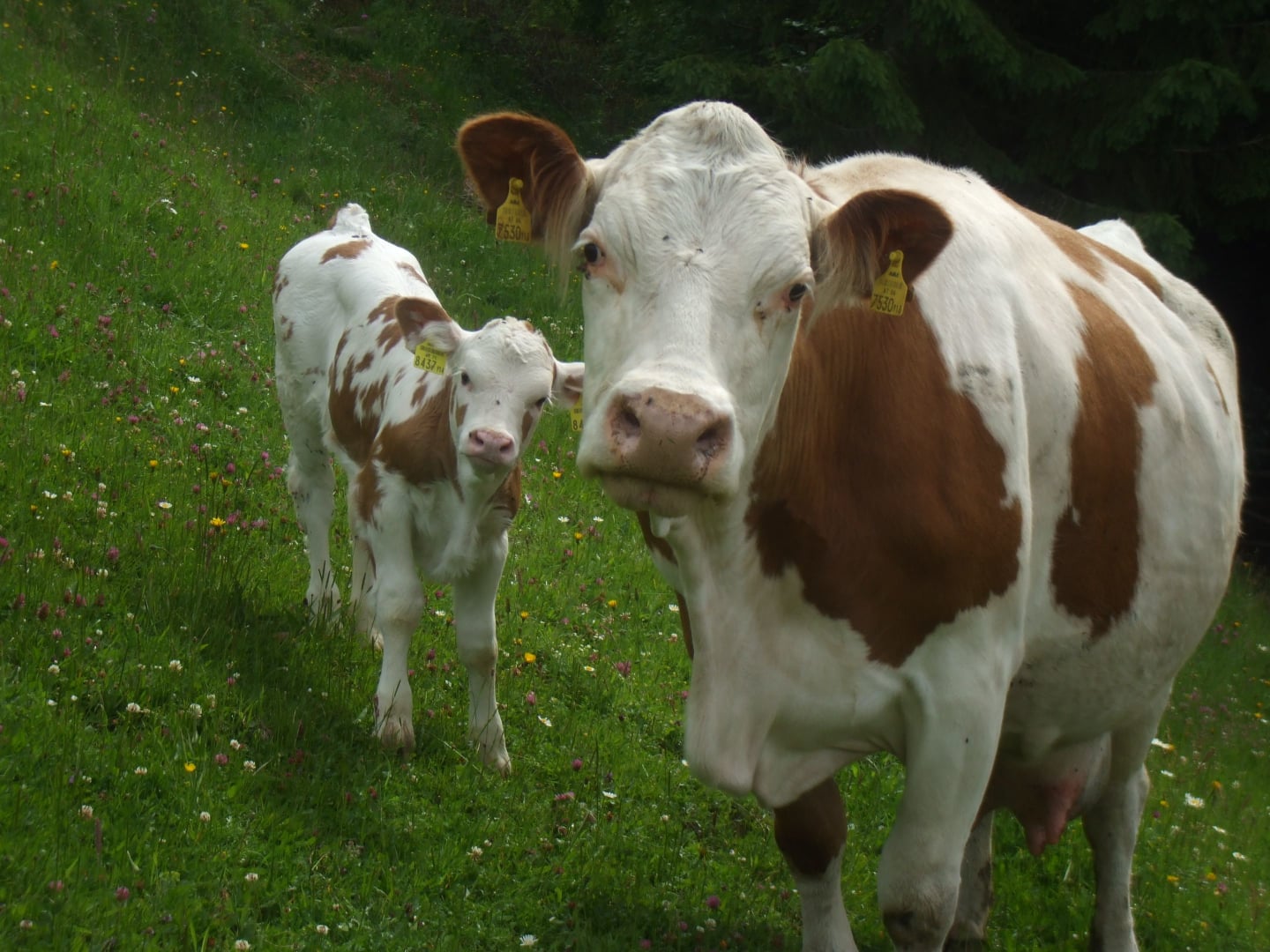 • die Kühe und Kälbchen beim Rumhüpfen im Auslauf beobachten
