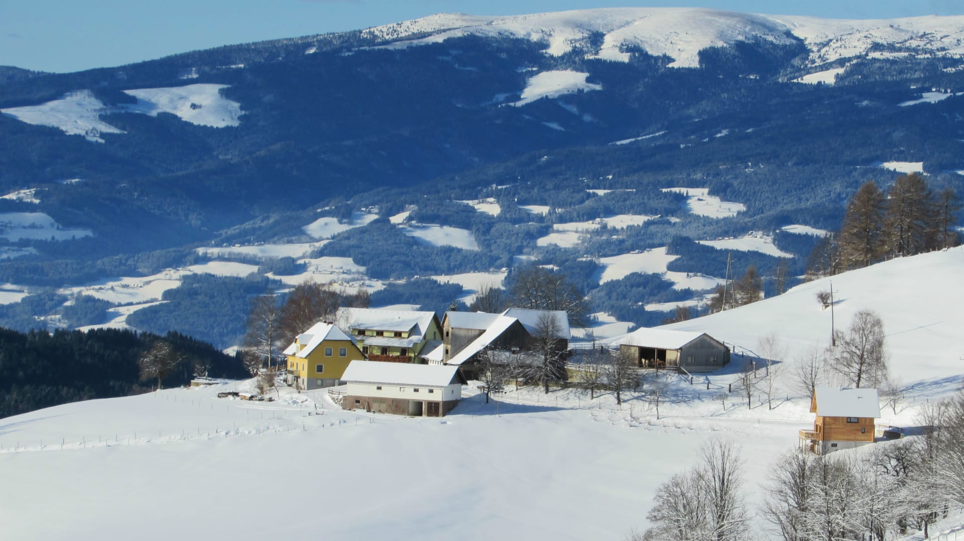 Das schneesichere Familienskigebiet Weinebene (Beschneiungsanlage!) erreichst du gut in 9 km - 11 Autominuten auf der bestens geräumten Straße. Dort erwarten dich 50 ha Pistenfläche mit 7 Liftanlagen, eine Schischule mit tollem Kursangebot für Erwachsene und Kinder, ein Schiverleih. Für Freestyler bietet der neue Snowpark viel Action auf einer eigenen Piste. Für die kleinen Skifans, Anfänger und Rodler gibt es einen überdachten Zauberteppichlift.