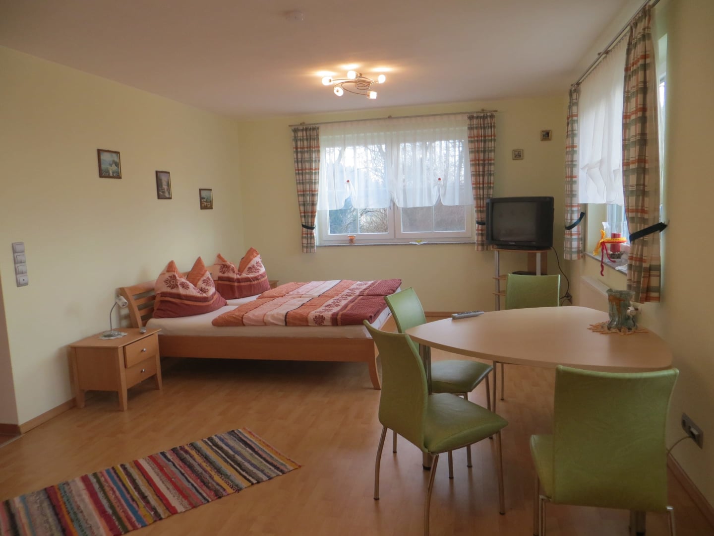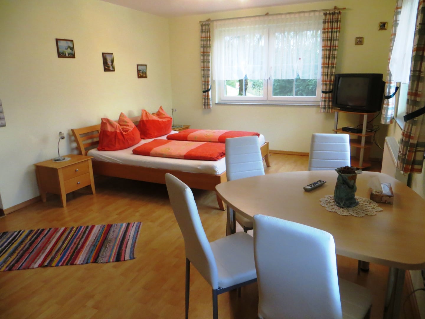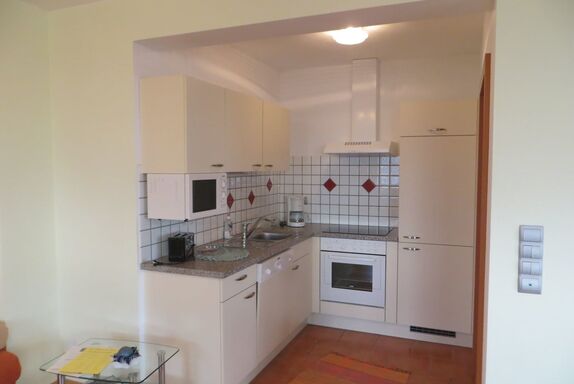 helle, freundliche Ferienwohnung mit großem Wohn/Schlafraum, Küche, Vorraum und großzügigem Badezimmer.