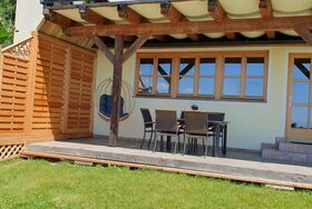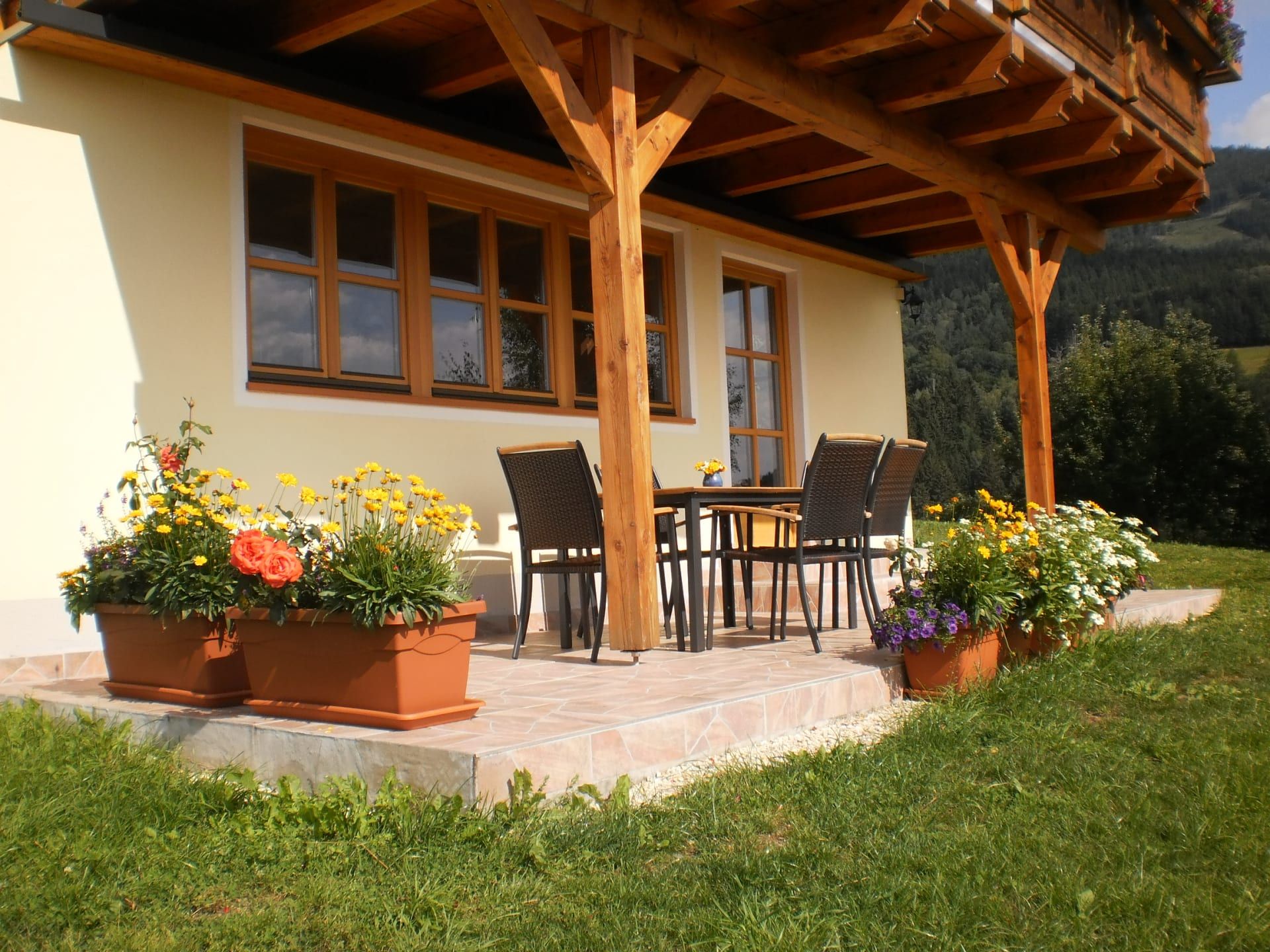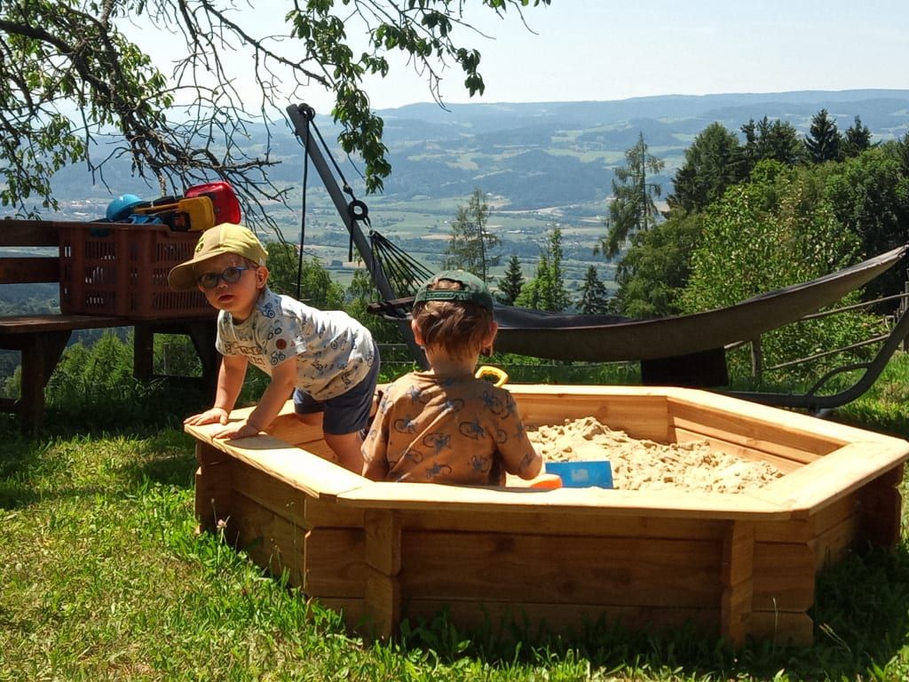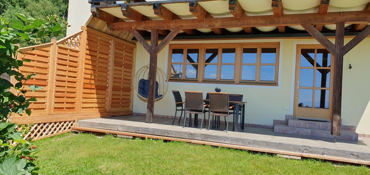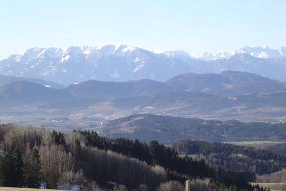 • Terasse mit Südblick auf die Karawanken und den Bauerngarten