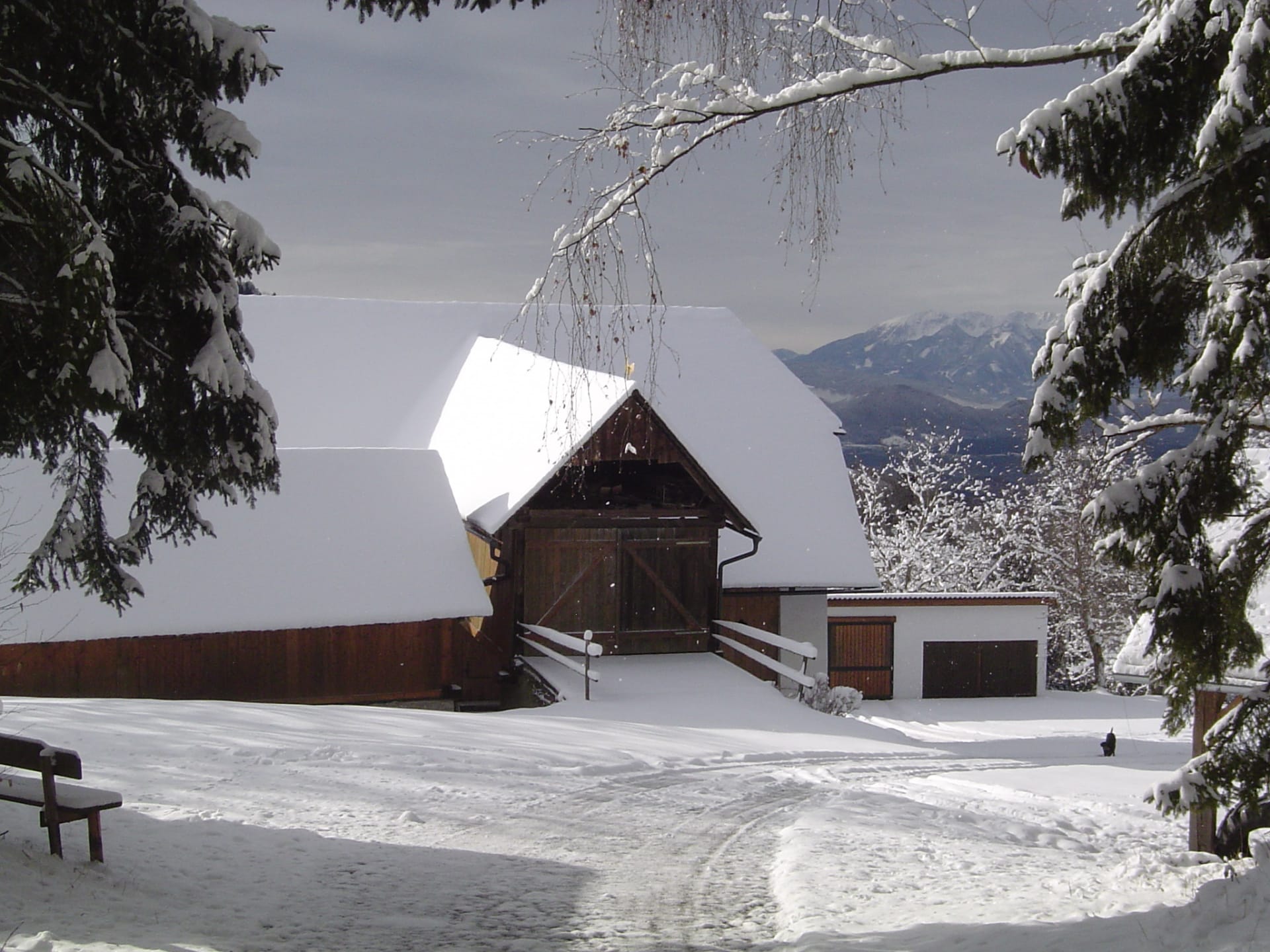 Schon hinter dem Haus kann der Schlitten ausprobiert werden. Dort wo im Sommer die Kühe grasen, lassen sich beim Winterurlaub auf Schneeschuhen oder Langlaufskiern Spuren in den unberührten Schnee ziehen.