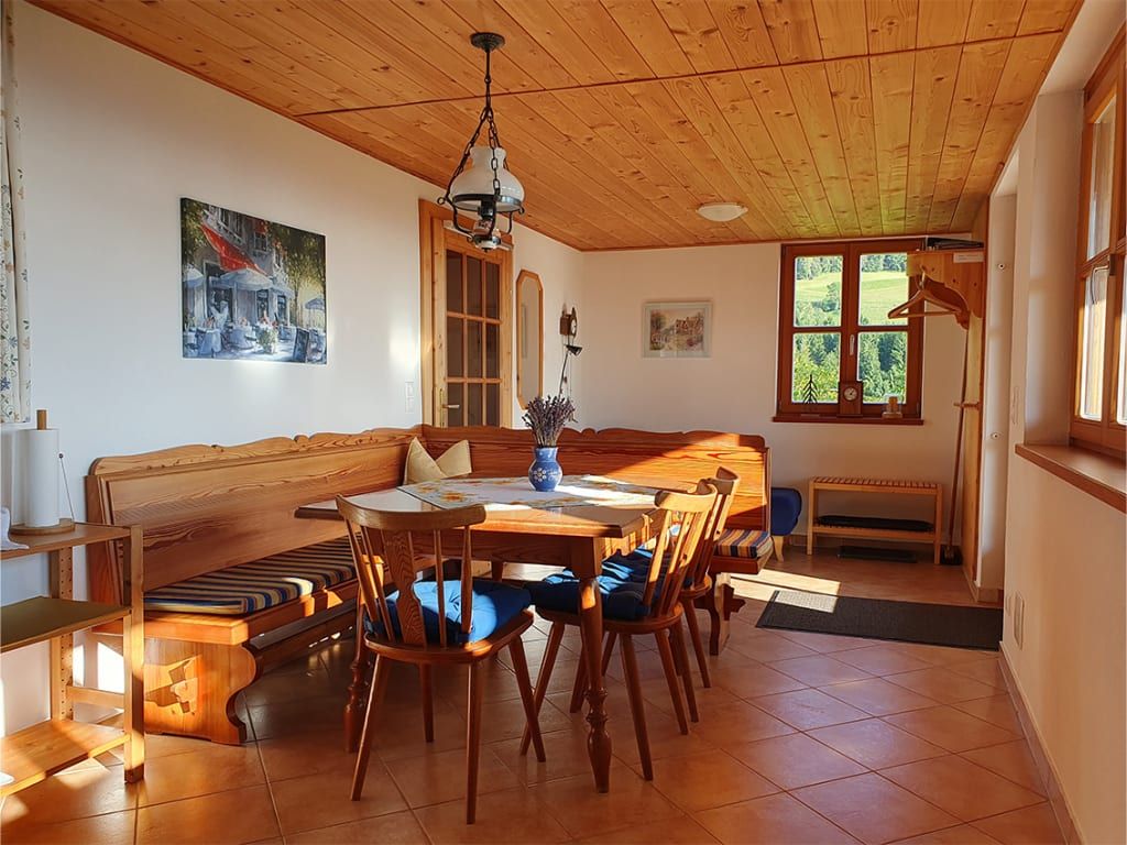 • Küche mit Lärchen-Sitzecke, Kühlschrank mit Gefrierfach, Spülmaschine, Ceranherd mit Abzug, Mikrowelle, Kaffee Vollautomat, Komplettausstattung Geschirr