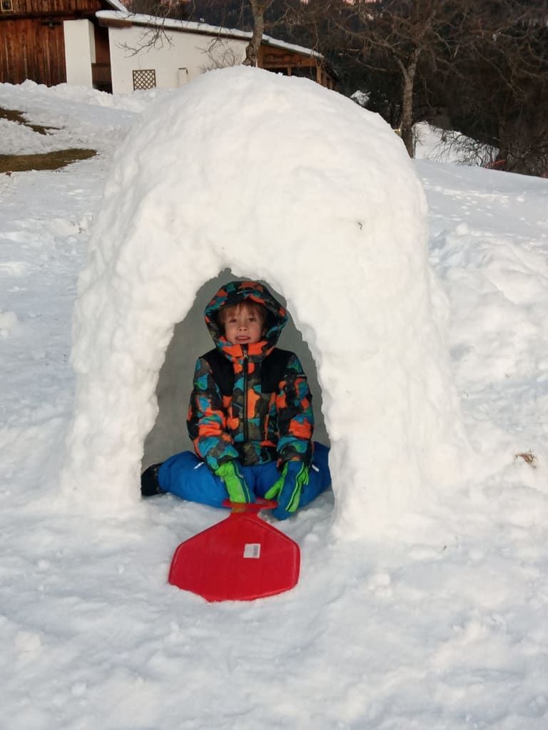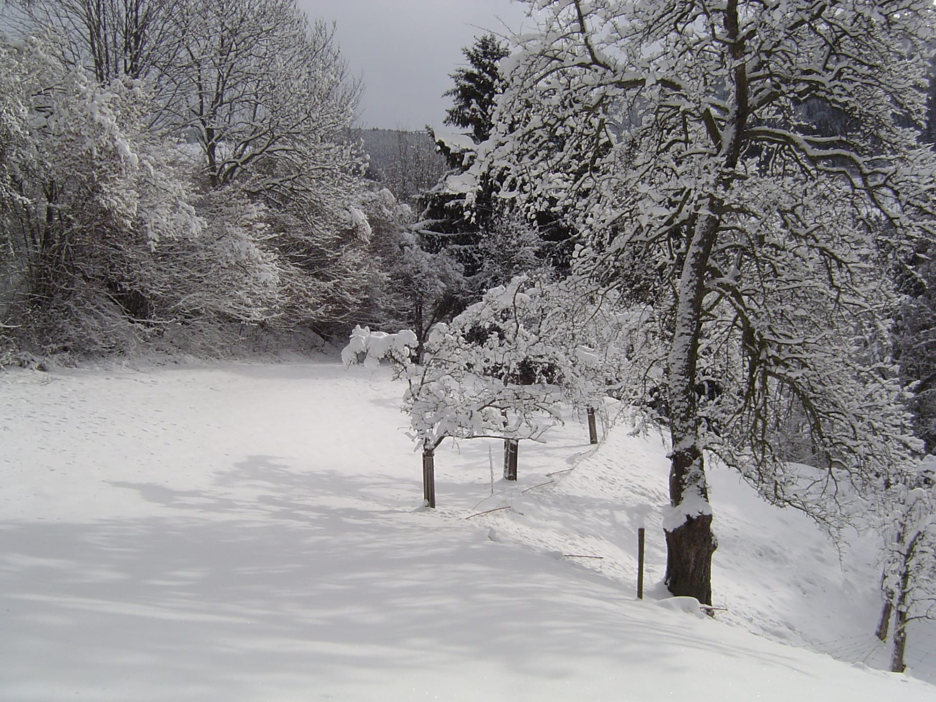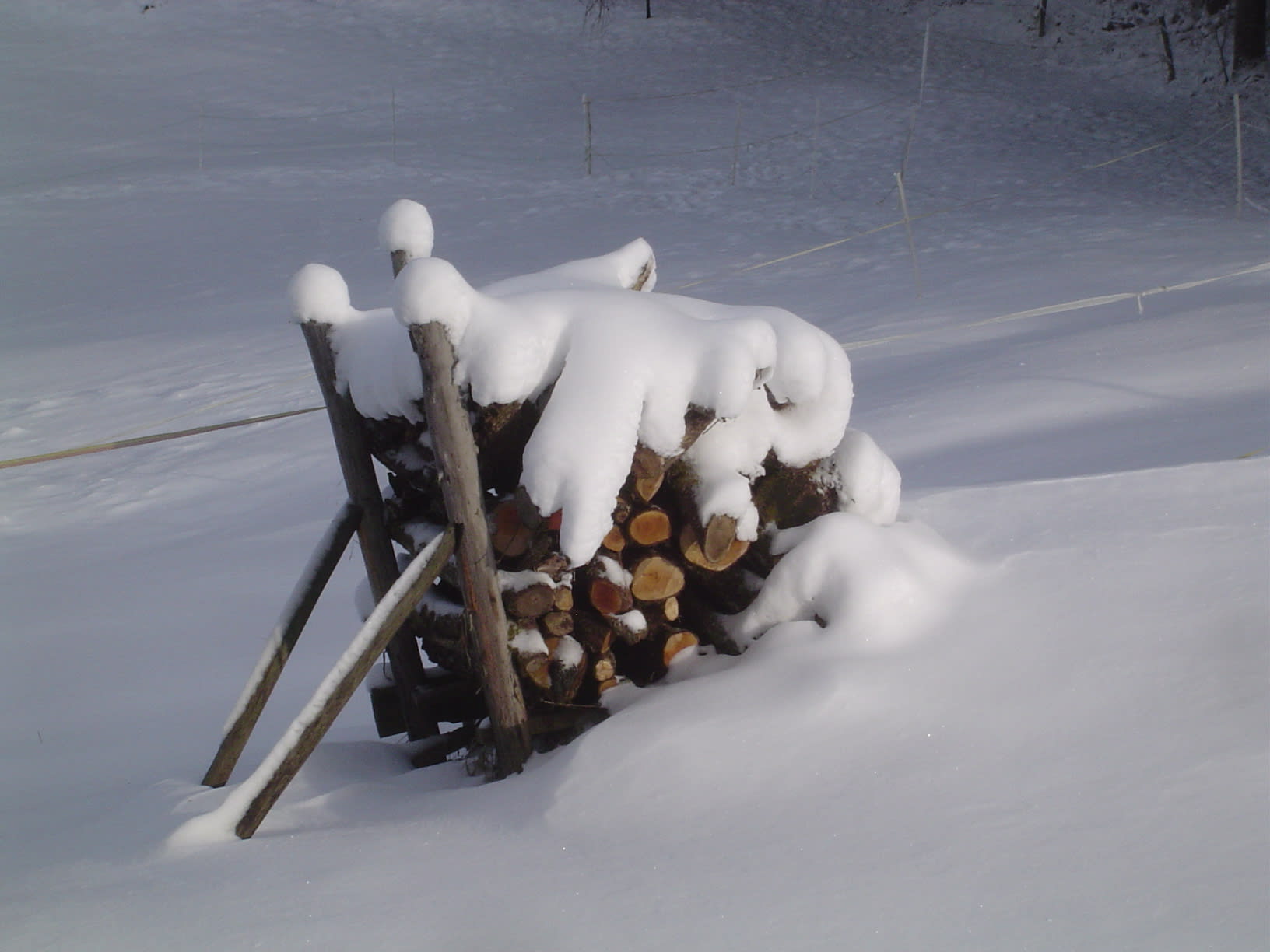 Schon hinter dem Haus kann der Schlitten ausprobiert werden. Dort wo im Sommer die Kühe grasen, lassen sich beim Winterurlaub auf Schneeschuhen oder Langlaufskiern Spuren in den unberührten Schnee ziehen.