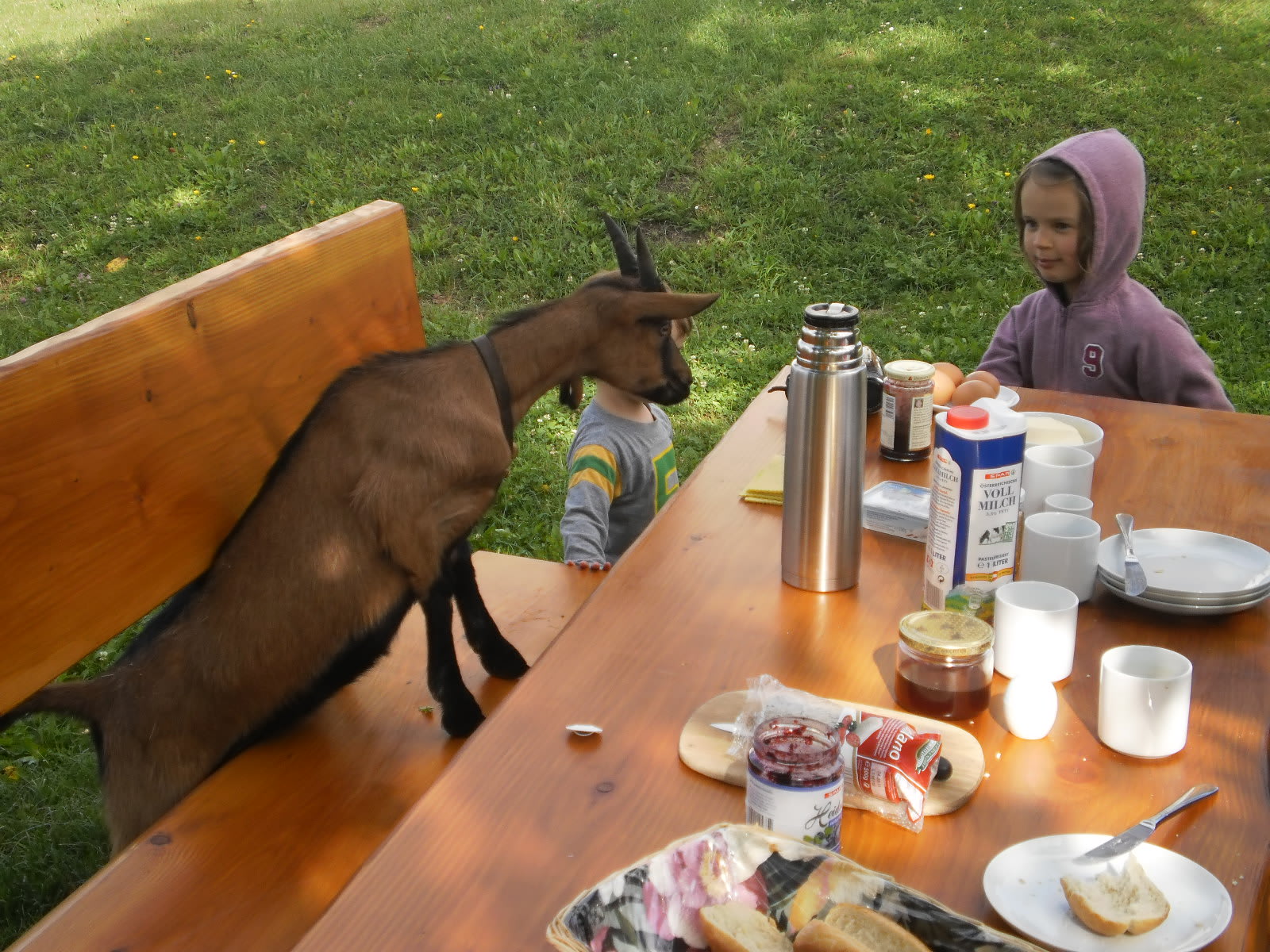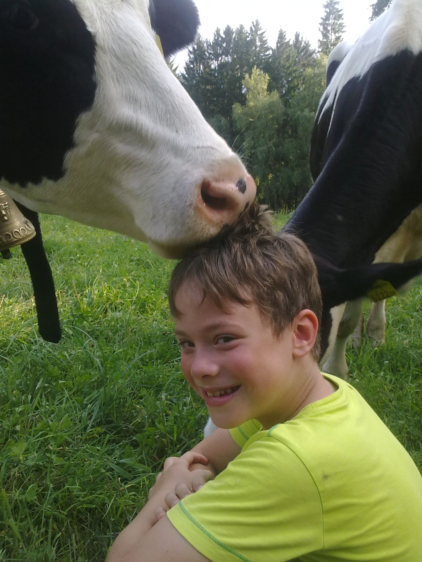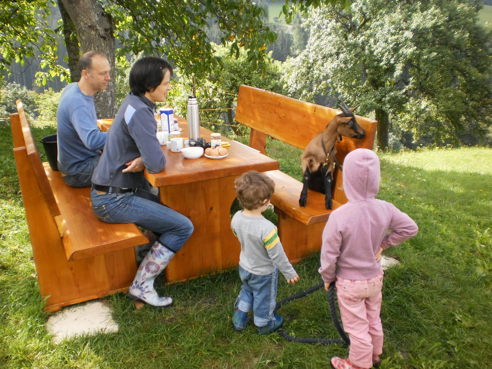 Schon hinter dem Haus kann der Schlitten ausprobiert werden. Dort wo im Sommer die Kühe grasen, lassen sich beim Winterurlaub auf Schneeschuhen oder Langlaufskiern Spuren in den unberührten Schnee ziehen.