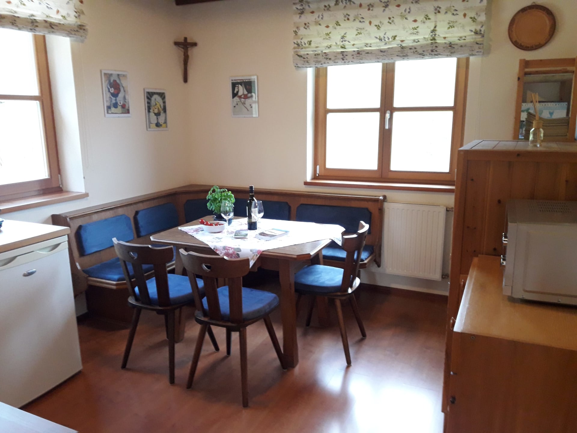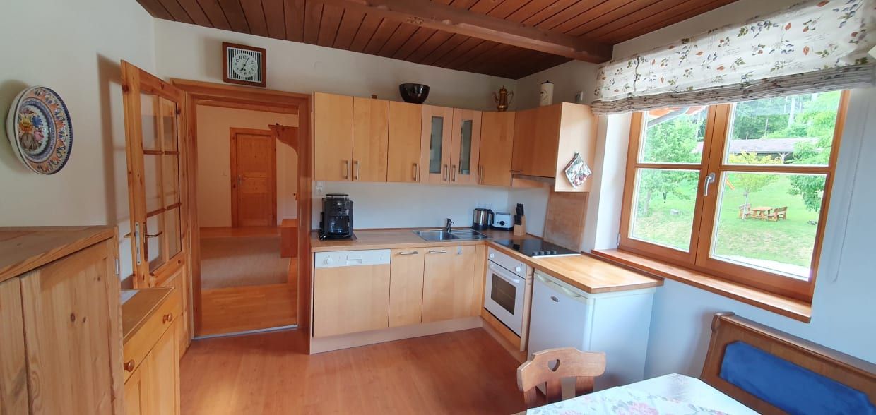• Küche mit Sitzecke, Kühlschrank mit Gefrierfach, Spülmaschine, Ceranherd mit Abzug, Mikrowelle, Kaffee Vollautomat, Komplettausstattung