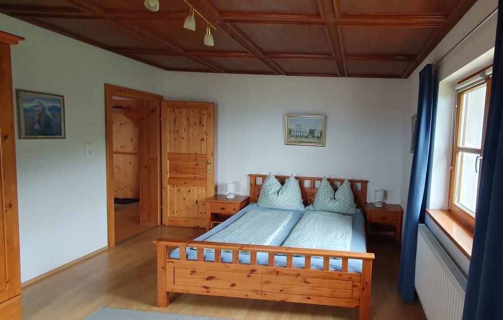 • Die Almkammer, Doppelbett, Schreibtisch, Schrank, Bücherregal