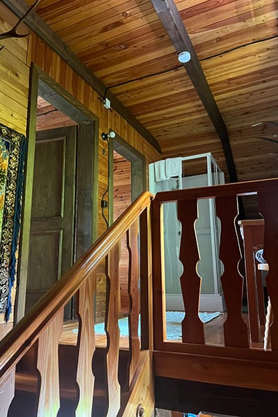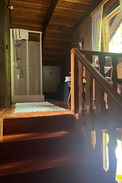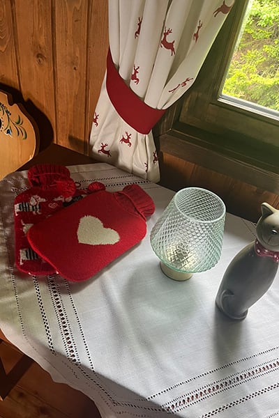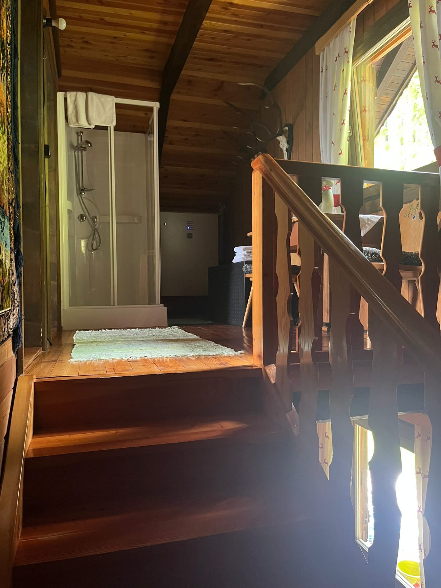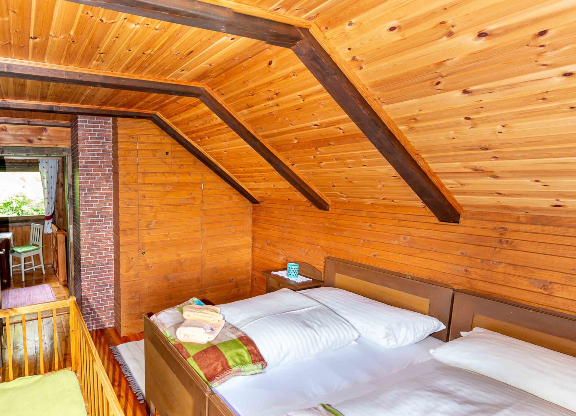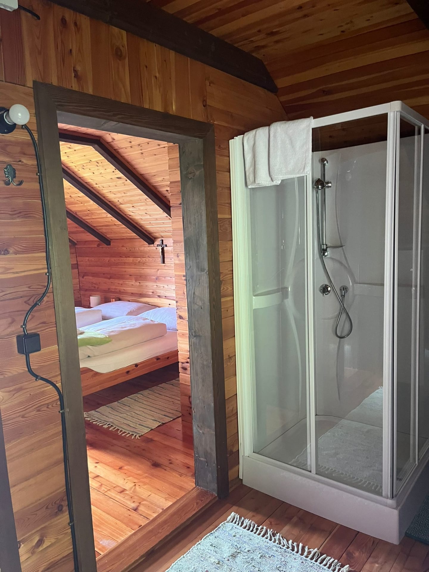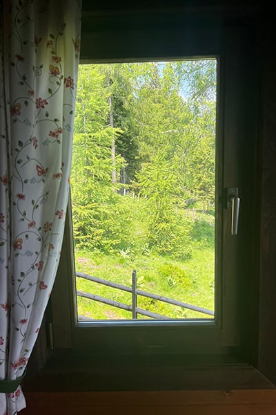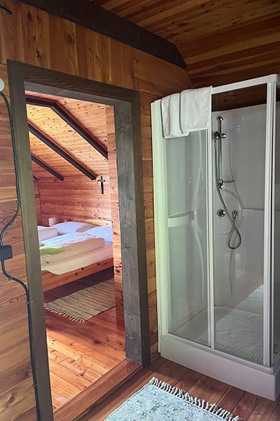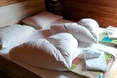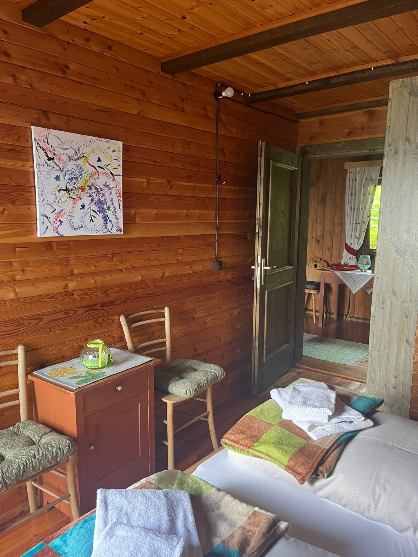 Gemütliche Almhütte mit Vorraum; ausgestattete Küche mit Holzherd, Kühlschrank, Sitzecke, Couch, Warm-Fließwasser. EG: Doppelzimmer. WC mit Waschbecken (Fließwasser). Über eine Treppe 2 Doppelzimmer. Duschkabine mit Warmfließwasser (Gastherme).