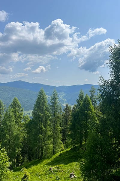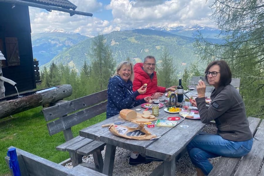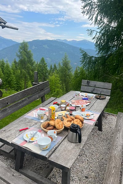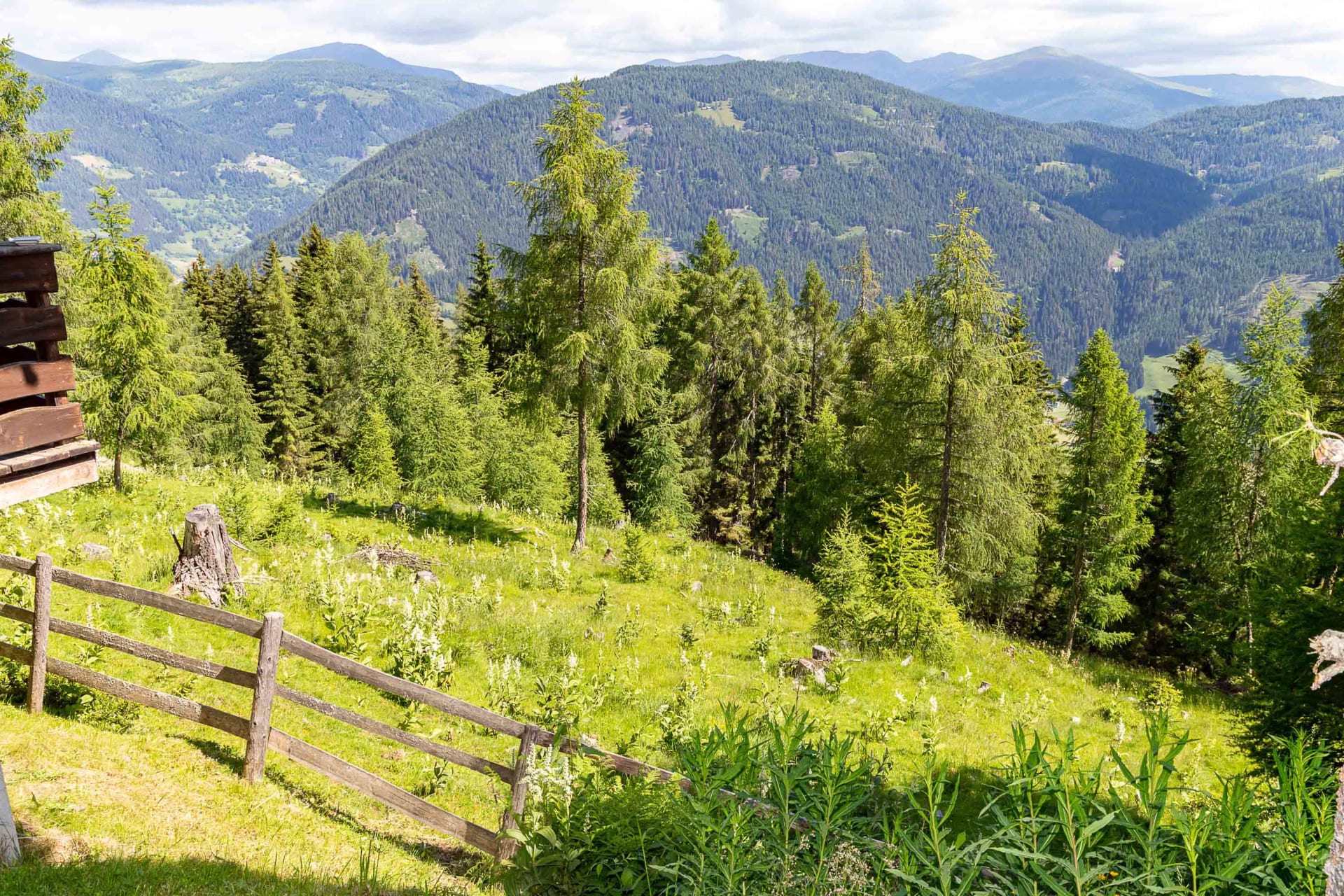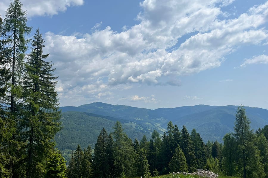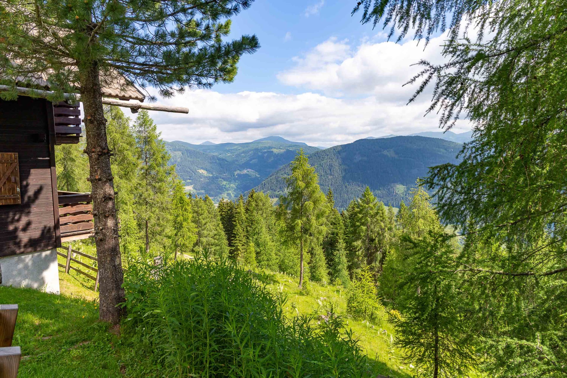 Lage: Auf einem ebenen Almplatz mit prachtvoller Aussicht auf die Nockberge und ins Tal