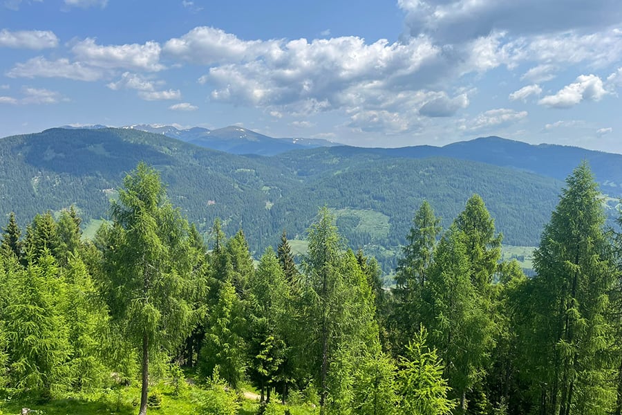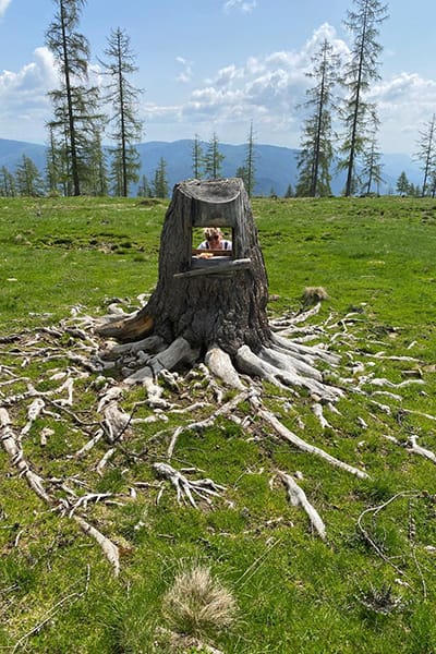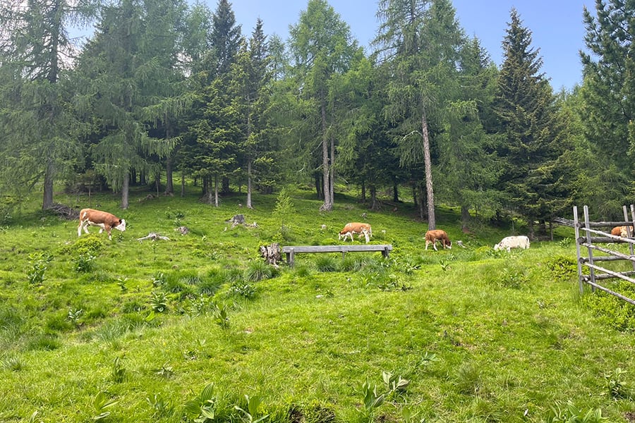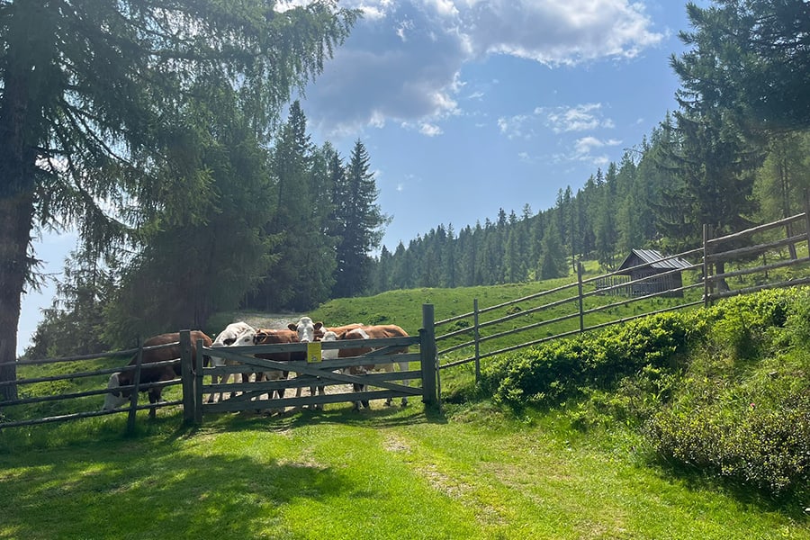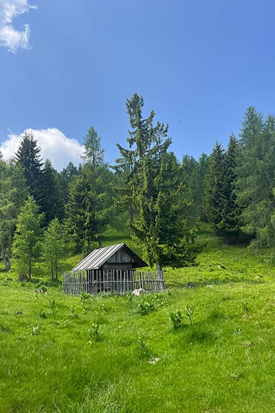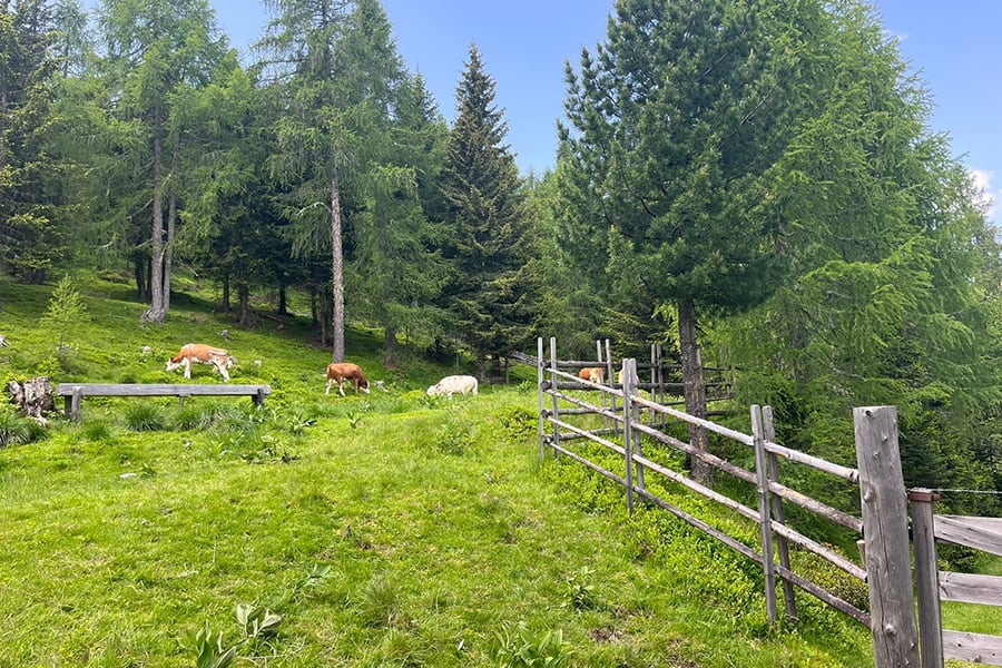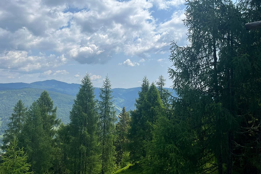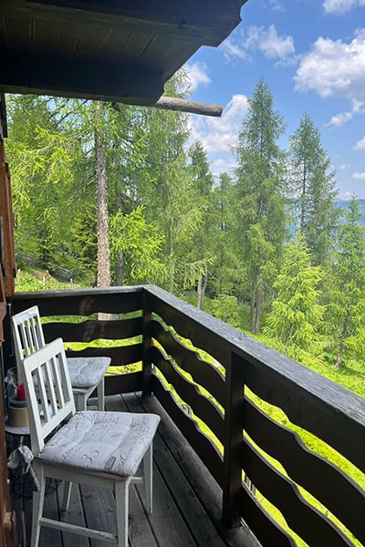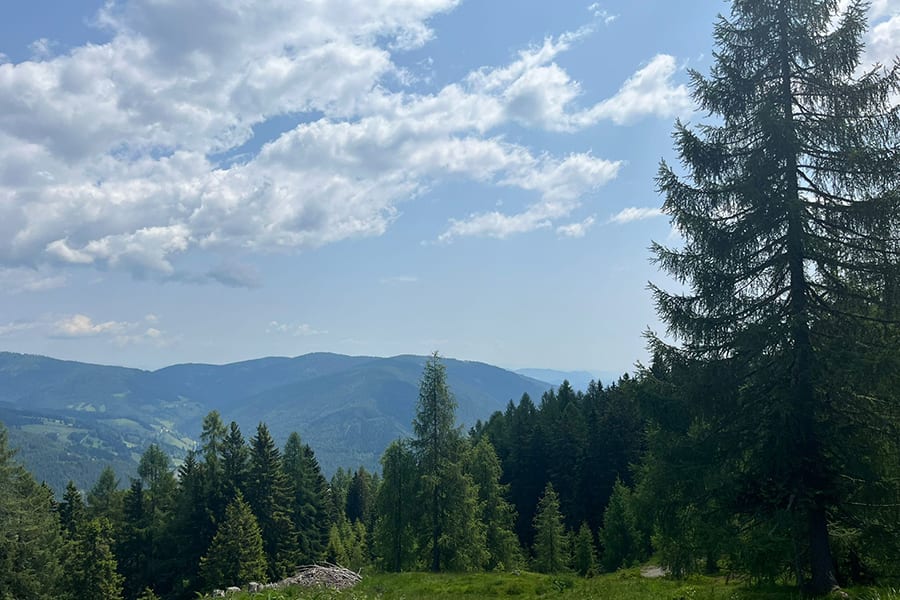 Lage: Auf einem ebenen Almplatz mit prachtvoller Aussicht auf die Nockberge und ins Tal