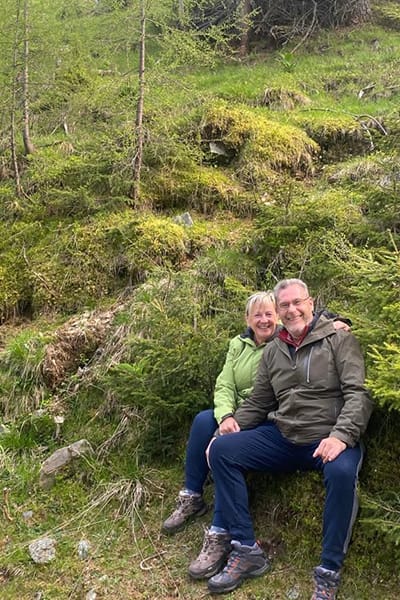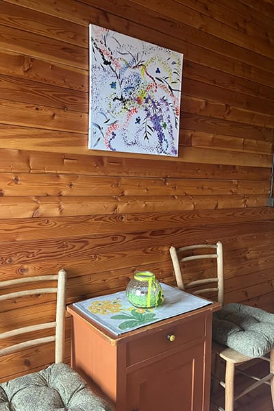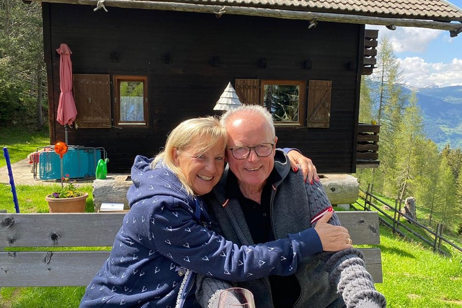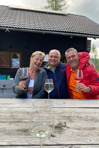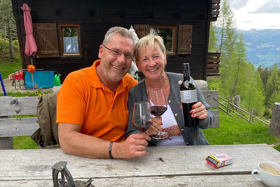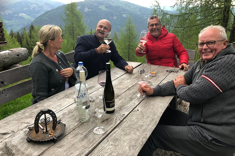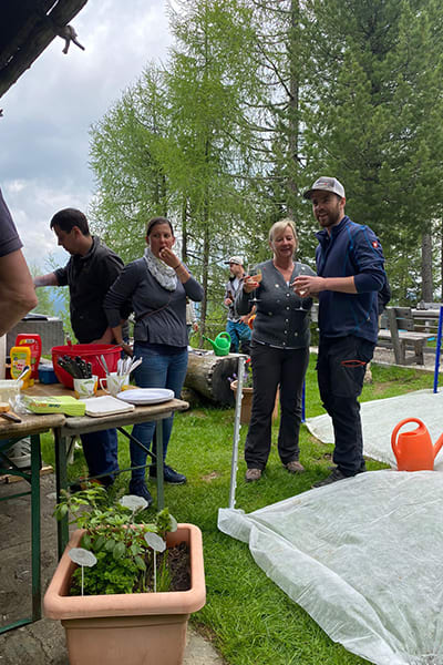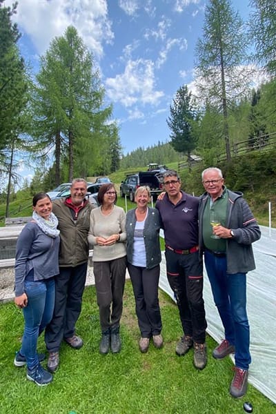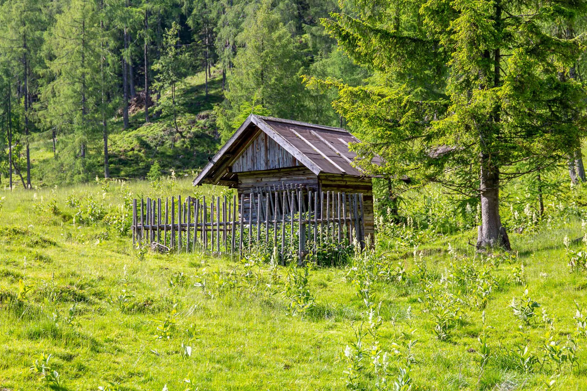 Eingezäunter Hüttenplatz mit großer, gemütlicher Sitzgruppe, Brunnen. Photovoltaik-Strom.
