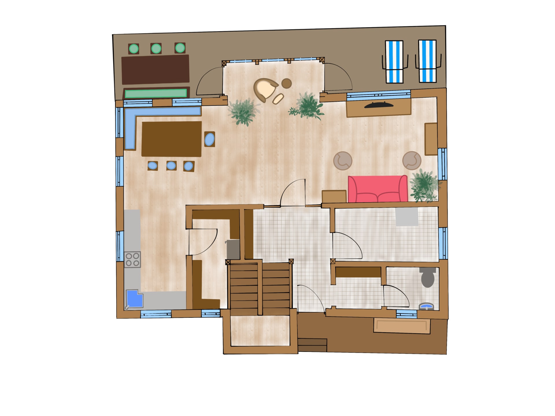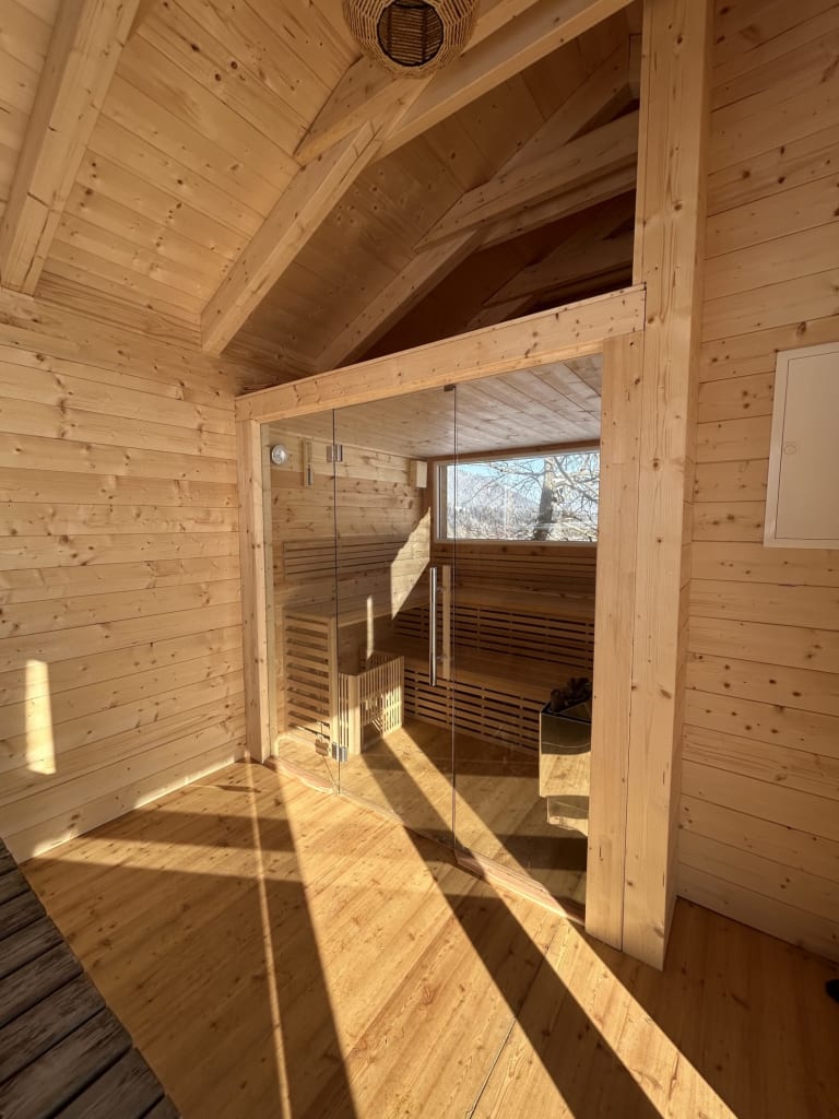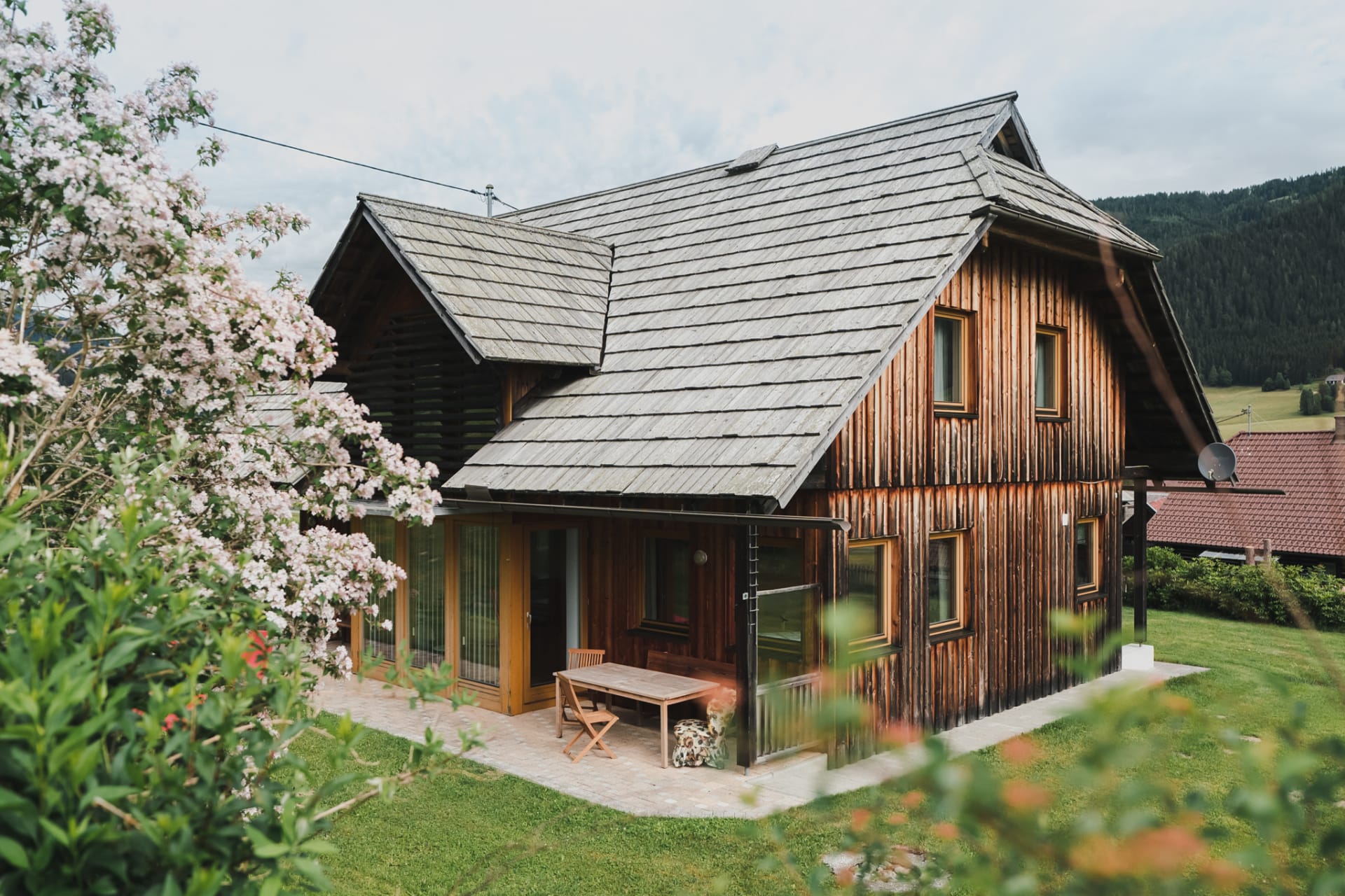 Alleinstehendes Holzhaus mit luxeriöser Austattung, 170 m2, drei Schlafzimmer, Wintergarten,  Spielturm, Griller, zwei Terrassen und wunderbarer Aussicht!
