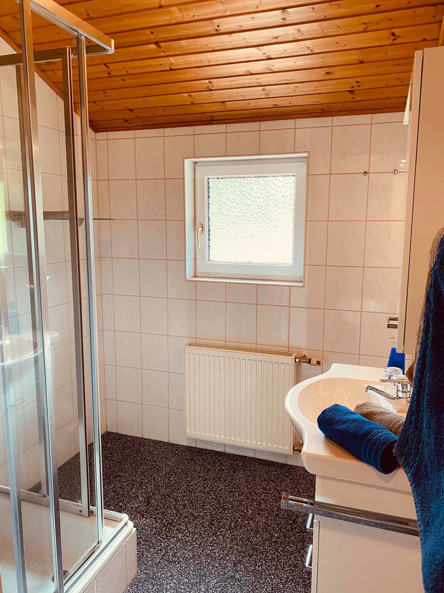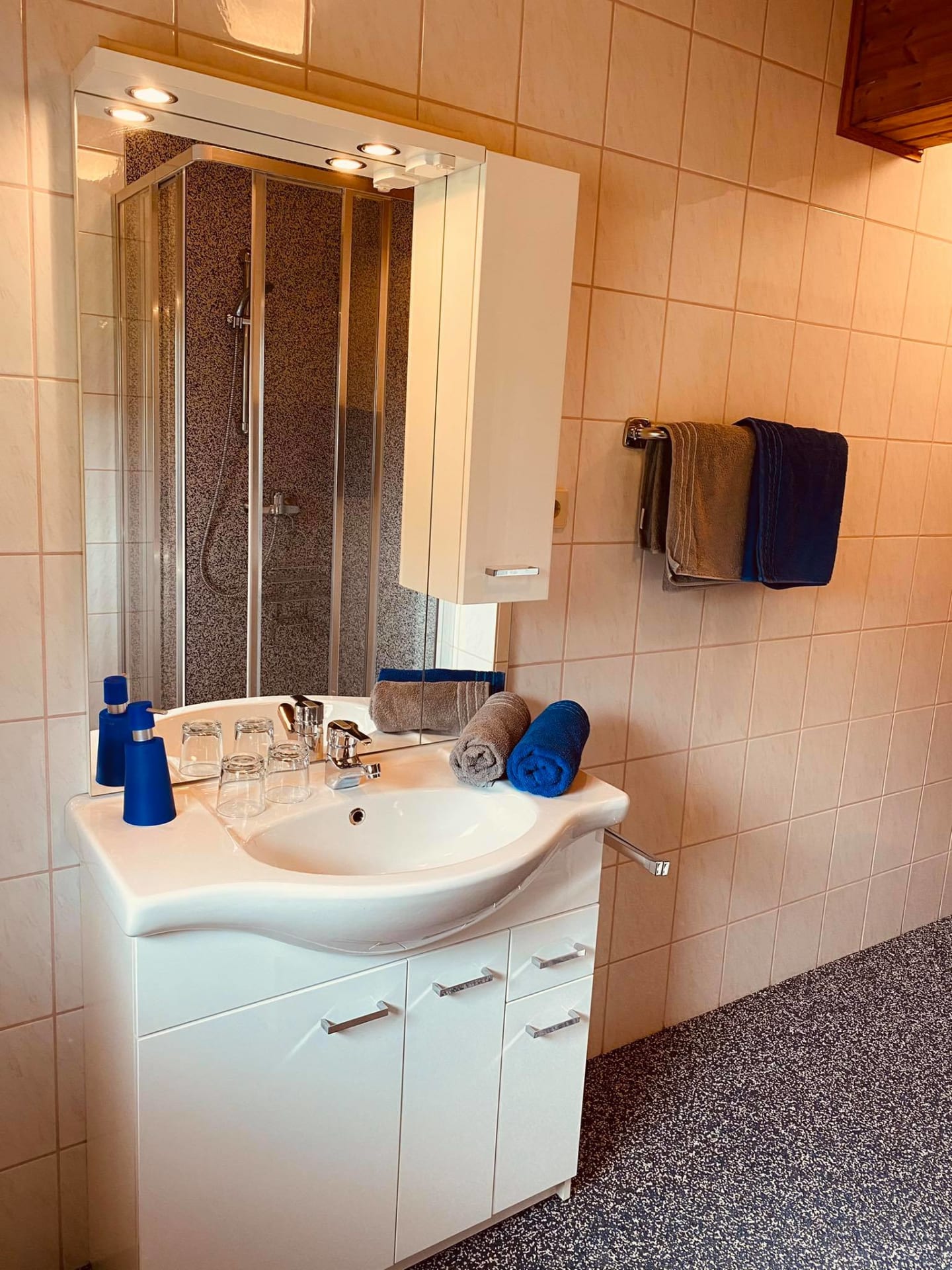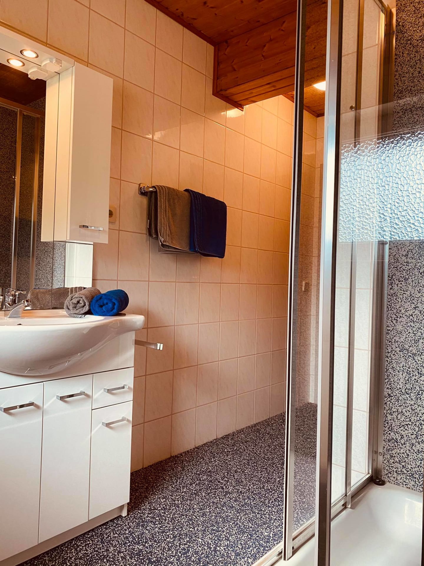 • Ein Badezimmer mit Dusche