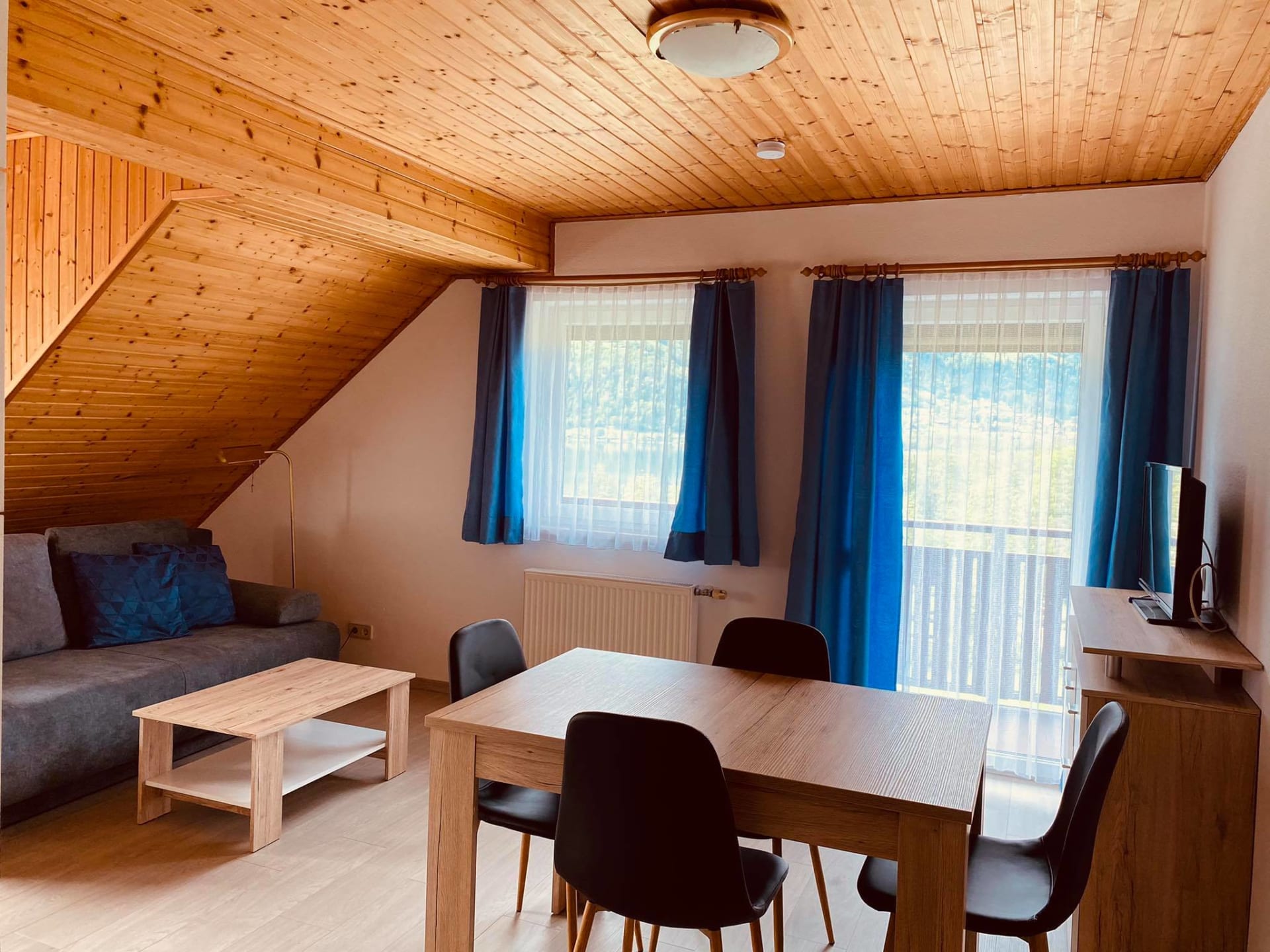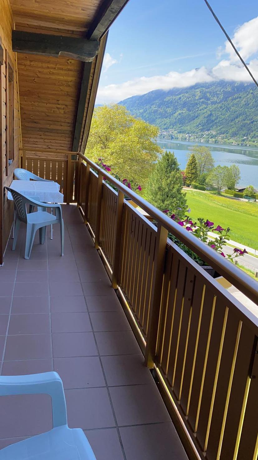 Unsere Ferienwohnung Seeseite bietet einen herrlichen Panoramablick über den Ossiacher See bis zur Gerlitzen Alpe. Auf dem eigenen Balkon genießen Sie traumhafte Sonnenuntergänge – ideal für entspannte Abende mit besonderem Ausblick.