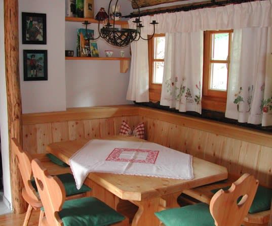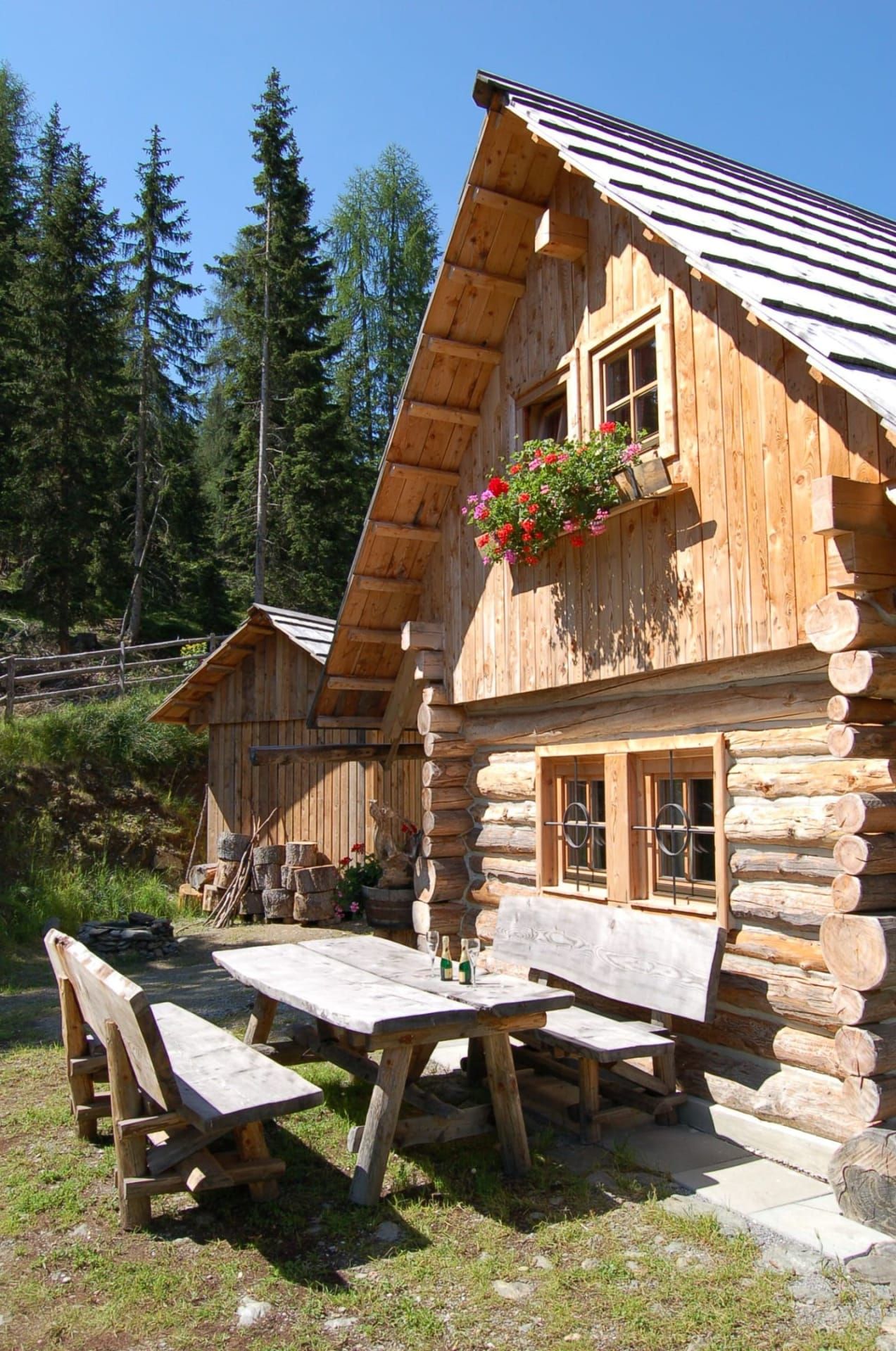 Hier findet man eine Küche mit Essecke, ein Bad mit Holzbadewanne und Dusche, ein WC und oben auf 3 kleine Zimmerchen für bis zu 6 Genießer. Es gibt fließend Wasser, allerdings keinen Strom. Herd und Badeofen sind mit Holz zu heizen. Holz finden Sie gleich hinten in der Holzhütte ... natürlich dürfen Sie auch selbst Kleinholz machen, oder Brennholz fürs Lagerfeuer sammeln. Neben der Saunahütte steht zur Abkühlung eine besondere Baumdusche. Auf der Almhütte gibt es kein WLAN! Ein kühler Erdkeller versteckt sich hinter der Holzhütte. Die Hütte liegt auf 1700m Seehöhe eingebettet in lieblich geformte Nockberge am Fuße der Kaiserburg. Zufahrt: 10 km von Patergassen über einen privaten Güterweg. Ein höher gestelltes Auto ist von Vorteil.