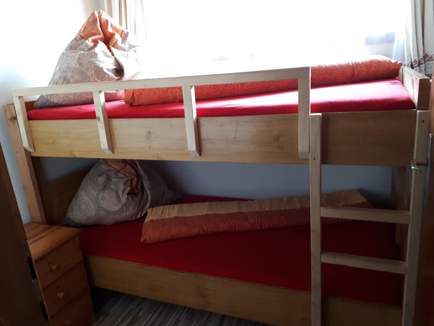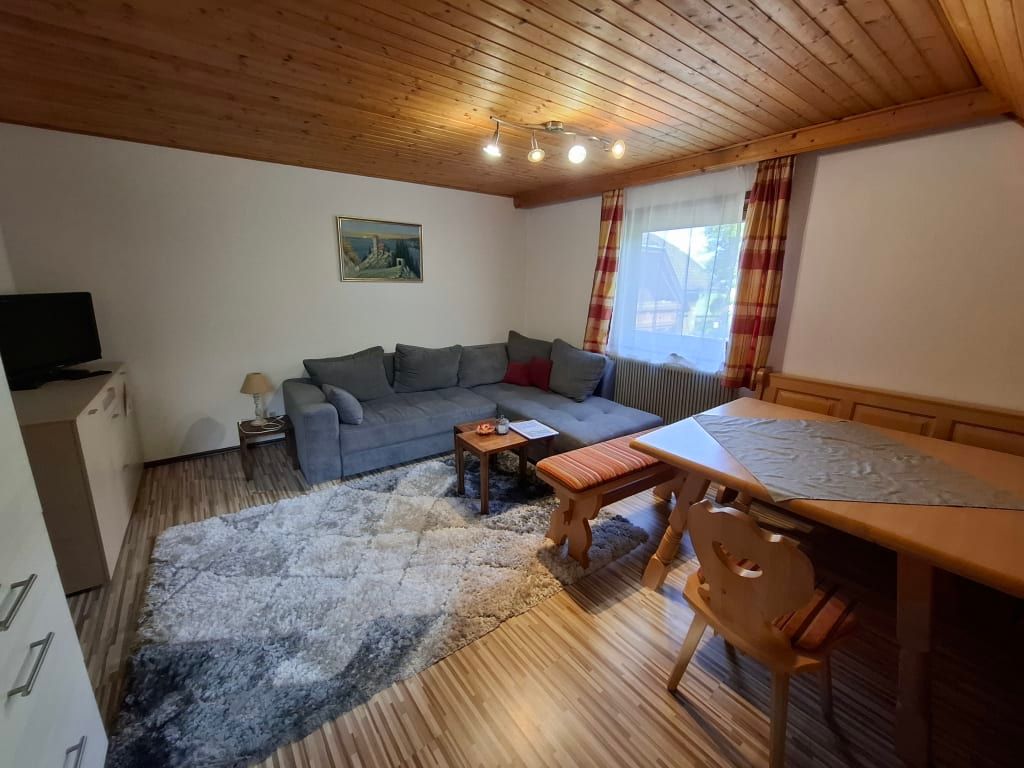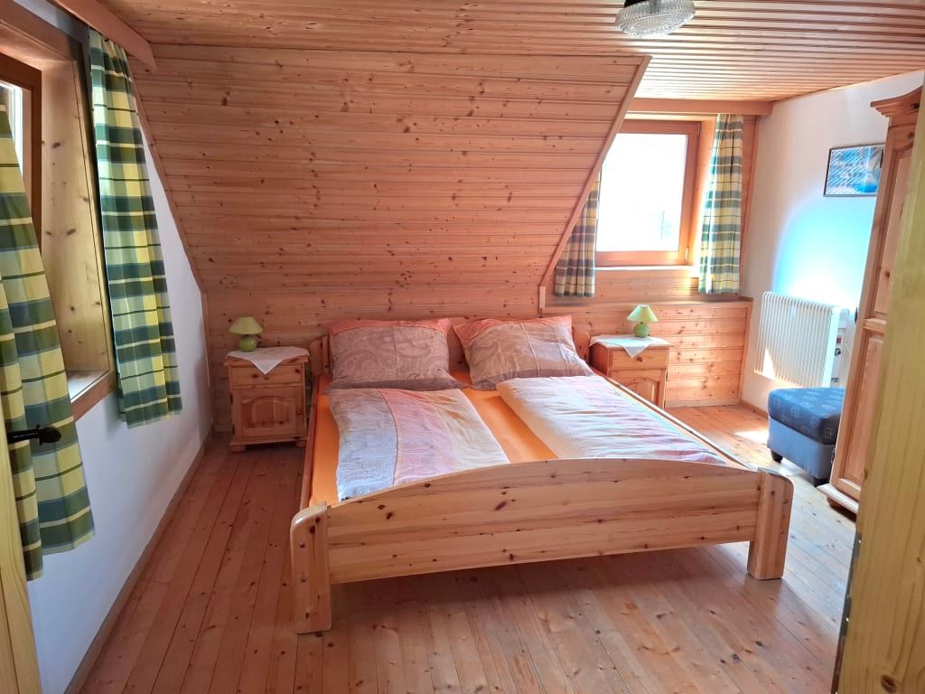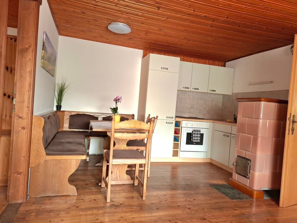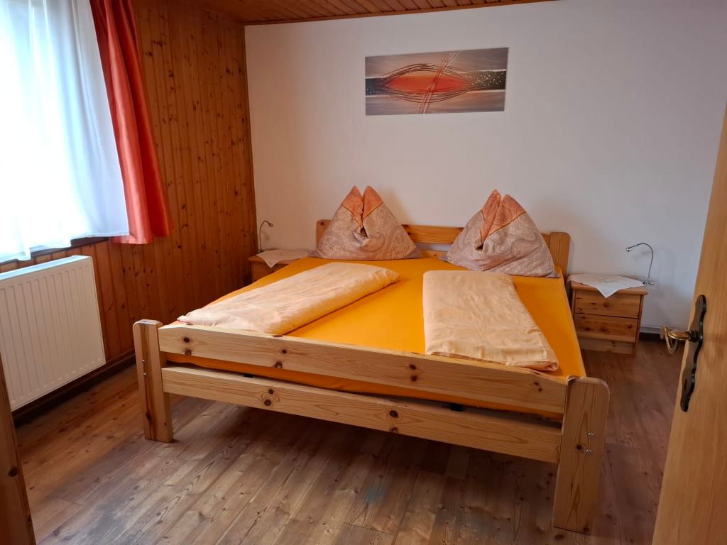 Das Appartement 1 bietet Platz für 4 Personen, hat ein Kinderzimmer mit 2 Einzelbetten, Schlafzimmer mit Doppelbett, Badezimmer mit Badewanne, TV & Sat, Wohn-Essküche mit Knuddelausziehsofa, voll ausgestattete Küche (Kaffeemaschine, Kühlschrank mit Gefrierfach, Mikrowelle, Brotschneidemaschine), Gitterbett für die Kleinsten, Kaminofen und Insektenschutz für erholsamen Schlaf.