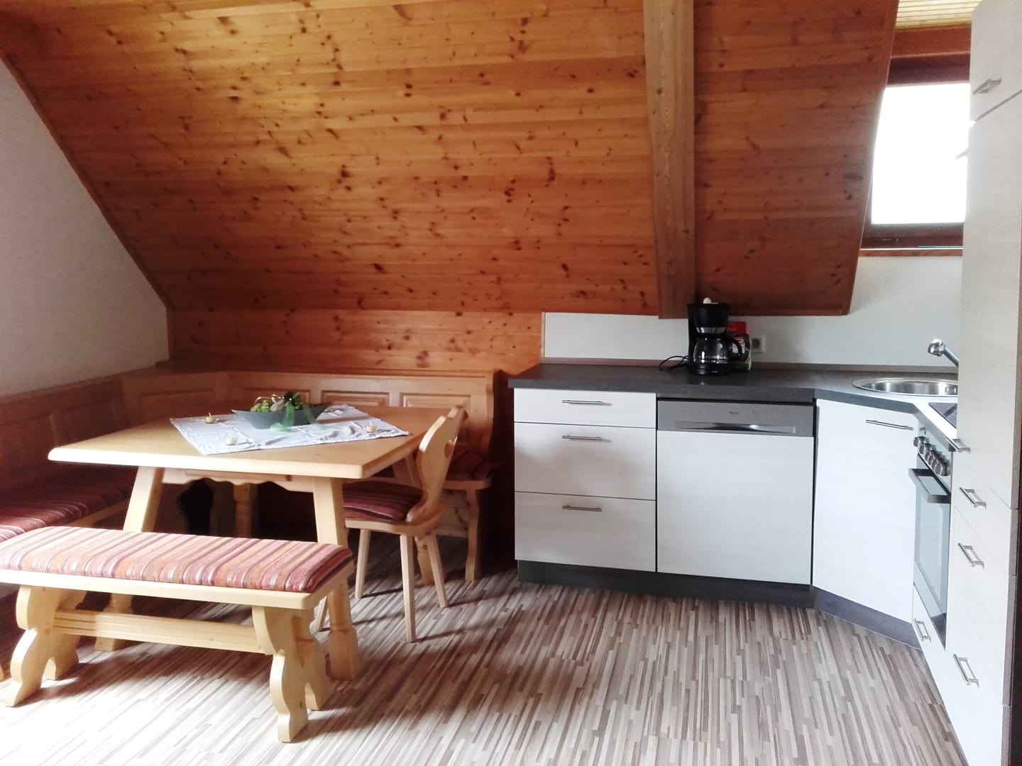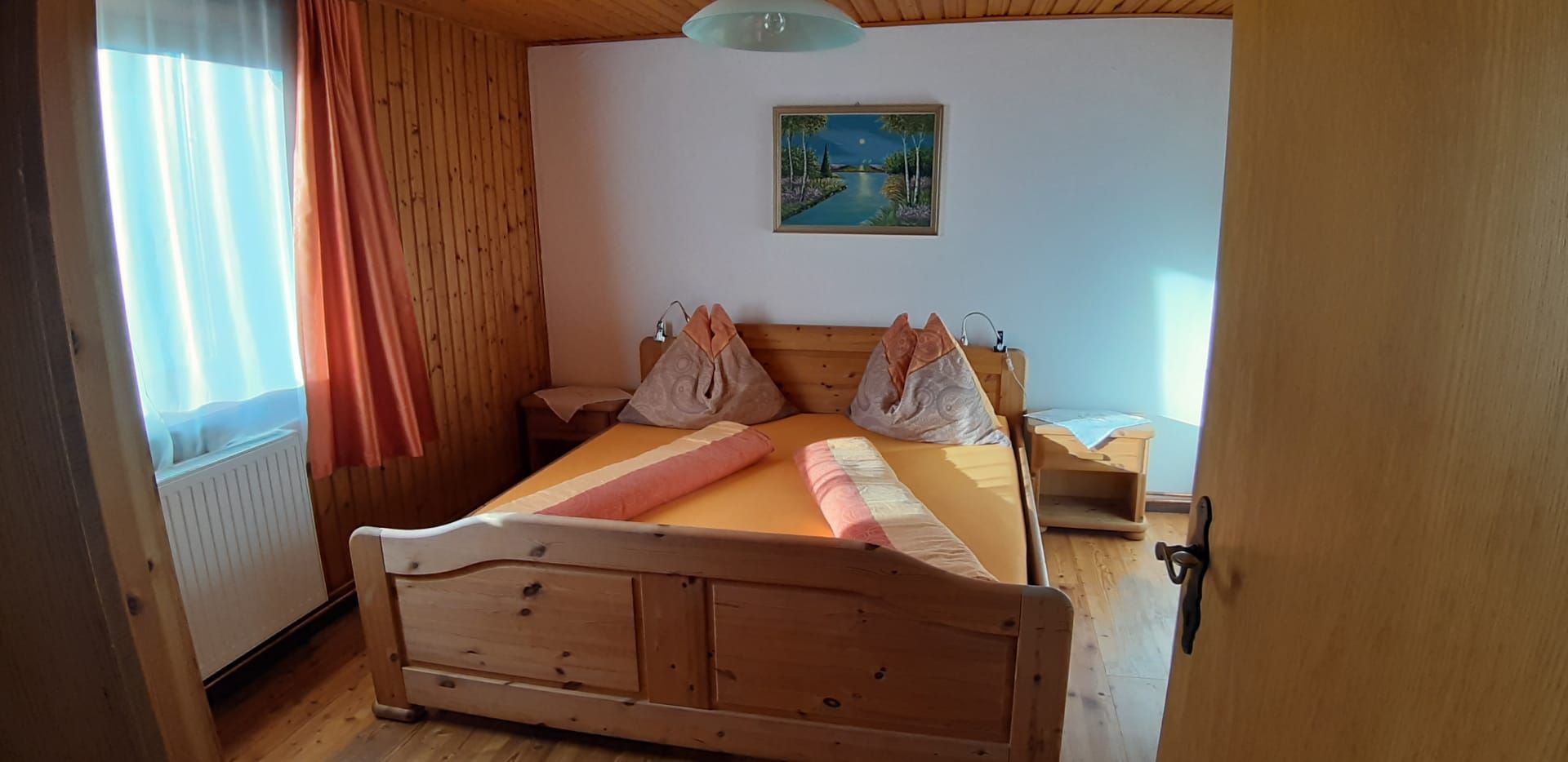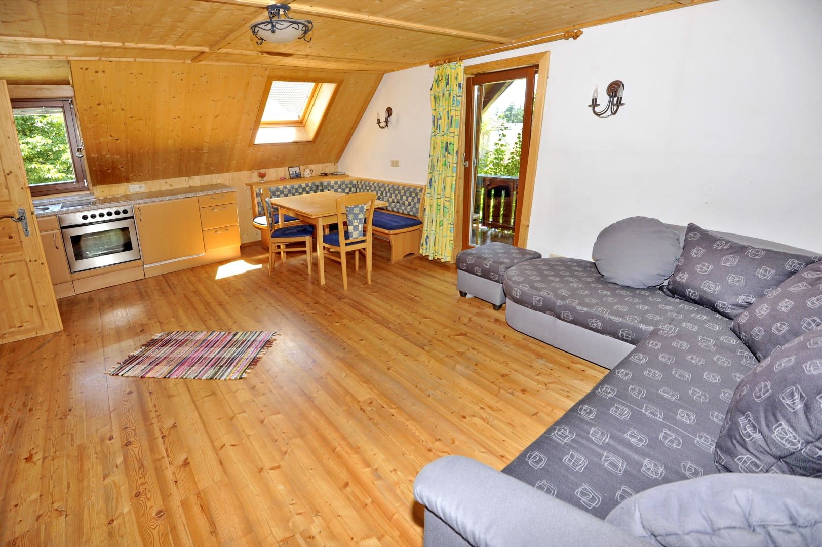 Das Appartement 1 bietet Platz für 4 Personen, hat ein Kinderzimmer mit 2 Einzelbetten, Schlafzimmer mit Doppelbett, Badezimmer mit Badewanne, TV & Sat, Wohn-Essküche mit Knuddelausziehsofa, voll ausgestattete Küche (Kaffeemaschine, Kühlschrank mit Gefrierfach, Mikrowelle, Brotschneidemaschine), Gitterbett für die Kleinsten, Kaminofen und Insektenschutz für erholsamen Schlaf.