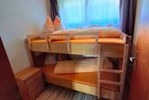 Geräumiges Appartement für bis zu 6 Personen mit Doppelzimmer, Kinderzimmer mit Stockbetten, Ausziehcouch und einem praktischen Gitterbett für die Kleinsten. Die Wohnküche ist voll ausgestattet mit E-Herd, Mikrowelle, Kühlschrank und Geschirrspüler. Sat-TV sowie Dusche und WC sind vorhanden.