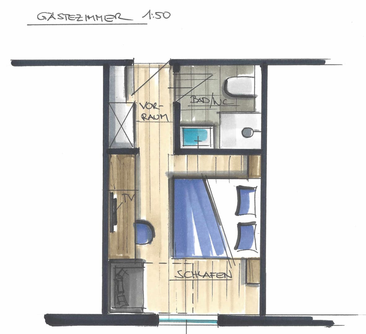 Dieses Zimmer ist geeignet für 1- 3 Erwachsene bzw. 2 Erwachsene und ein Kind. Mit Dusche und WC