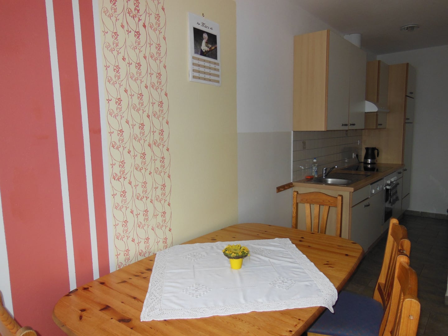 Die Wohnung ist mit einen Doppelzimmer und begebarer Schrank, l Dusche/WC, Küche und Sat-TV ausgestattet. Außerdem mit einer Terrasse mit Blick auf die Voralpen