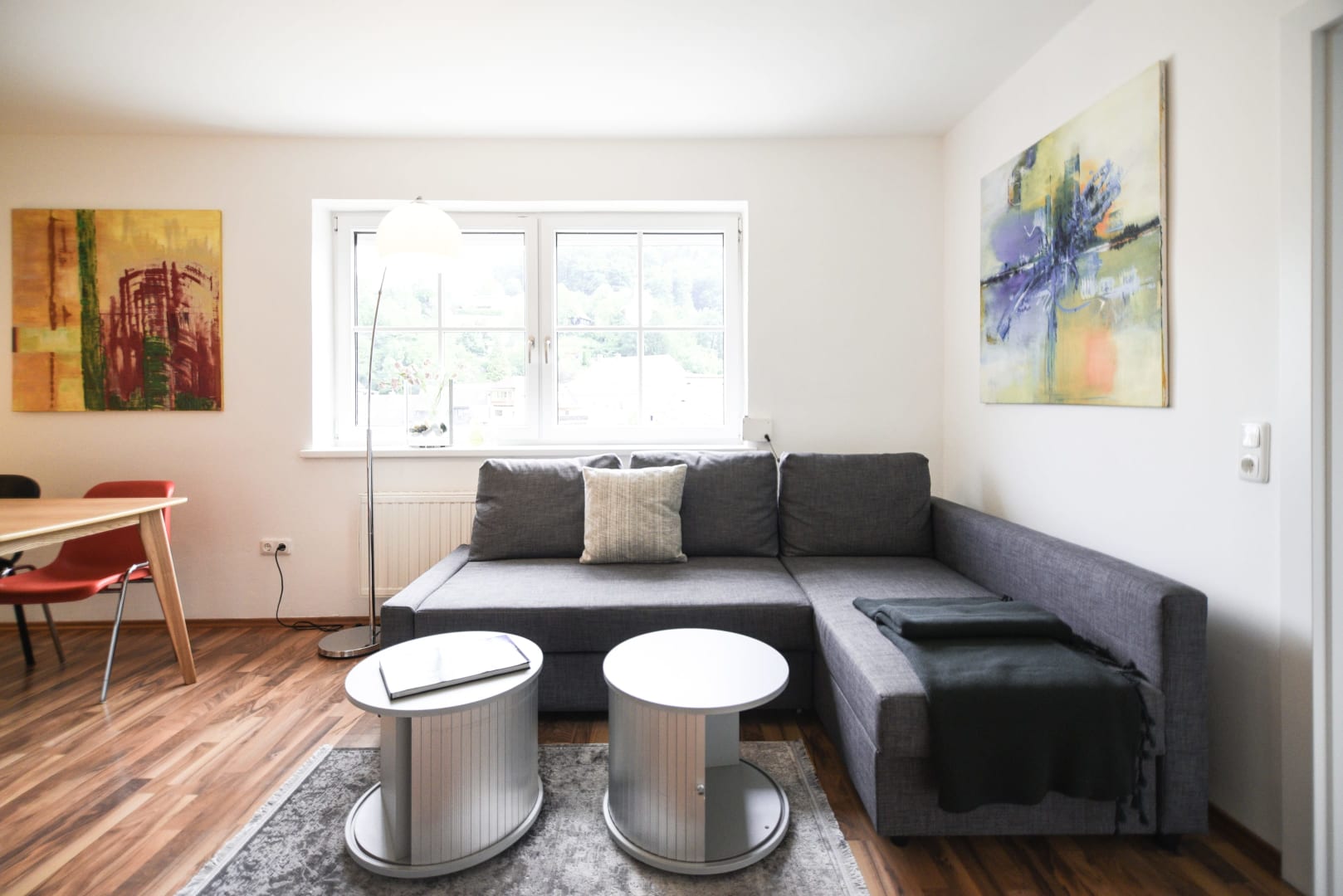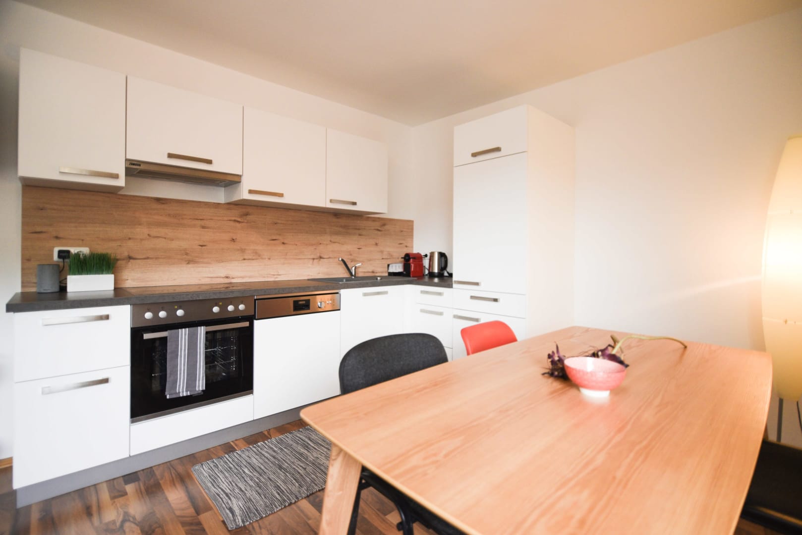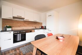 Unser modern eingerichtetes Apartment mit Schlafmöglichkeiten für bis zu 6 Personen (2 Schlafzimmer mit je einem Doppelbett; Ausziehcouch für 2 Personen im Wohnzimmer).