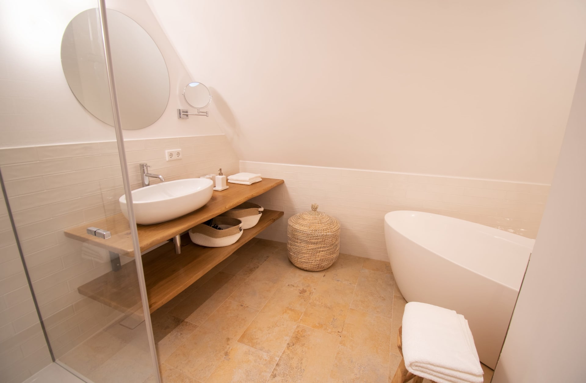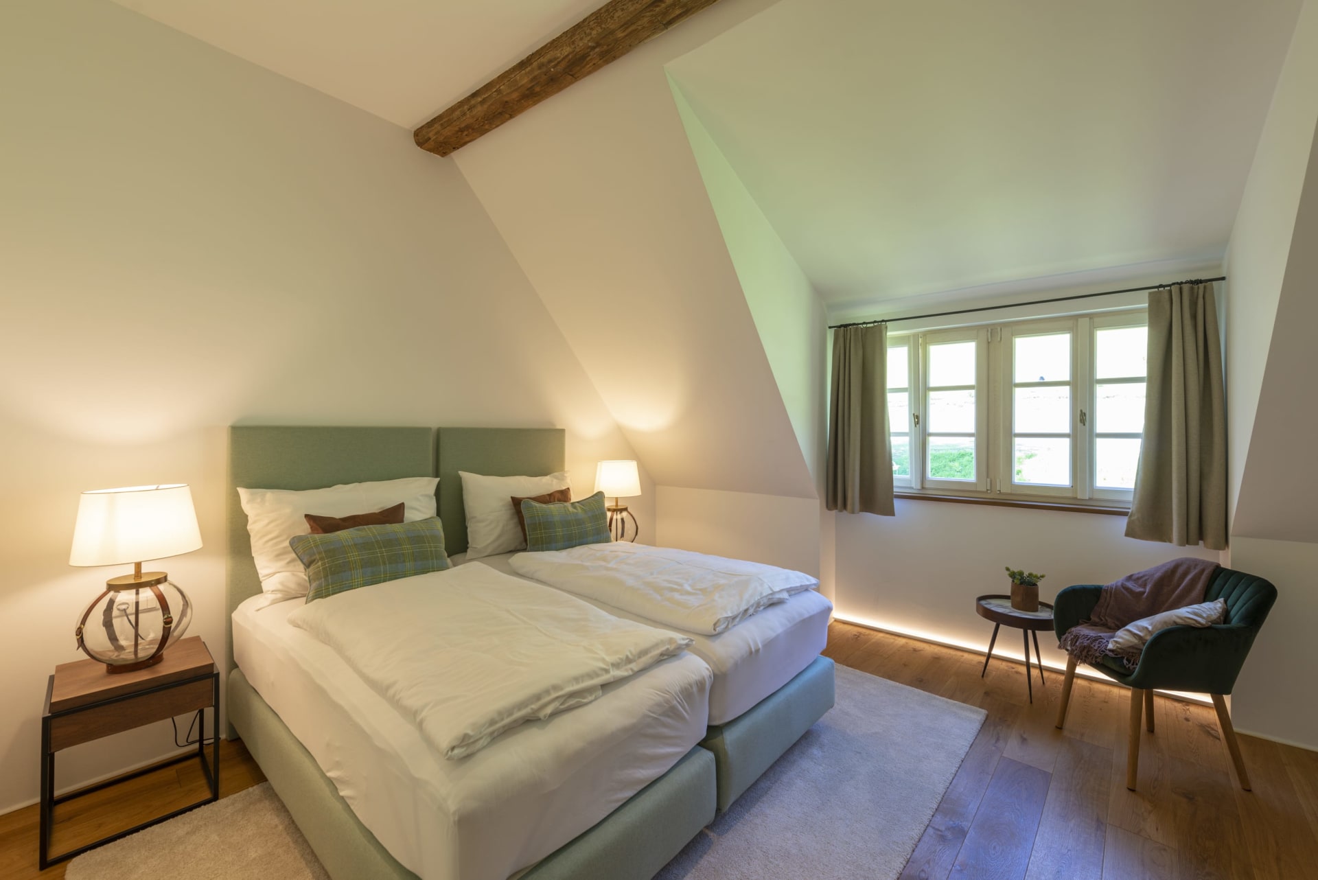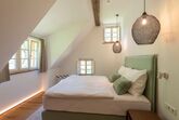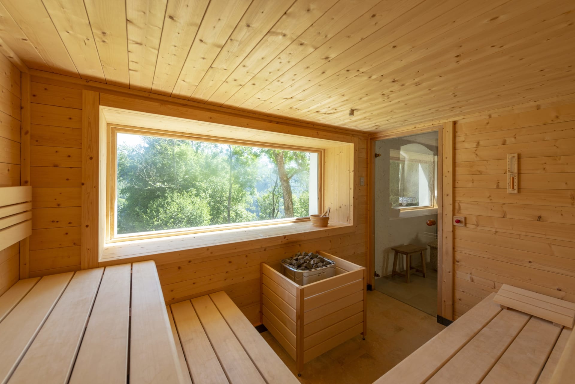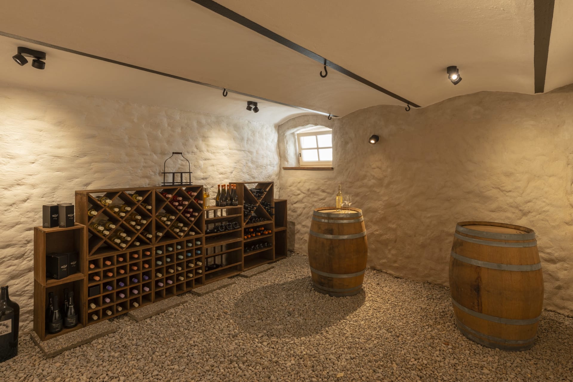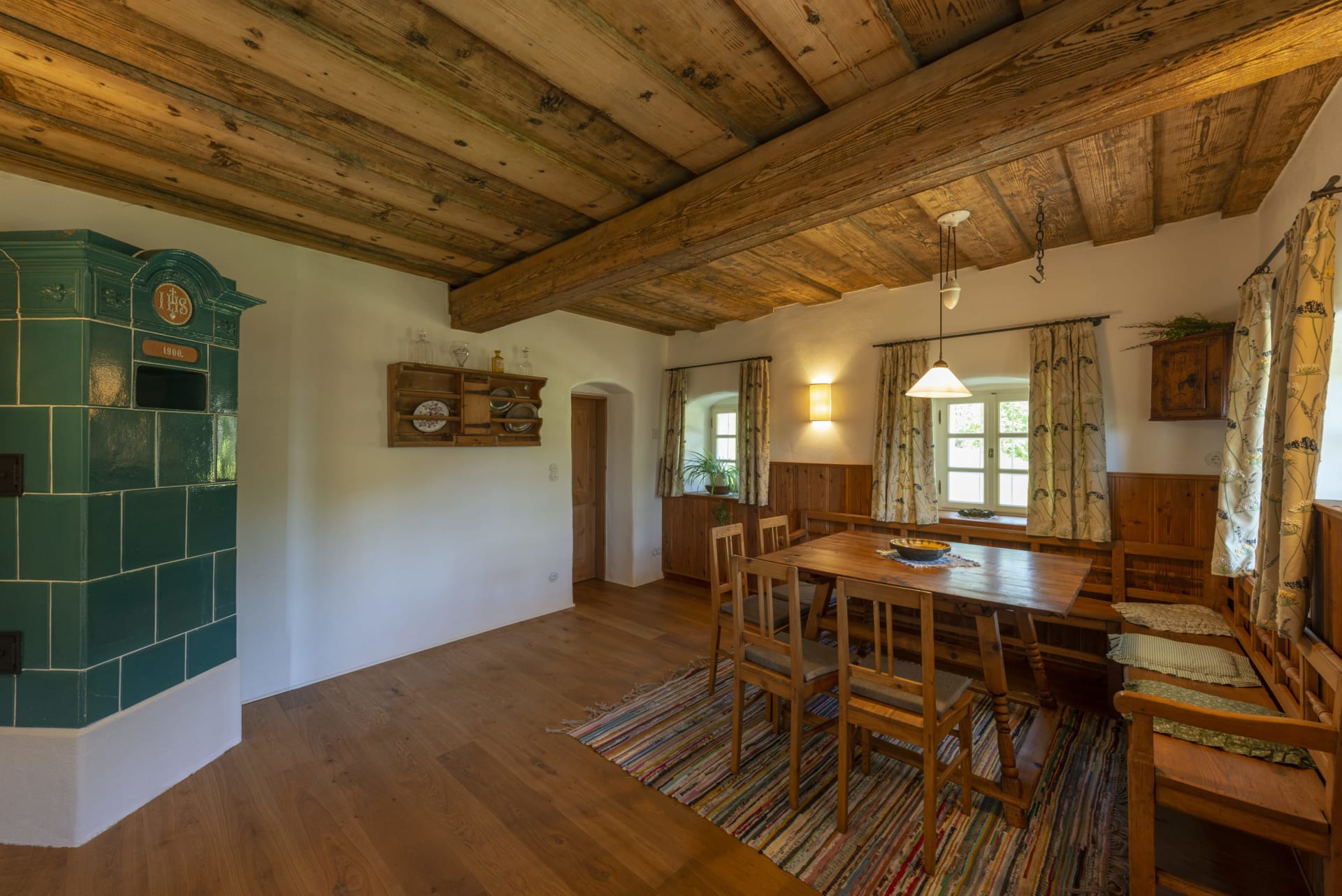 Eingebettet in eine traumhaft idyllische Naturkulisse bietet Ihnen das Ferienhaus 5 komfortable Schlafzimmer (3 Doppelbett- und 1 Zweitbettzimmer, sowie 1 Einzelzimmer mit einem Bett zum Ausziehen), 4 geschmackvolle Badezimmer, eine großzügige Wohn-Ess-Küche, eine gemütliche Bauernstube, einen Weinkeller, einen Holzstadl mit Sonnenterrasse, eine Sauna mit Panoramafenster und ein Outdoor-Holzbadefass mit Dusche.