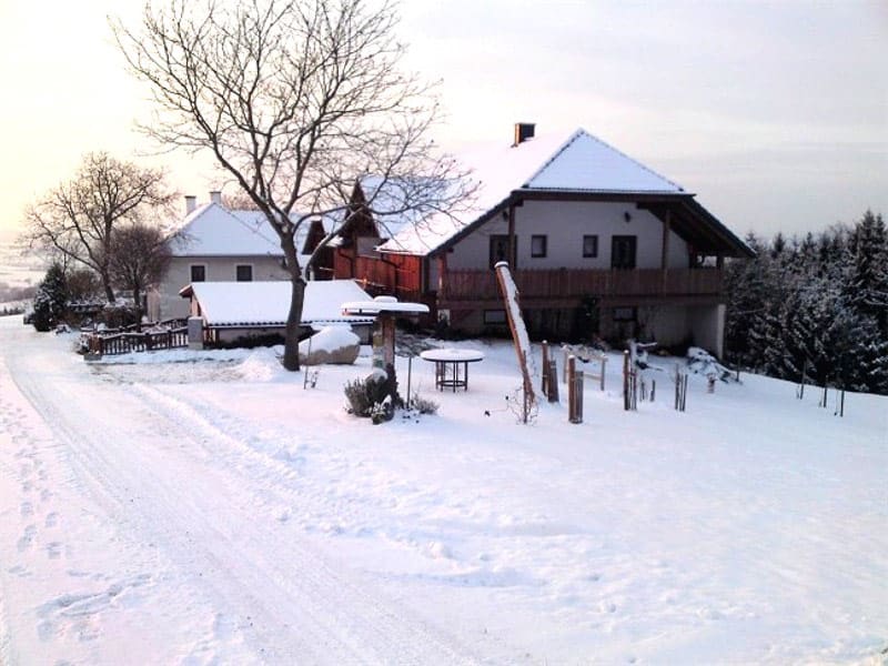Unser familienfreundlicher Bio-Bauernhof liegt abseits der Straße in sonniger, ruhiger Einzellage umgeben von einer tief verschneiten Winterlandschaft mit herrlicher Fernsicht ins Donautal und Alpenvorland!