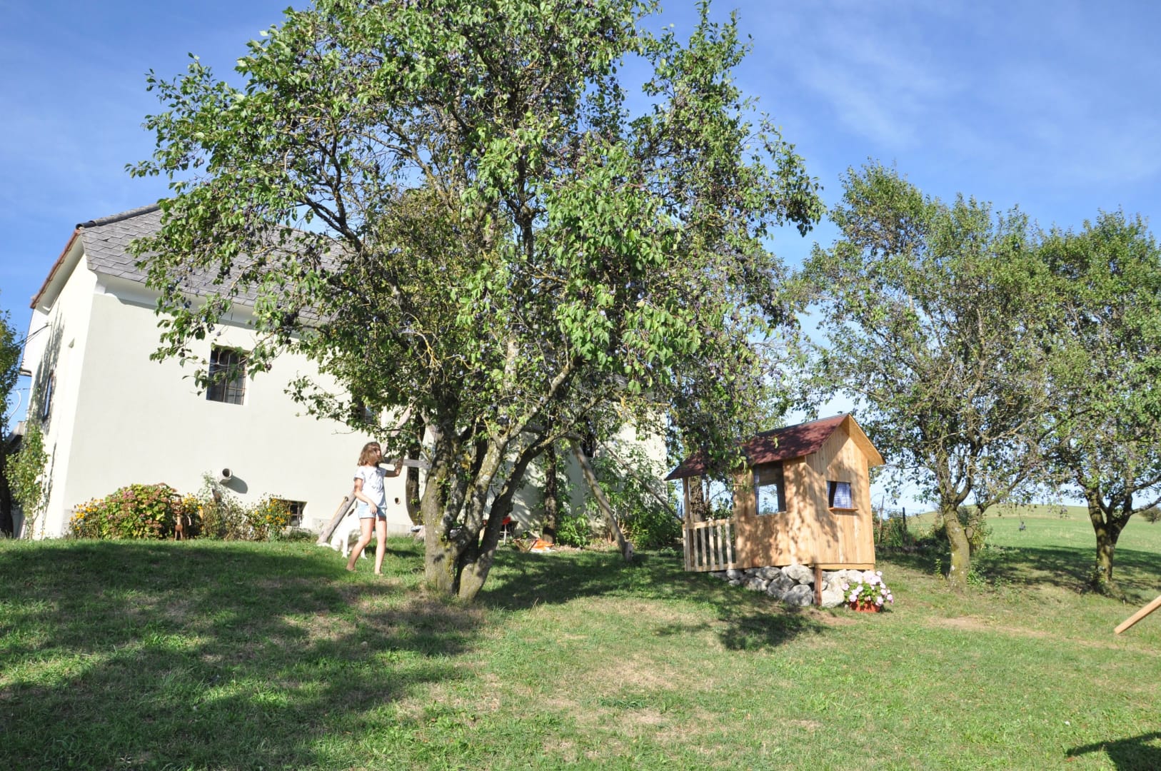 Unsere Wohnungen sind ca. 150 qm groß und voll ausgestattet. Genießen Sie den wundervollen Ausblick in die Voralpen direkt von Ihrem Balkon aus. Genießen Sie die Natur und erleben Sie unsere heitere Tierwelt. Unsere Hündin, Katzen, Hasen, Ponys und Zwergziegen freuen sich über viele Streicheleinheiten!