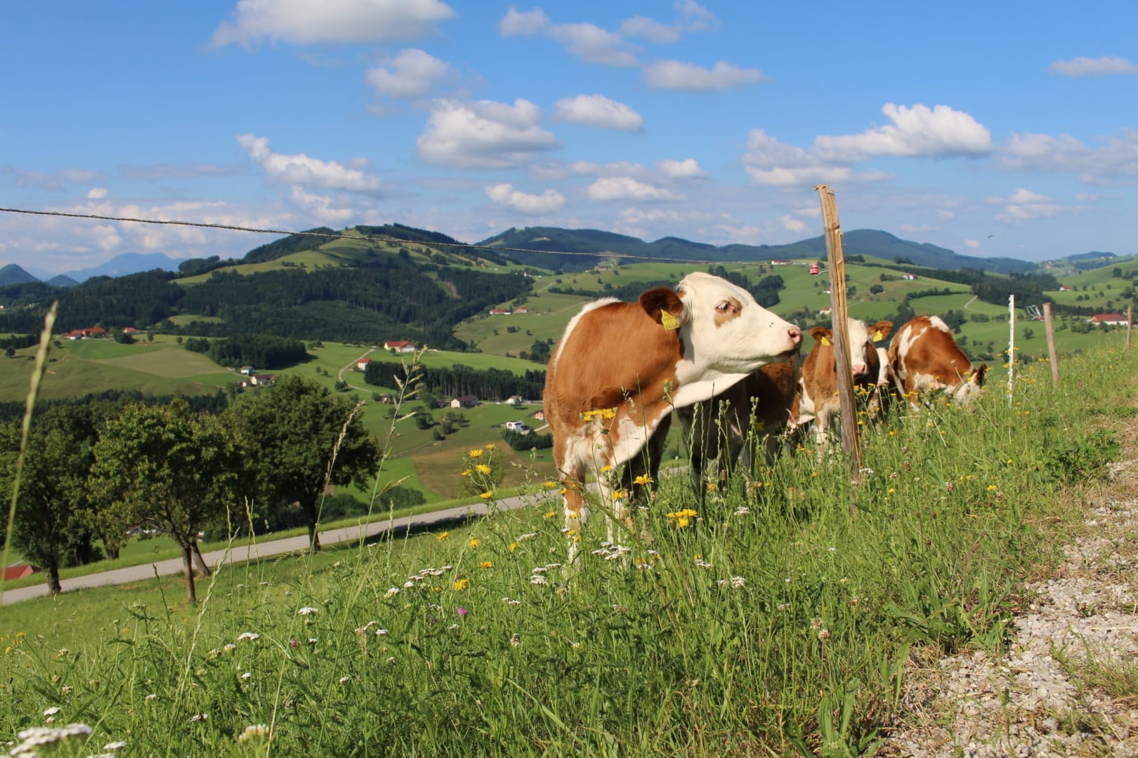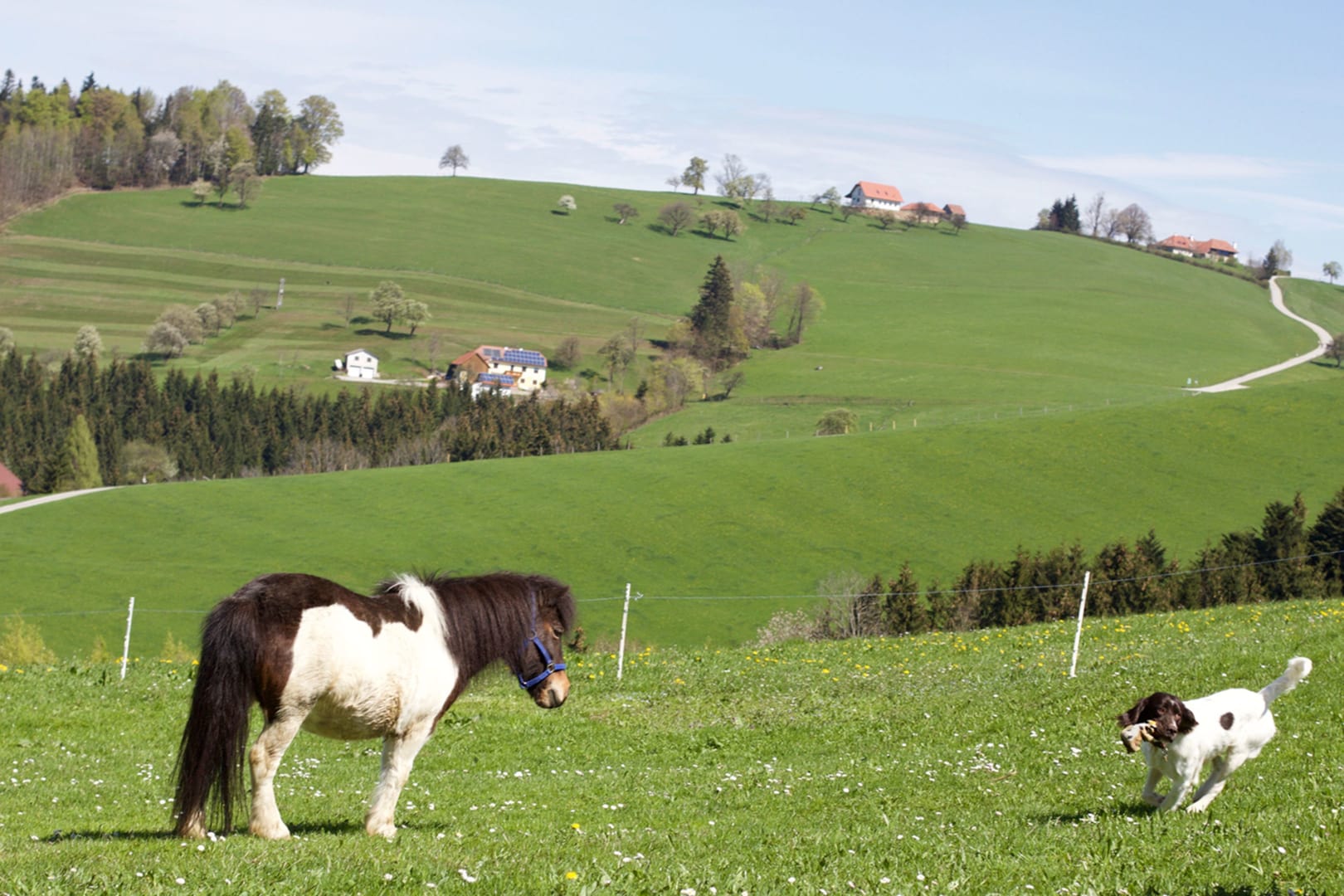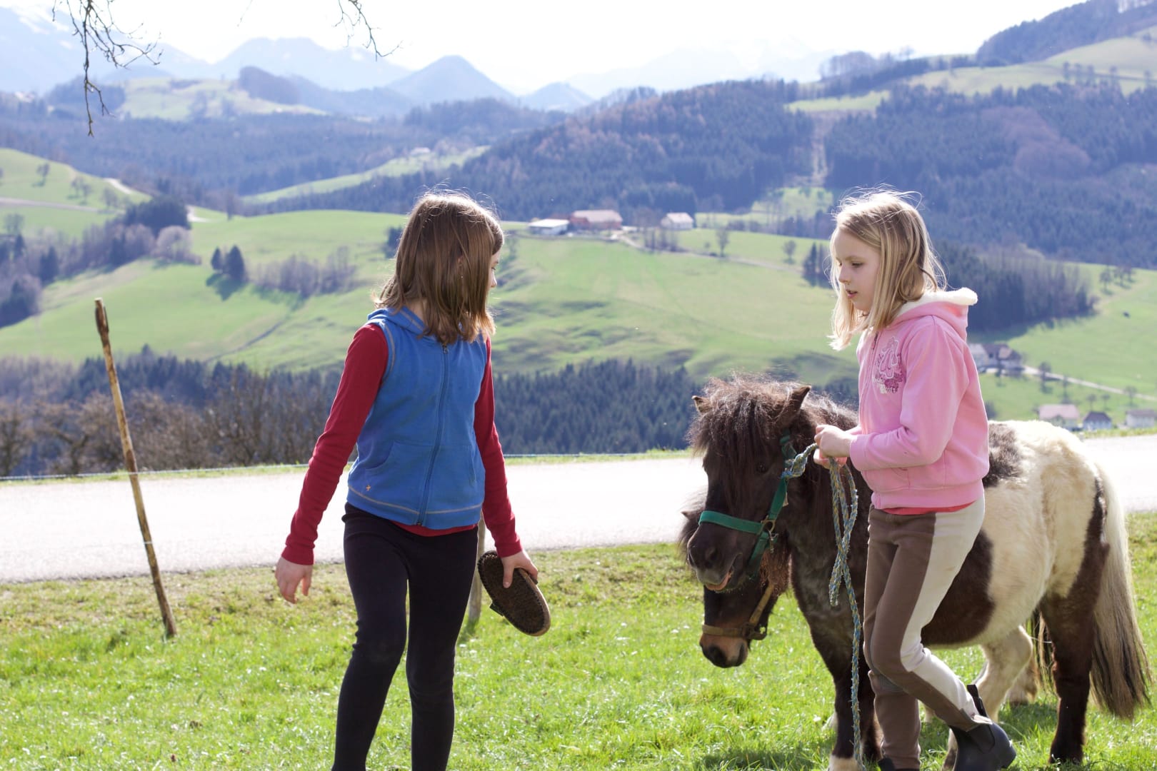 Unsere Wohnungen sind ca. 150 qm groß und voll ausgestattet. Genießen Sie den wundervollen Ausblick in die Voralpen direkt von Ihrem Balkon aus. Genießen Sie die Natur und erleben Sie unsere heitere Tierwelt. Unsere Hündin, Katzen, Hasen, Ponys und Zwergziegen freuen sich über viele Streicheleinheiten!