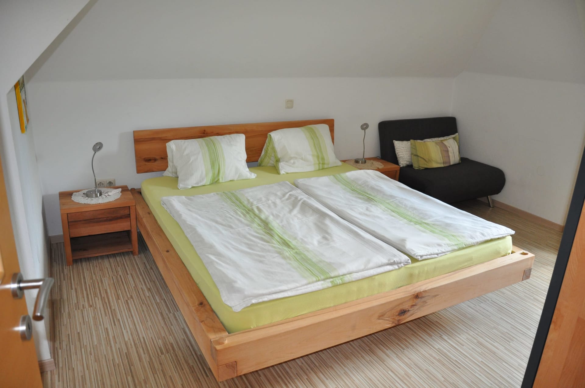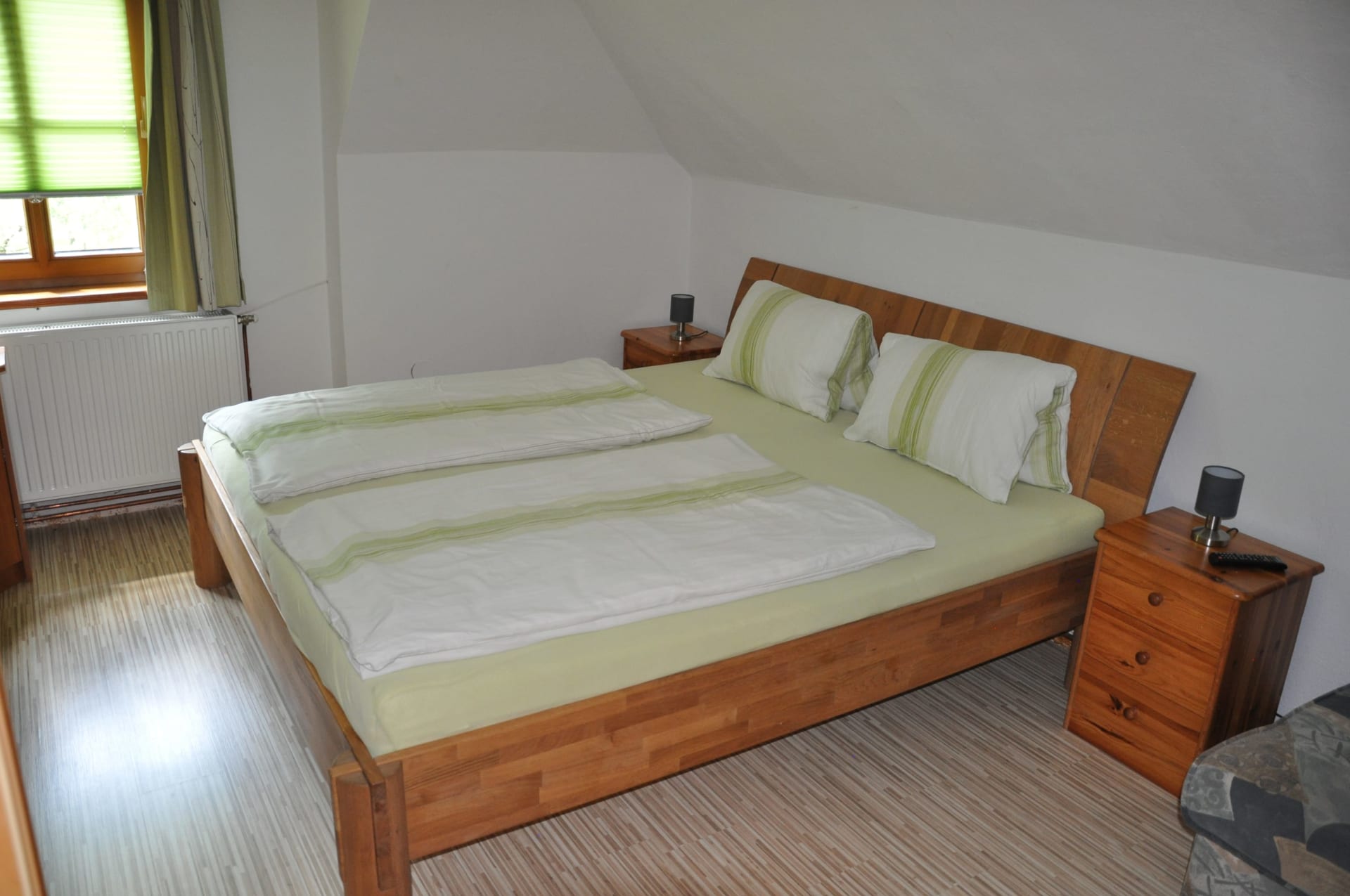 Ferienwohnung mit Vorraum,Küche,WC, Bad mit Dusche und 2 Schlafzimmer mit Doppelbett. Möglichkeit eines Zustellbettes gegeben. Eine sehr heimelige Ferienwohnung im Dachgeschoß mit schönem Ausblick in den Obstgarten.