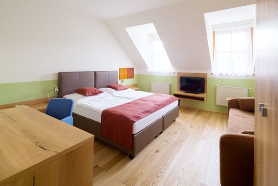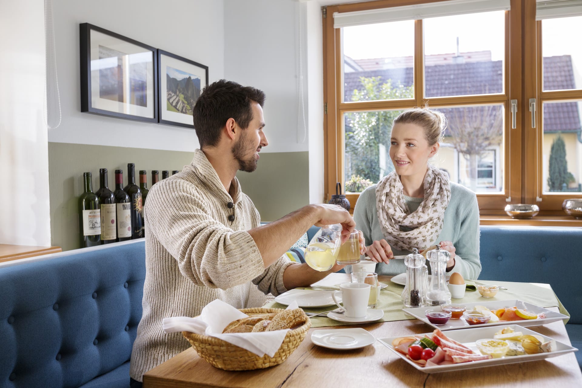 Wir bieten sechs Gästezimmer in puristischer Atmosphäre. Zum ruhigen Innenhof ausgerichtet versprechen die Räumlichkeiten einen angenehmen Aufenthalt, dafür sorgen auch Regendusche, Kabel-TV, Klimaanlage und kostenloses WLAN. Unsere Laube für laue Nächte sowie die Lounge laden Sie außerdem zum Verweilen ein. Nach einer ruhigen Nacht erwartet Sie ein reichhaltiges Frühstücksbuffet mit regionalen und saisonalen Köstlichkeiten – täglich von 7.30 bis 10.00 Uhr.