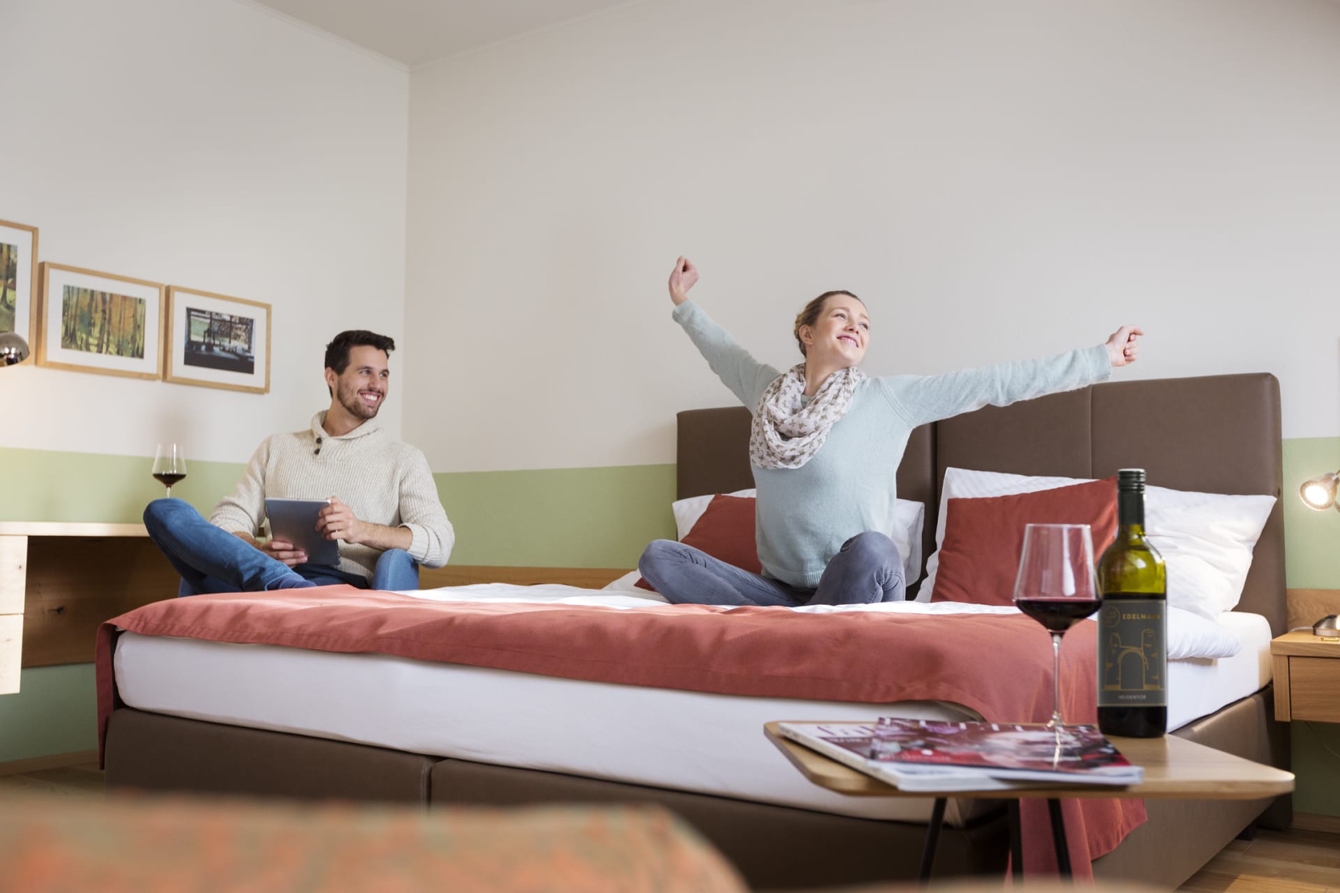 Hier finden Sie Raum zum Innehalten und genießen: Sei es unser vollmundiger Wein, ein Spaziergang über die Weinberge, eine Wanderung durch unberührte Naturlandschaften oder kulinarische und kulturelle Spezialitäten. Fühlen Sie sich bei uns gut aufgehoben.