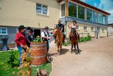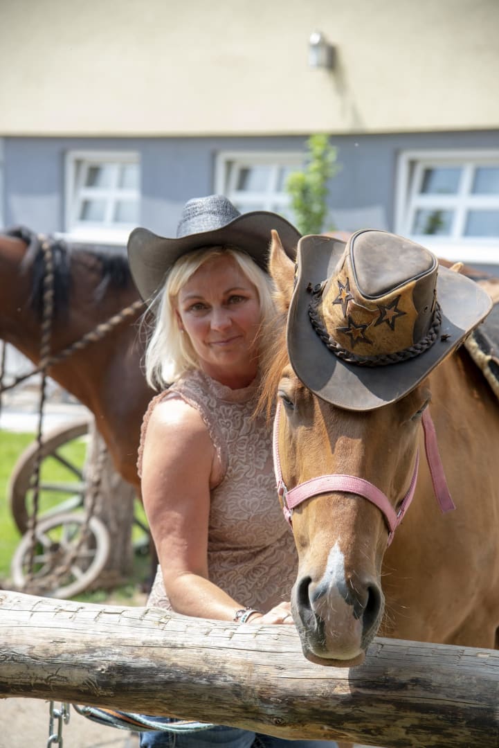 Wir laden Reiter wie Nichtreiter in unsere gemütlichen Zimmer mit Bio-Frühstück ein. Mit uns leben 23 eigene Pferde, 2 Hunde, 7 Katzen und einige Hasen. Reitanfänger lernen das Reiten von Anfang an. Bodenarbeit, putzen, satteln und nach dem Reiten das Versorgen der Pferde. Dies alles vermittelt Sicherheit bietet eine echte Freunde am Reitsport. Wir haben geeignete Pferde für jedermann... Englisch, Western, große und kleine, junge und alte Pferde in verschiedenen Farben und Charakteren... kommt und lernt sie kennen.